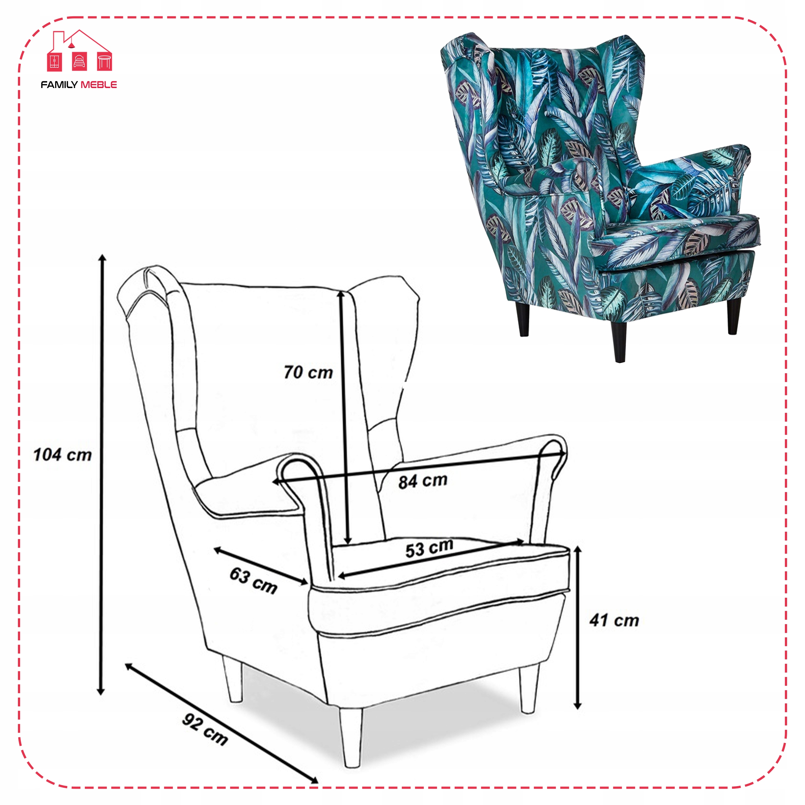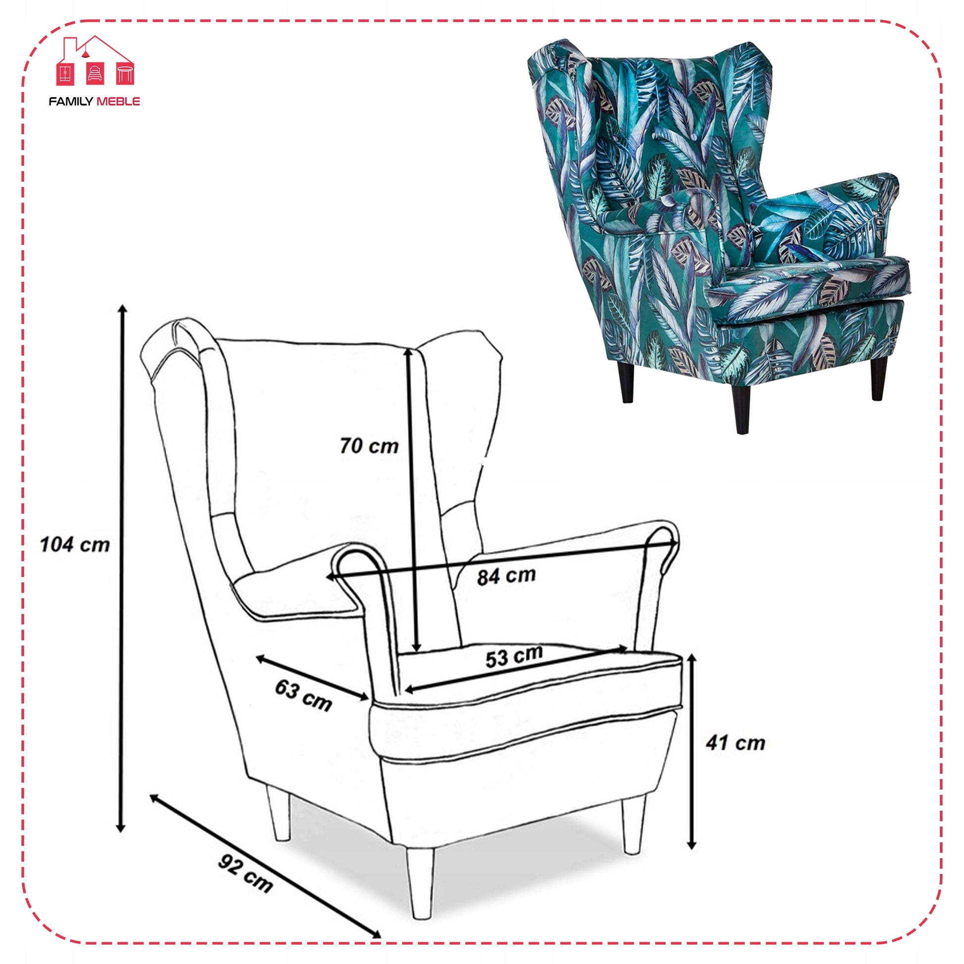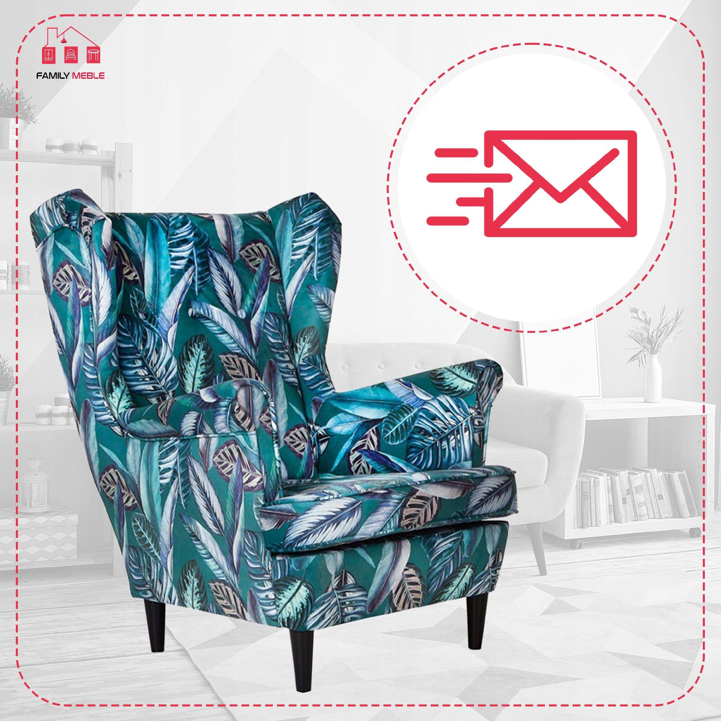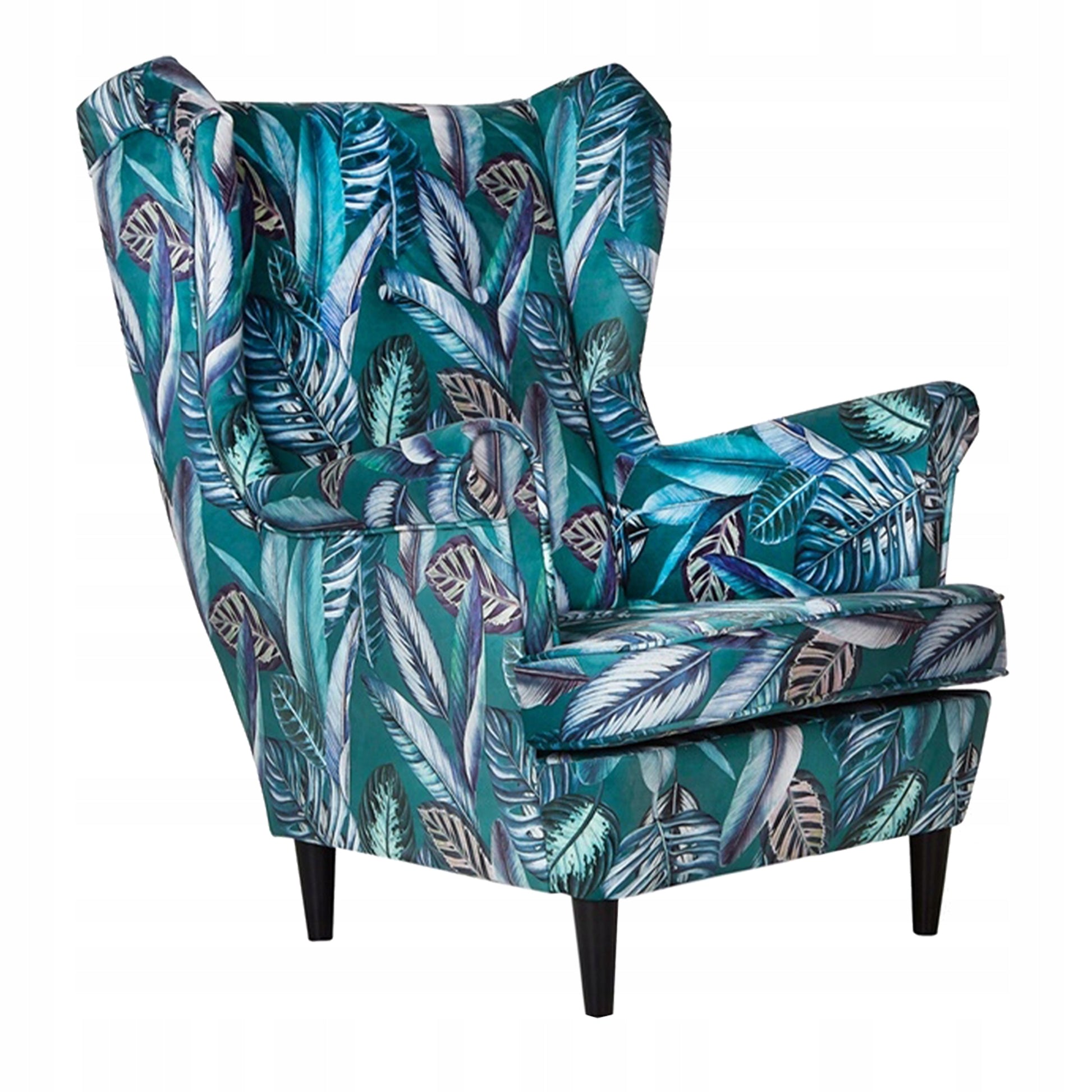 Fotel uszak ARI PRINT skandynawski Family Meble liście pióra zielone
