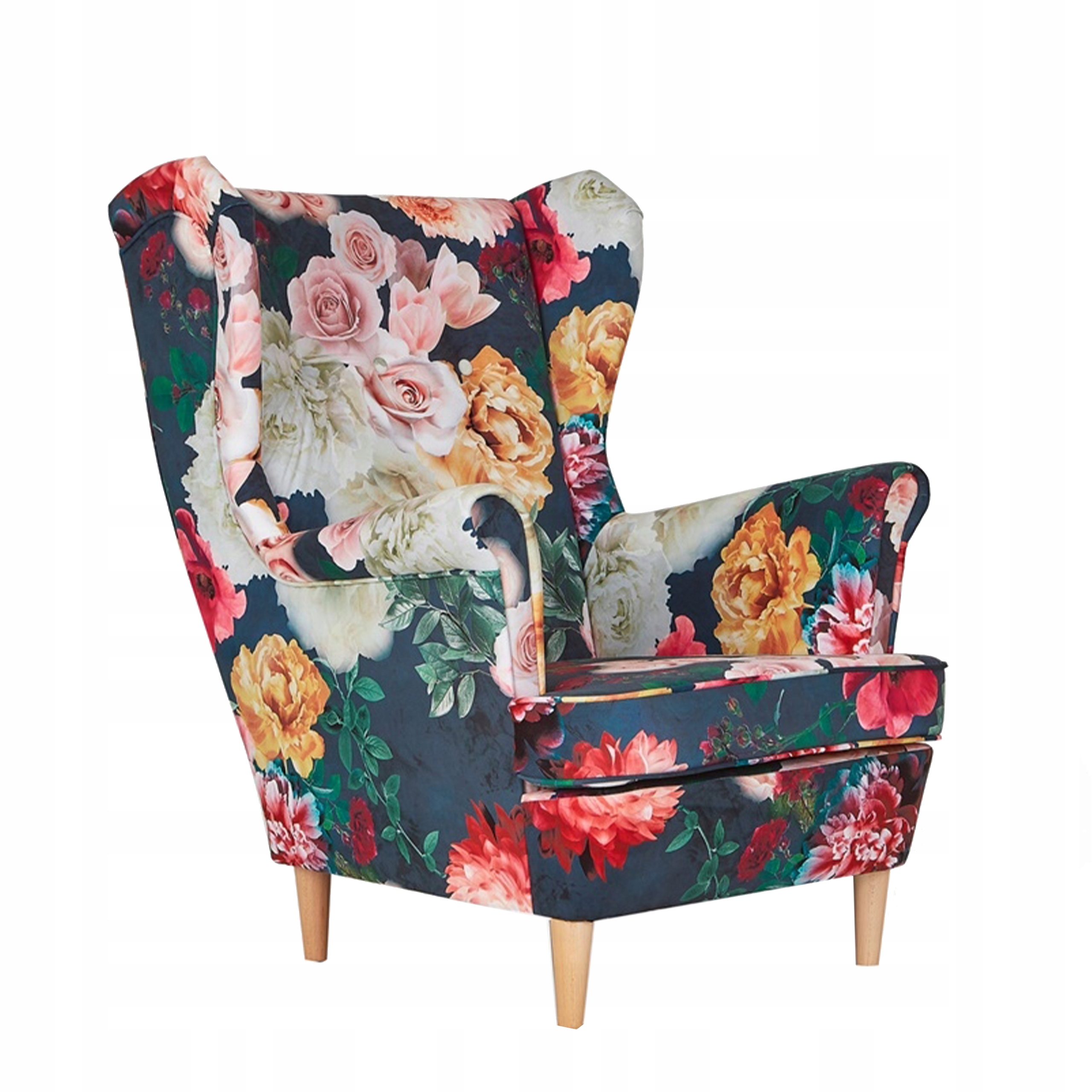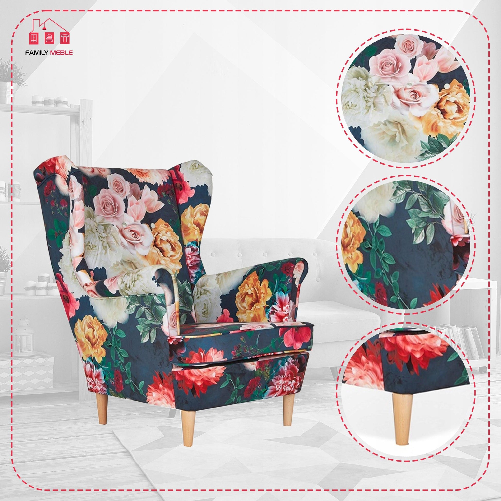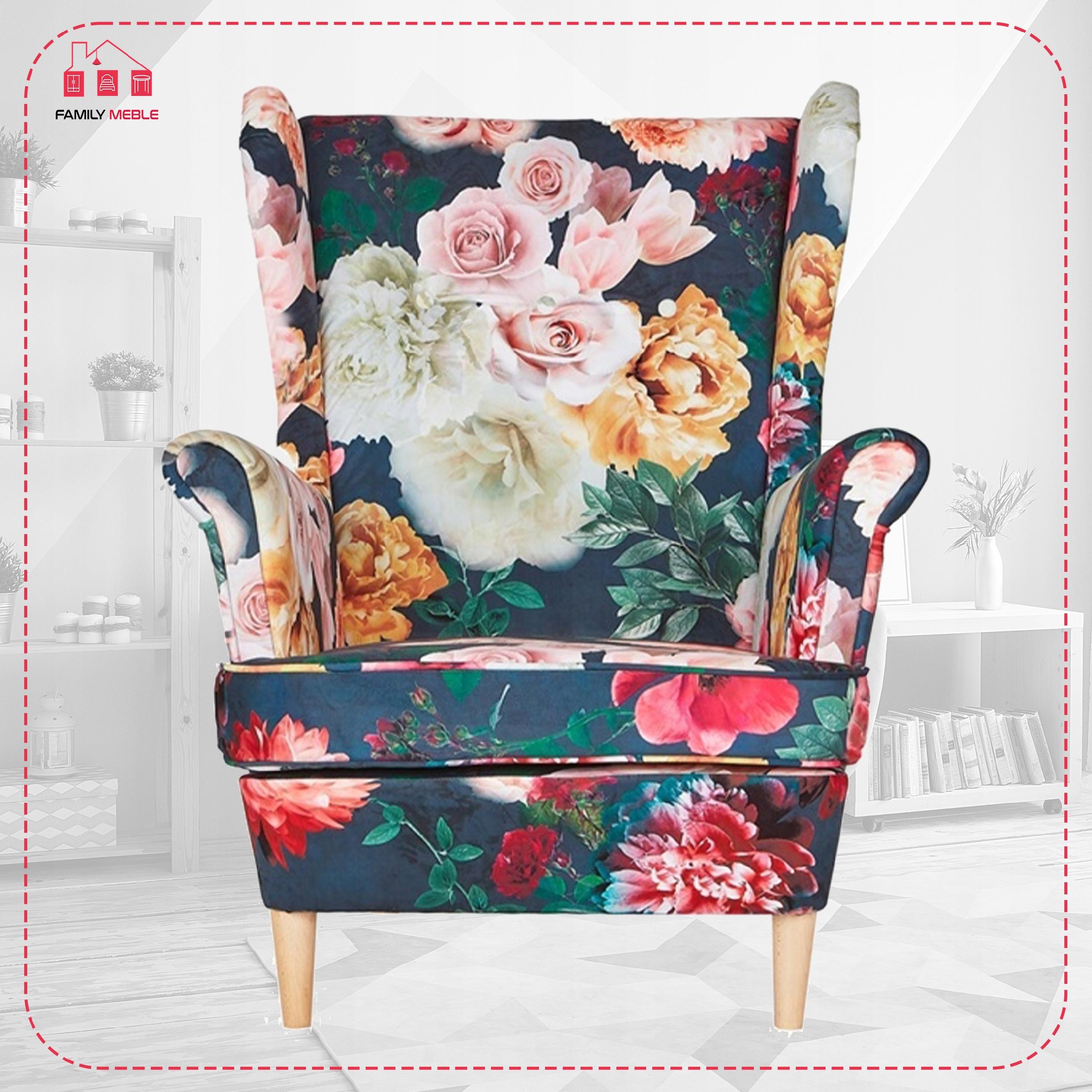 Fotel uszak ARI PRINT skandynawski Family Meble piwonie kwiaty wzór 3D
