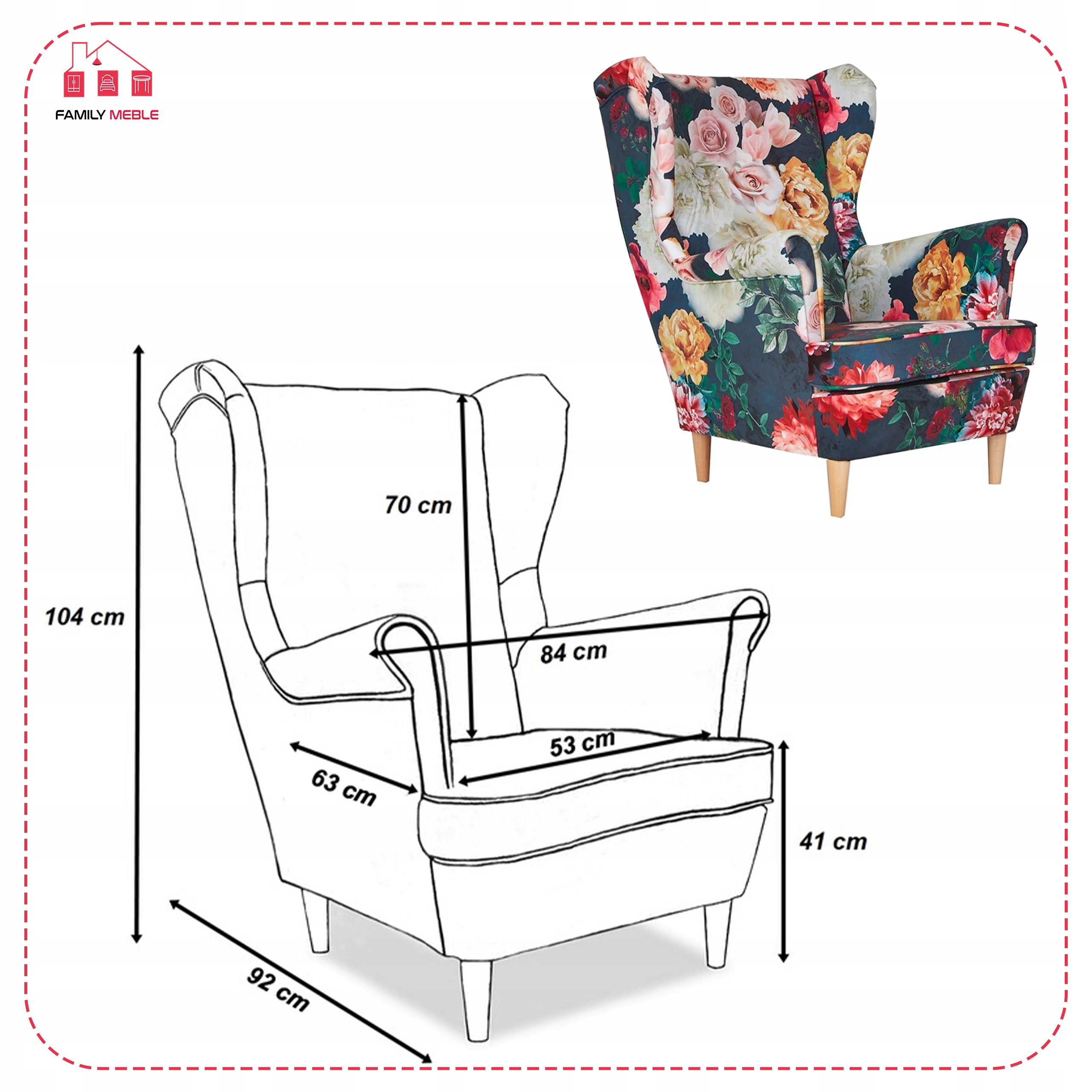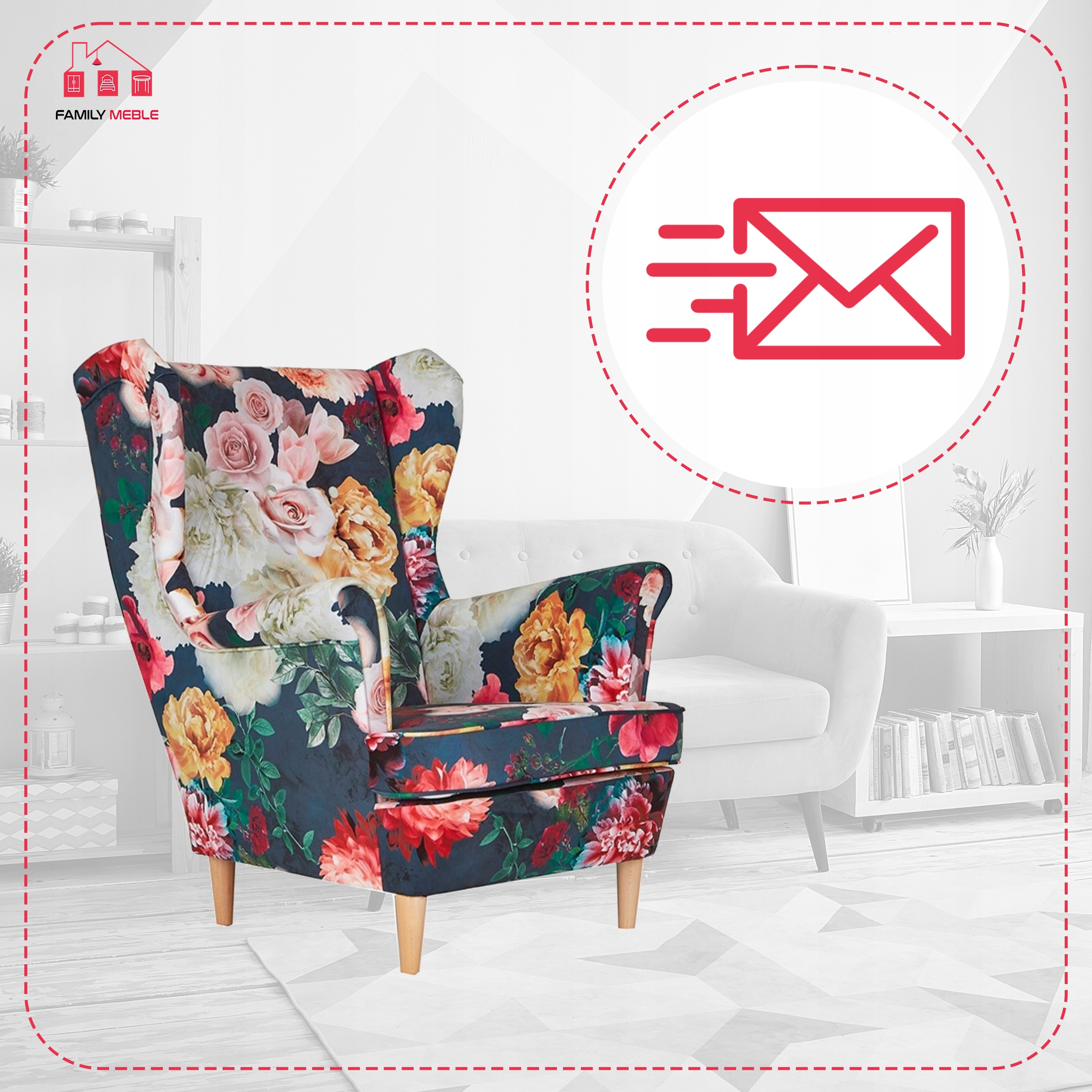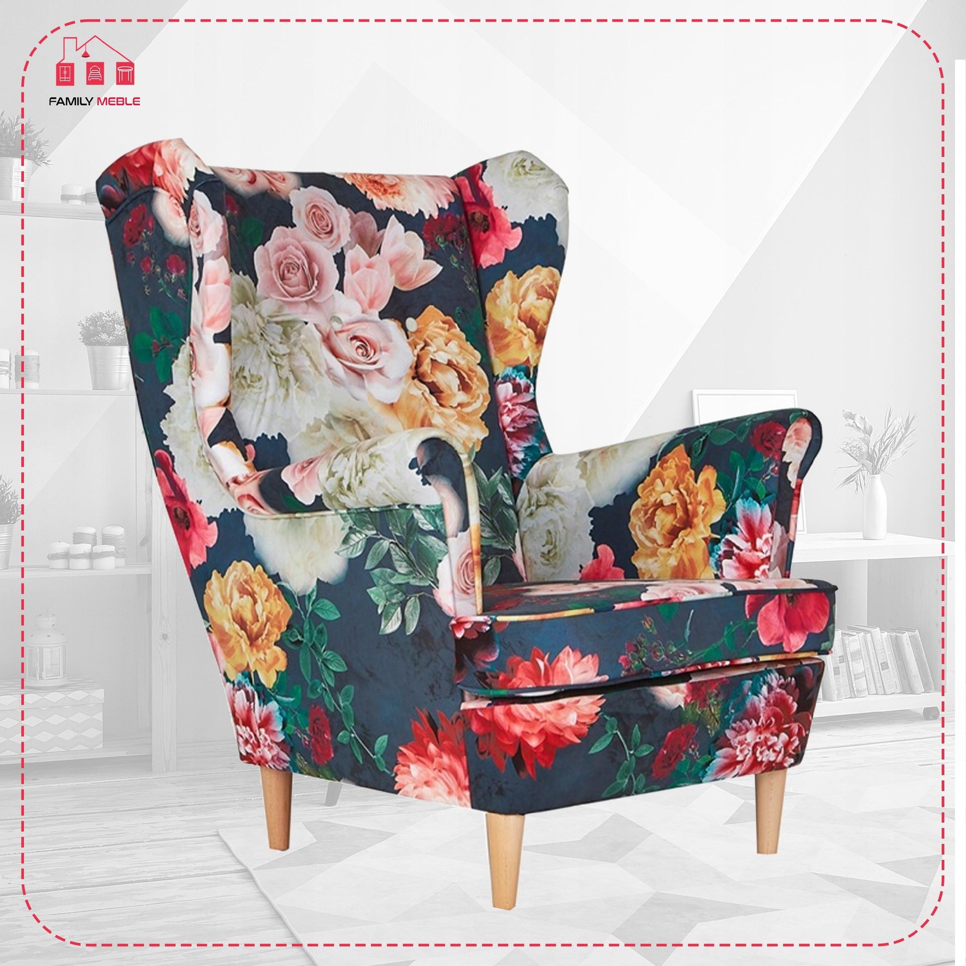 Fotel uszak ARI PRINT skandynawski Family Meble piwonie kwiaty wzór 3D