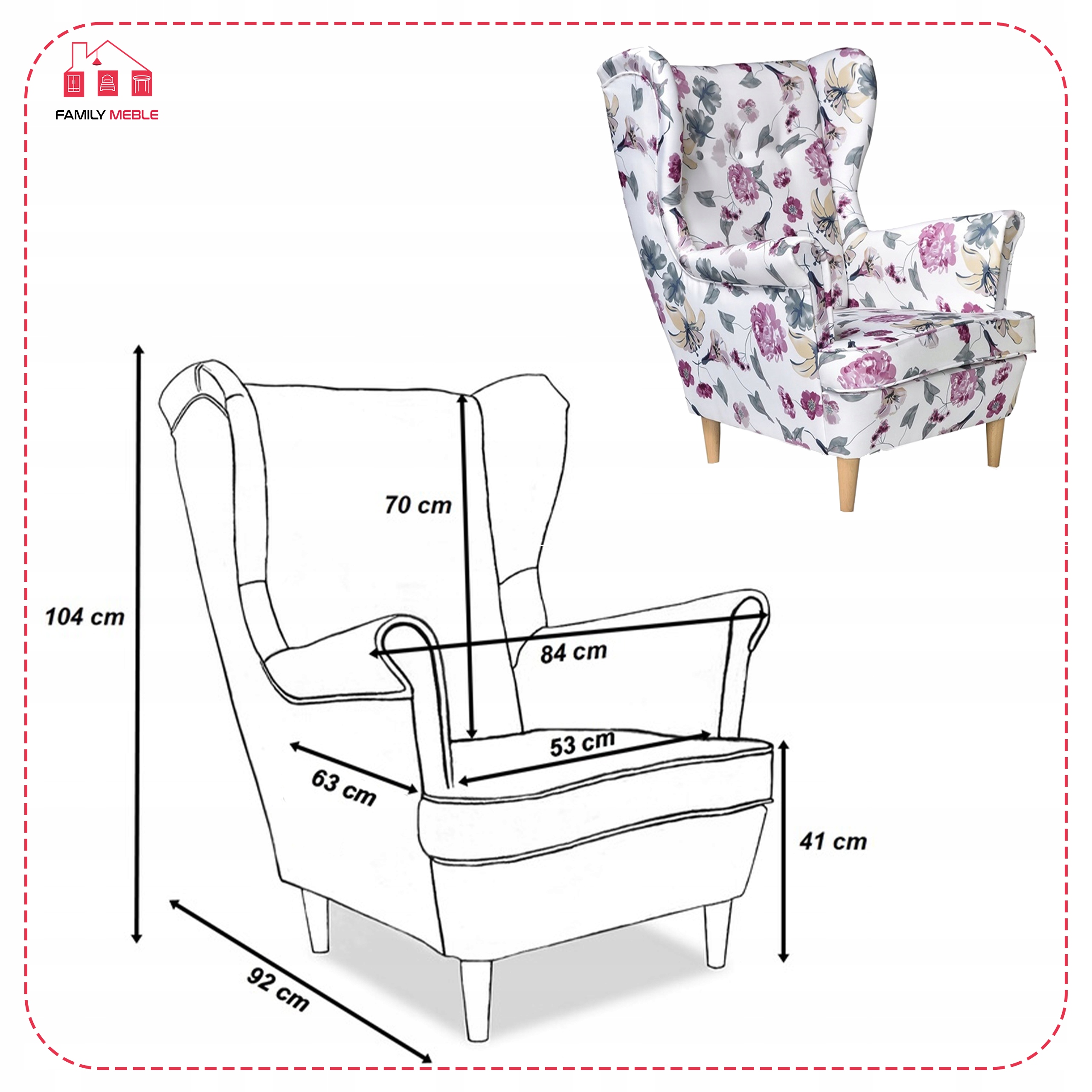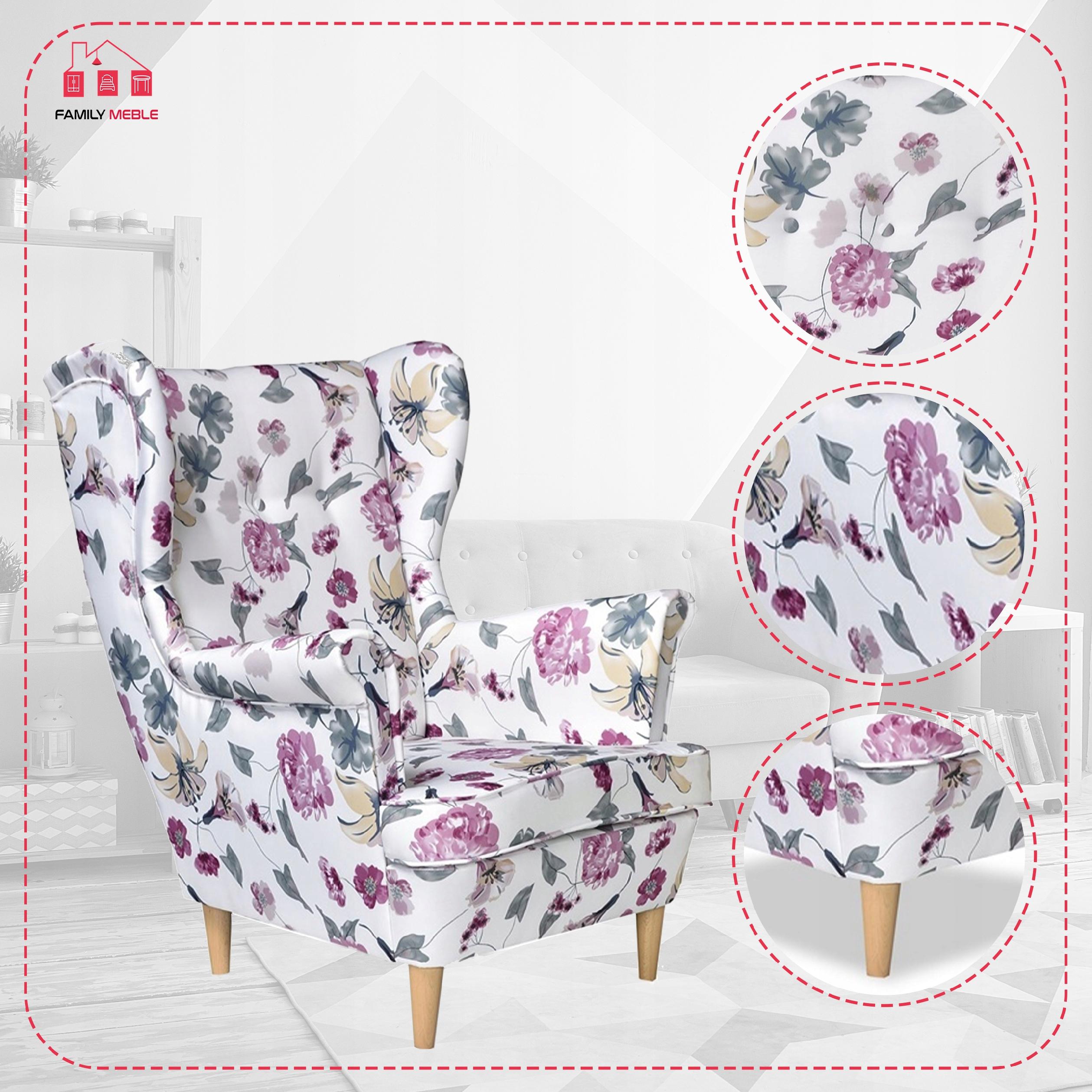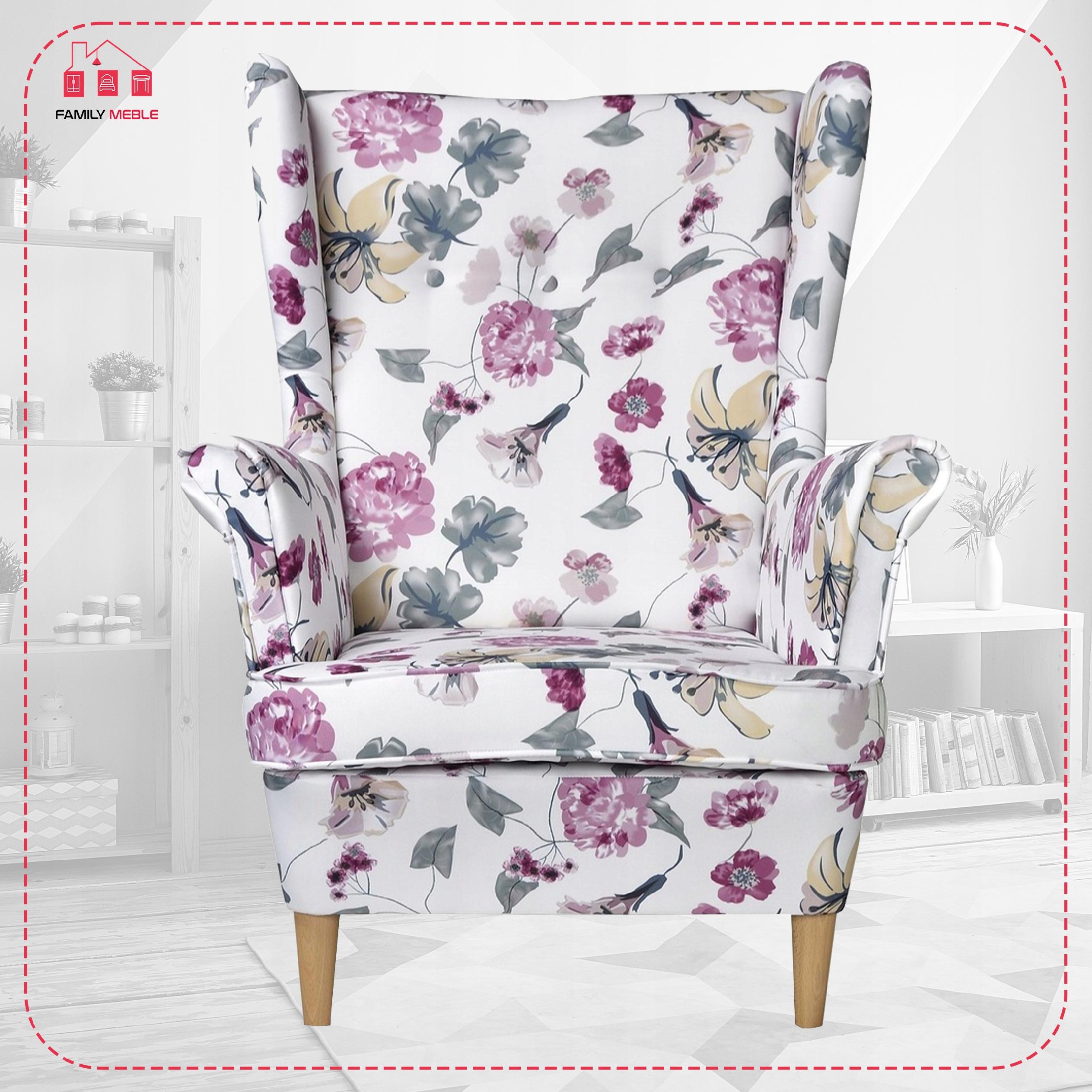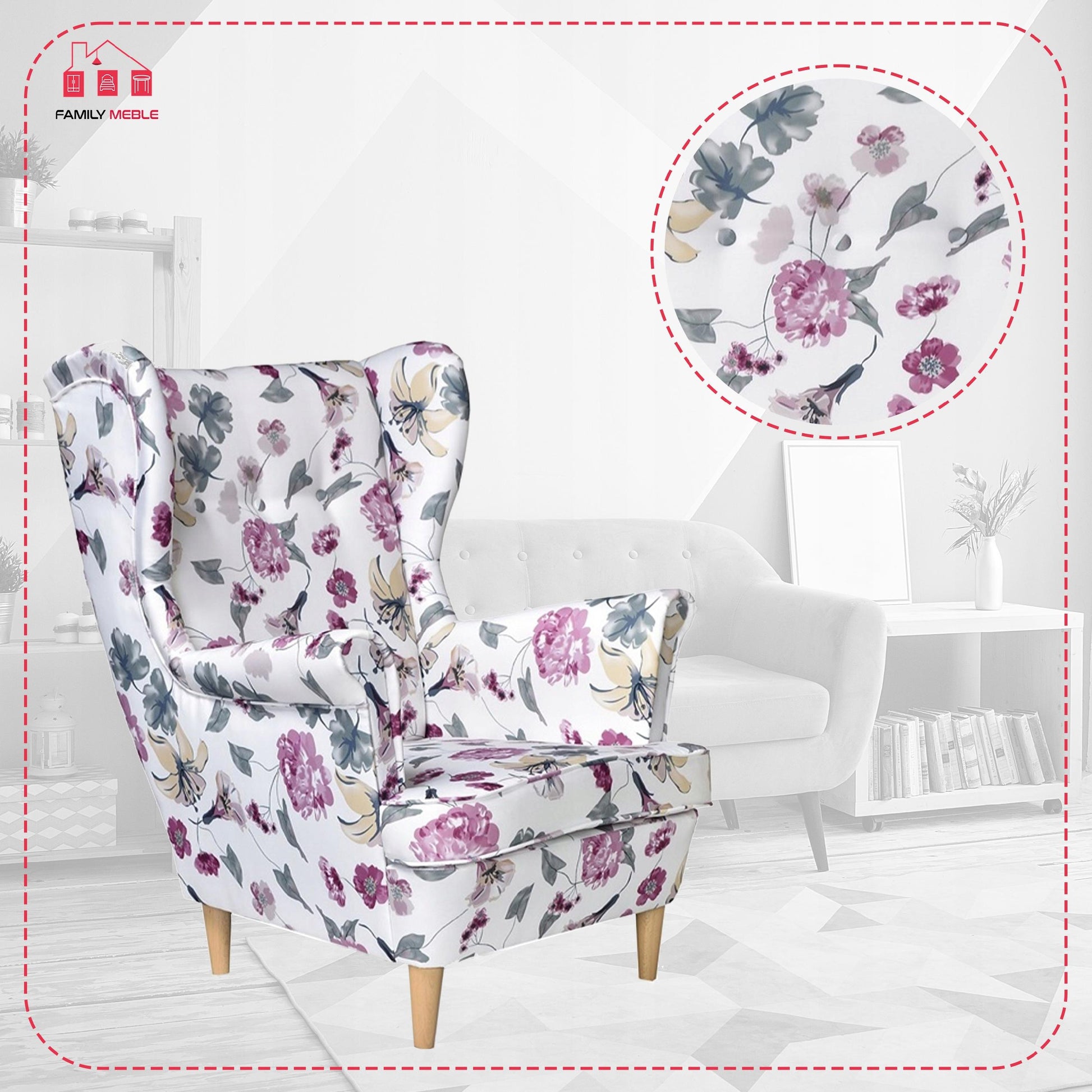 Fotel uszak ARI PRINT skandynawski Family Meble welur kwiaty goździki