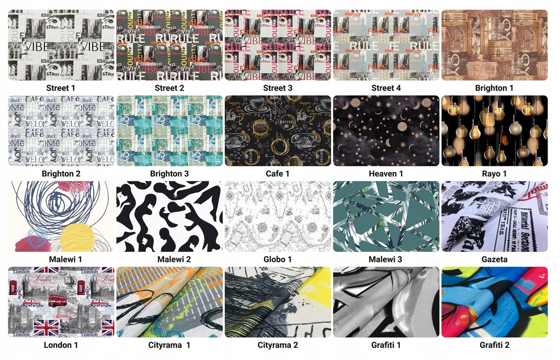 Wzory drukowane są na tkaninach welurowych i plecionkach. W skład kolekcji wchodzą motywy związane z tematyką miasta – grafiki, pocztówki i zabytki. To doskonały wybór dla każdego, kto chce wprowadzić oryginalny i efektowny dodatek do swojego wnętrza.