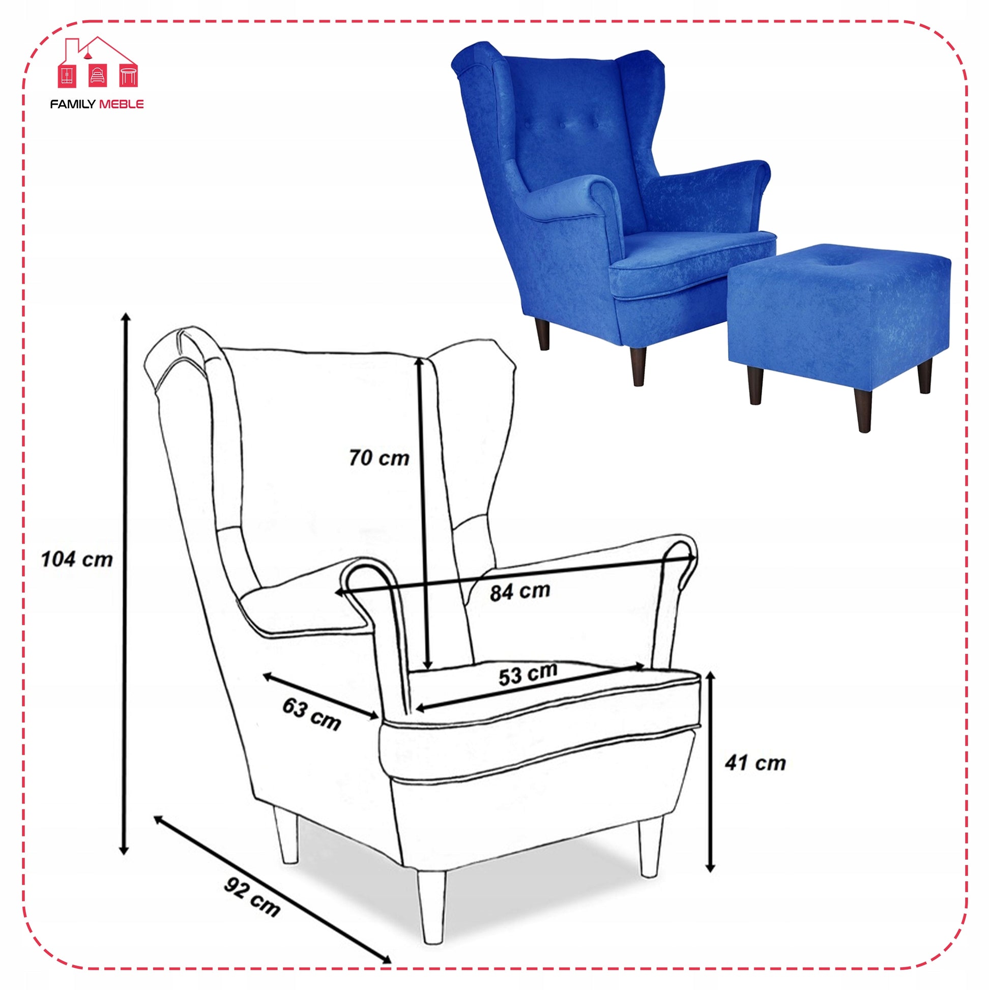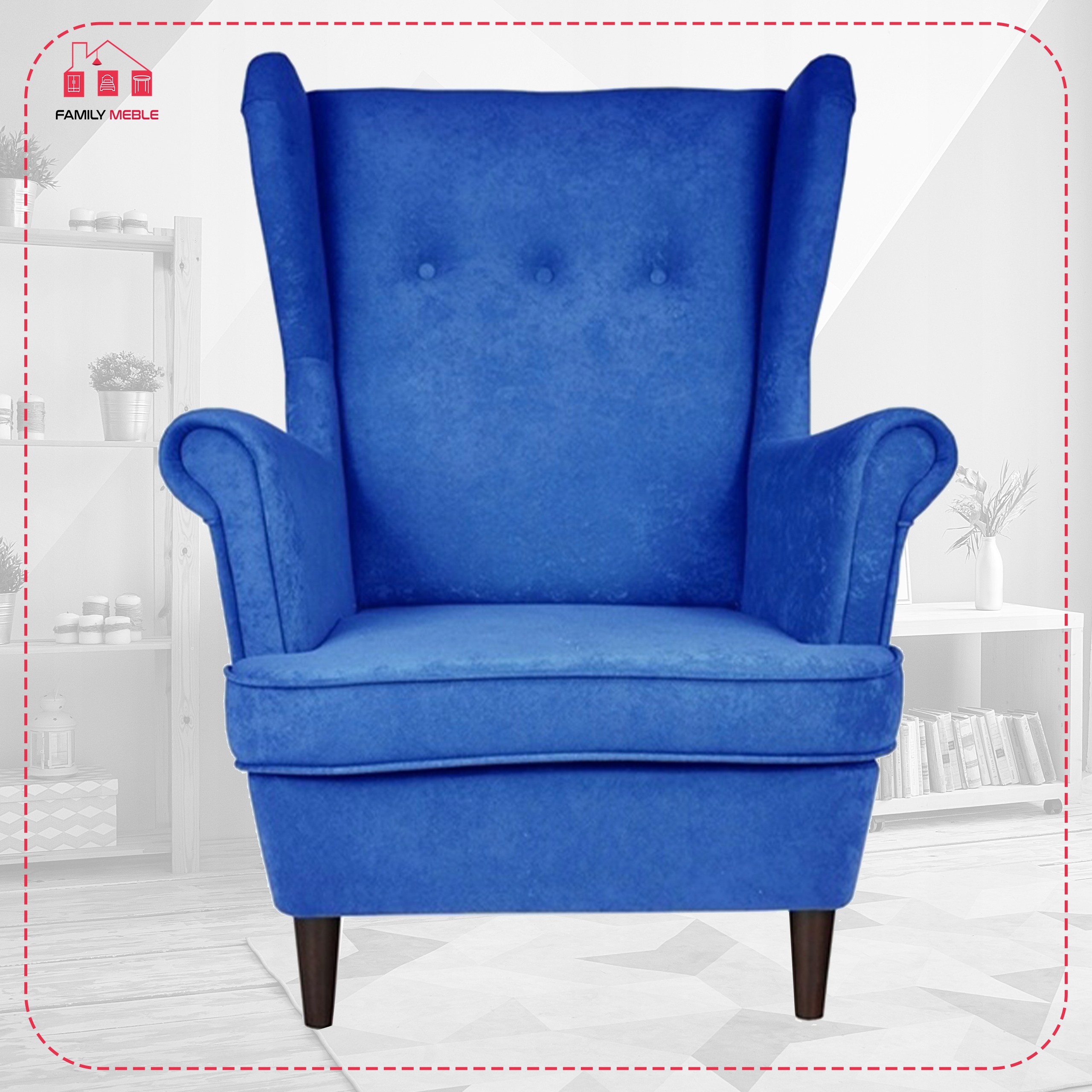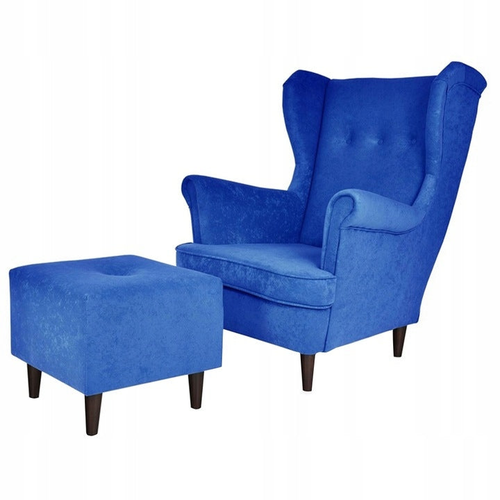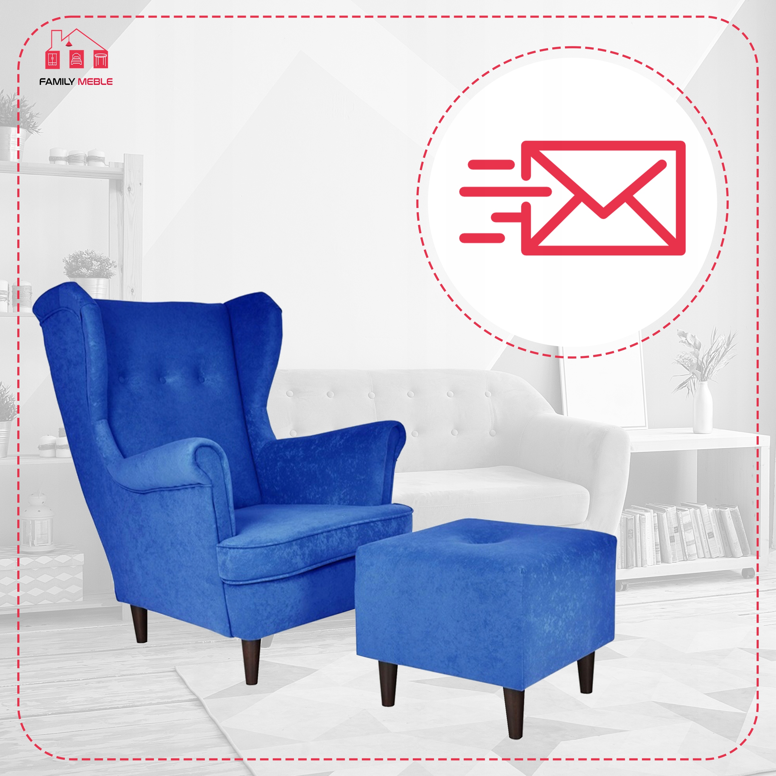 Fotel uszak ARI z podnóżkiem, welur niebieski do relaksu Family Meble