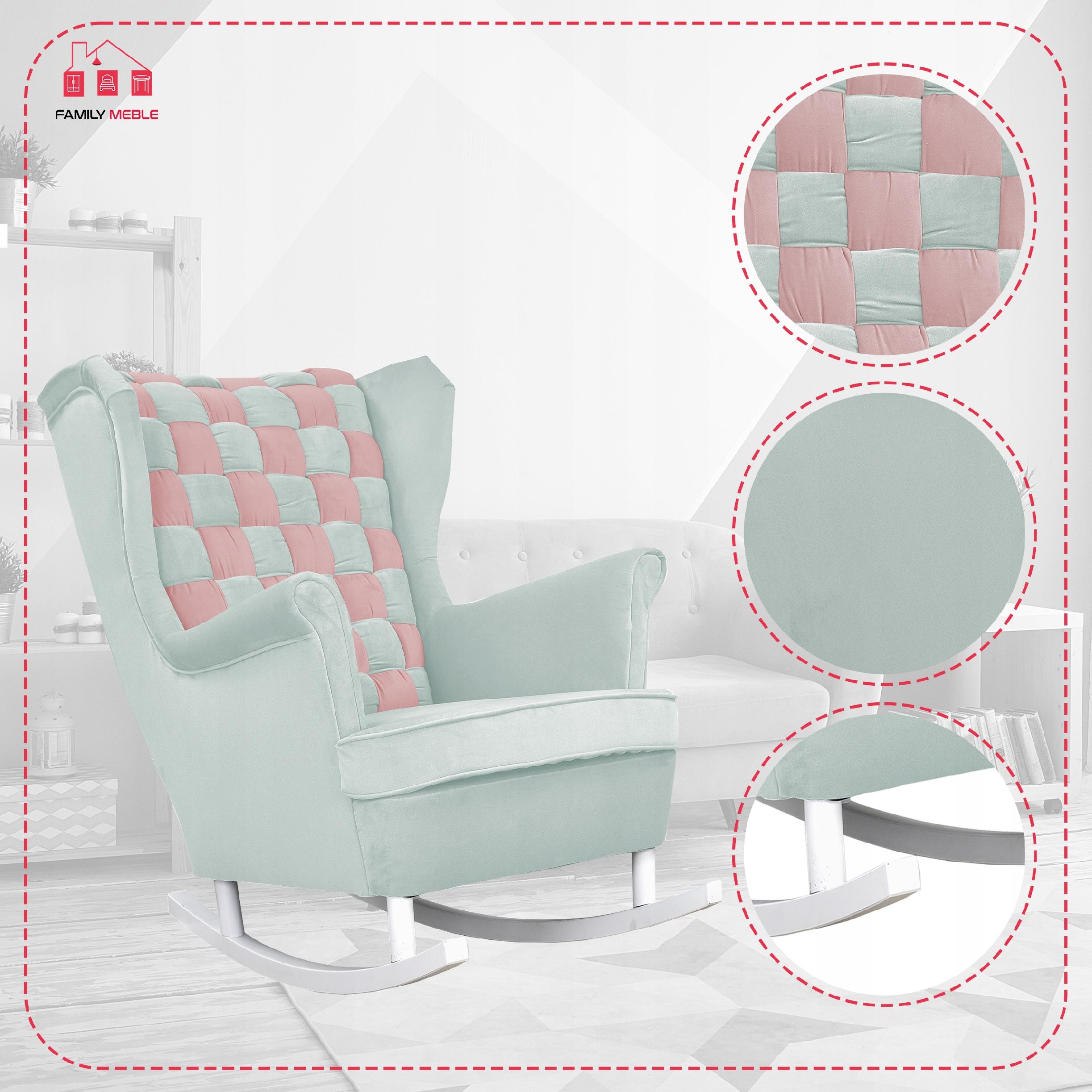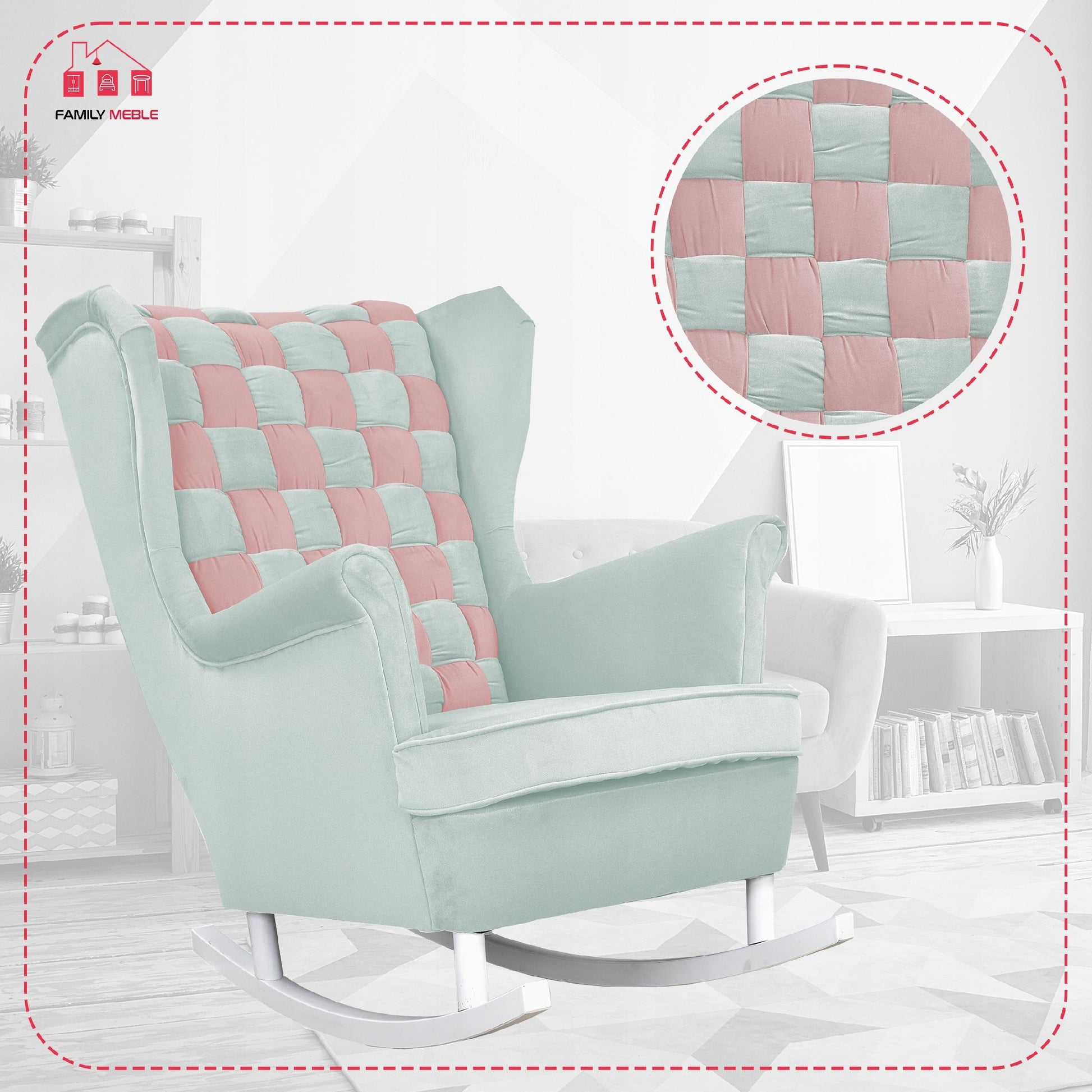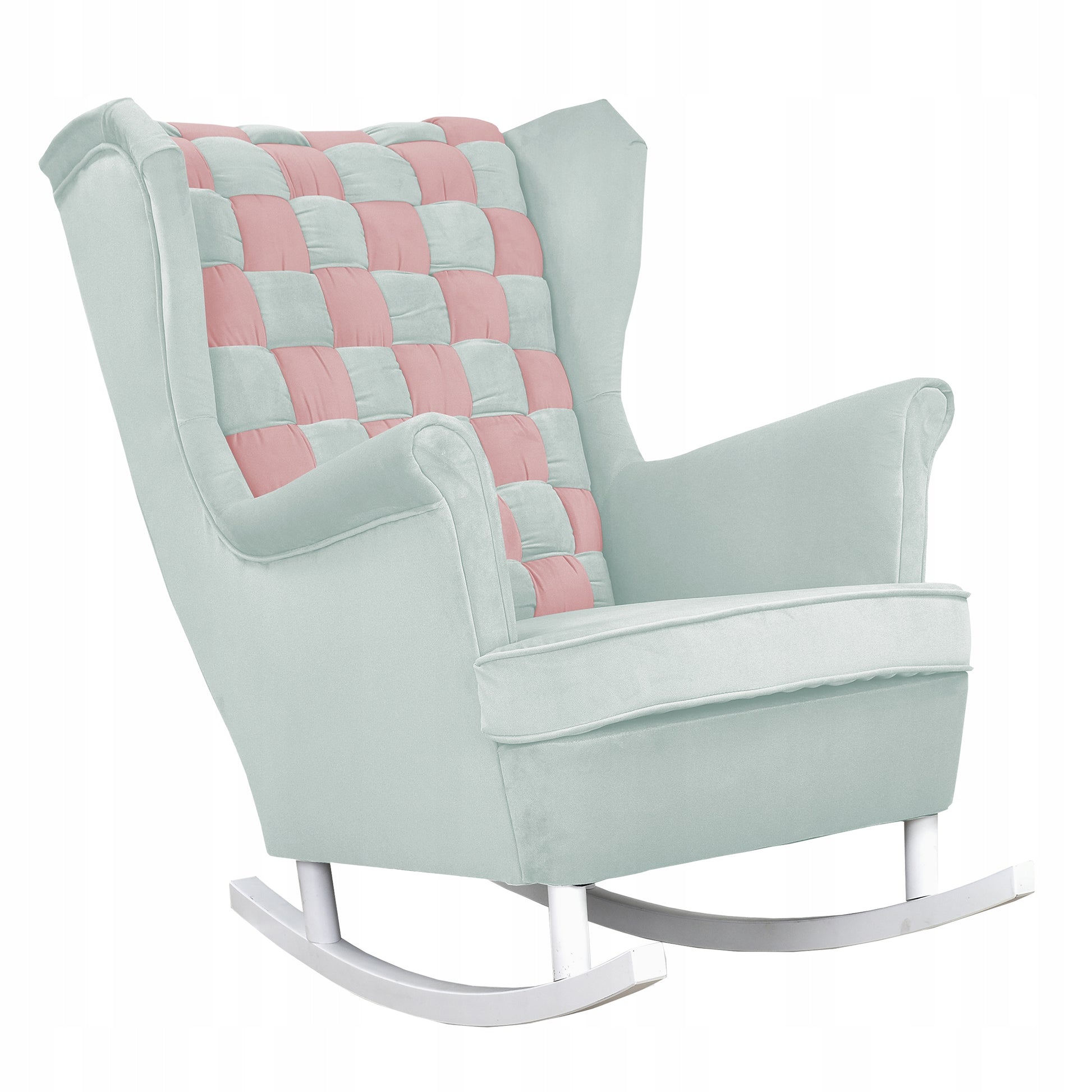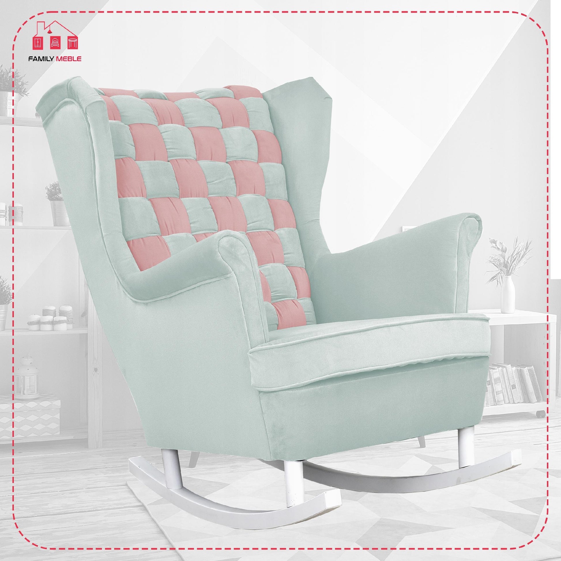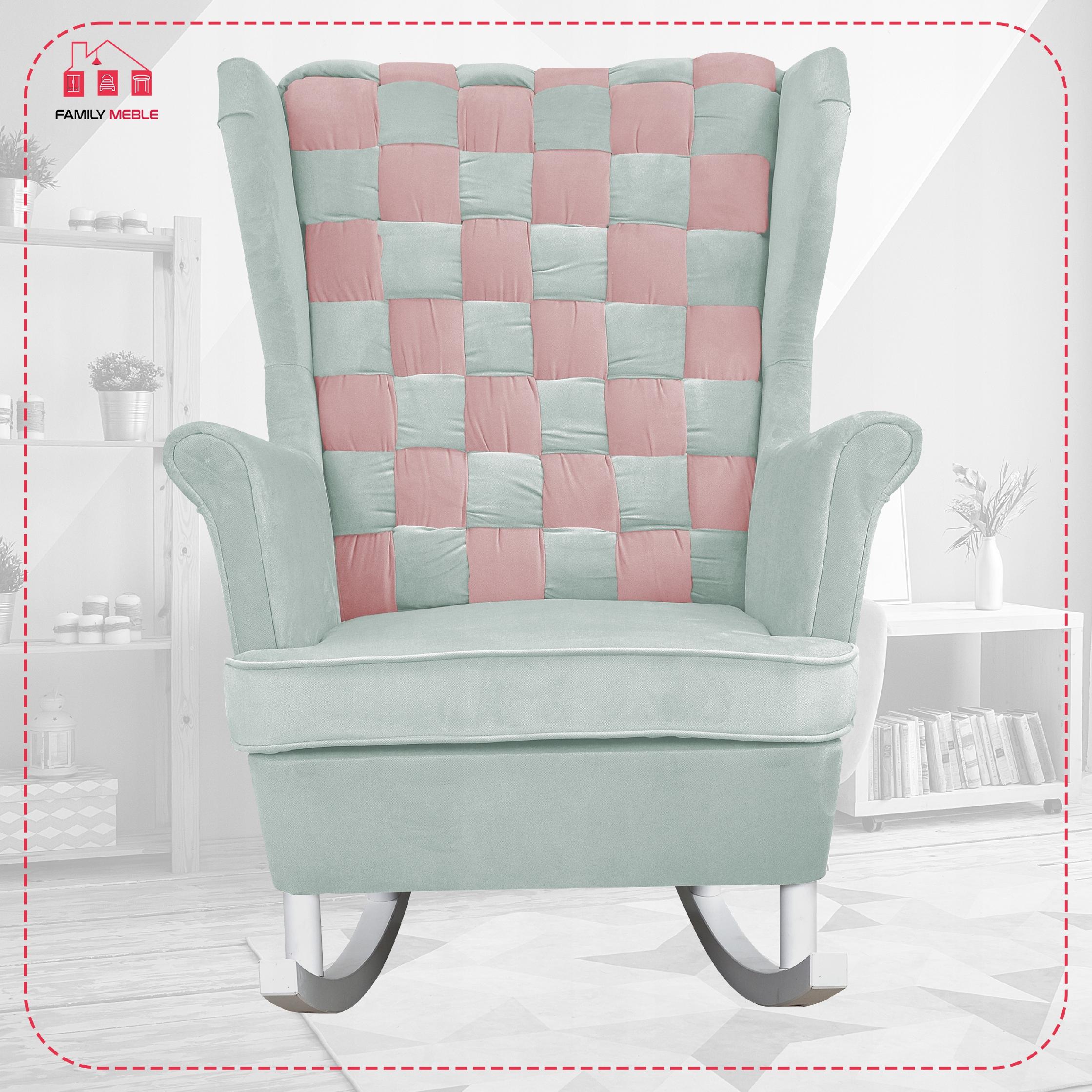 Fotel uszak bujany Carol Duo Family Meble różowo błękitny szachownica welur