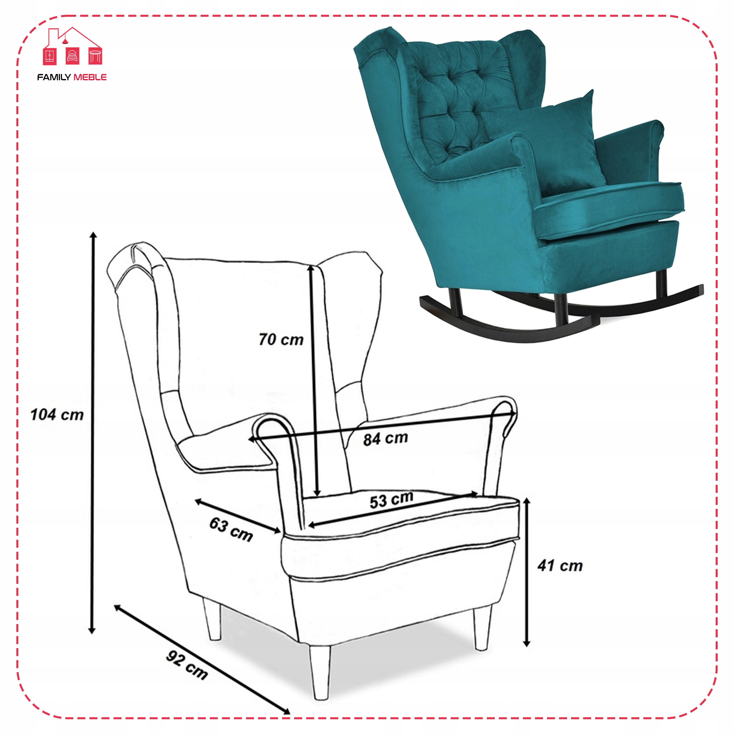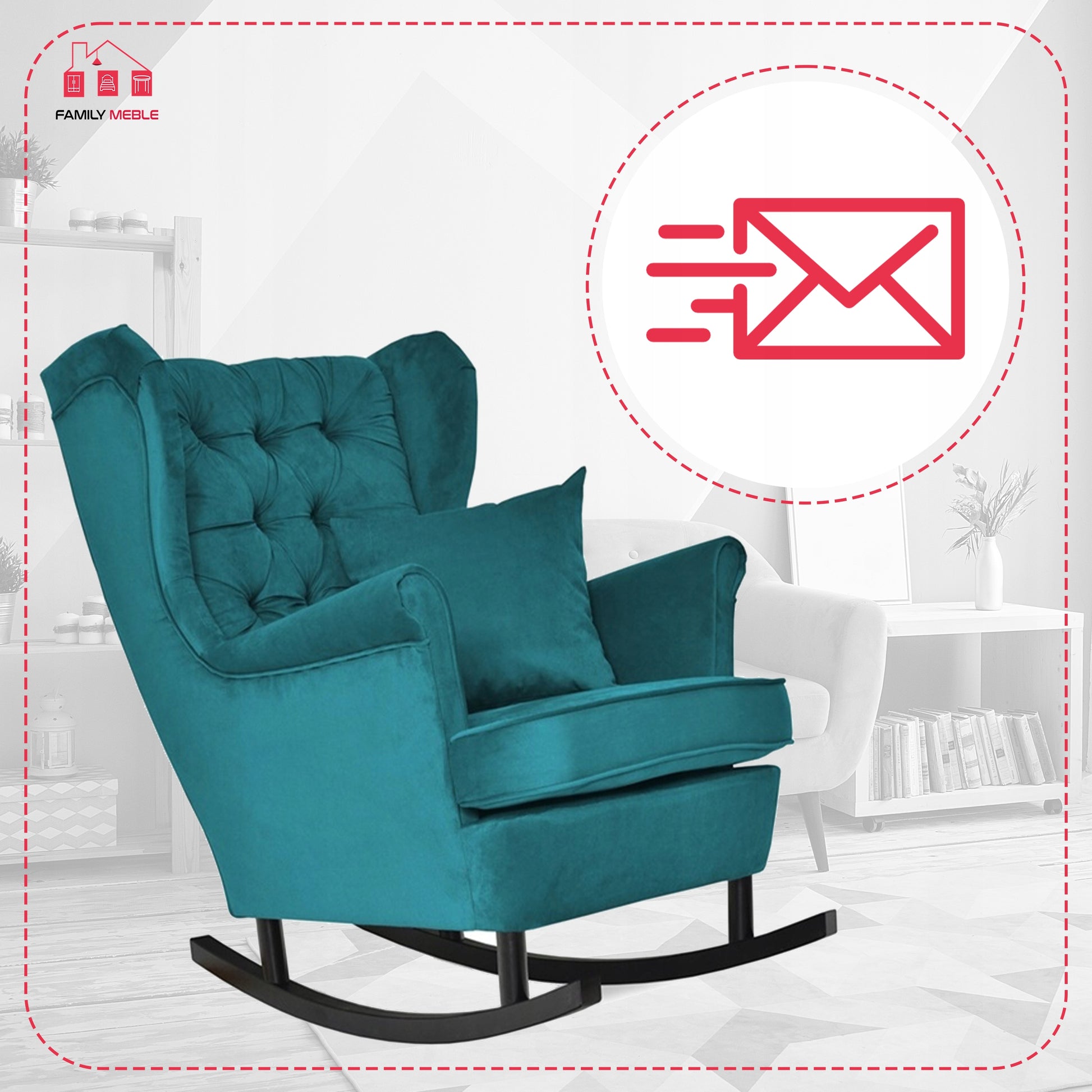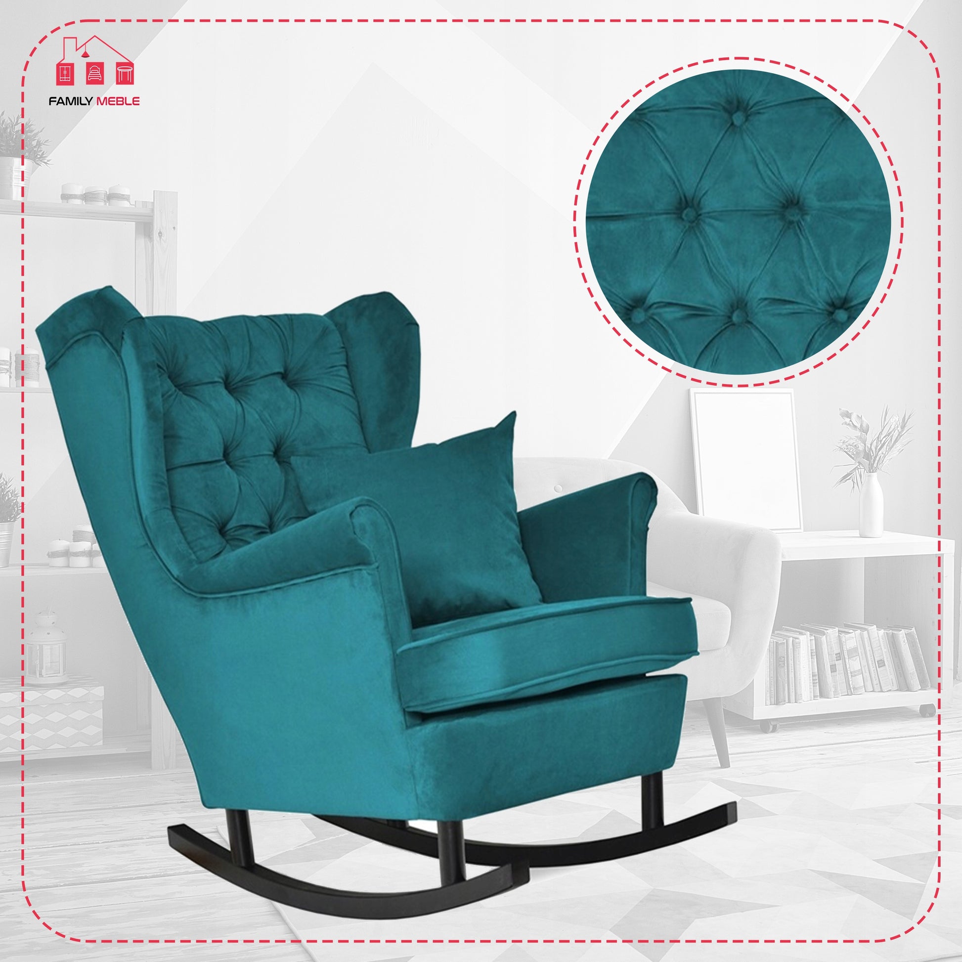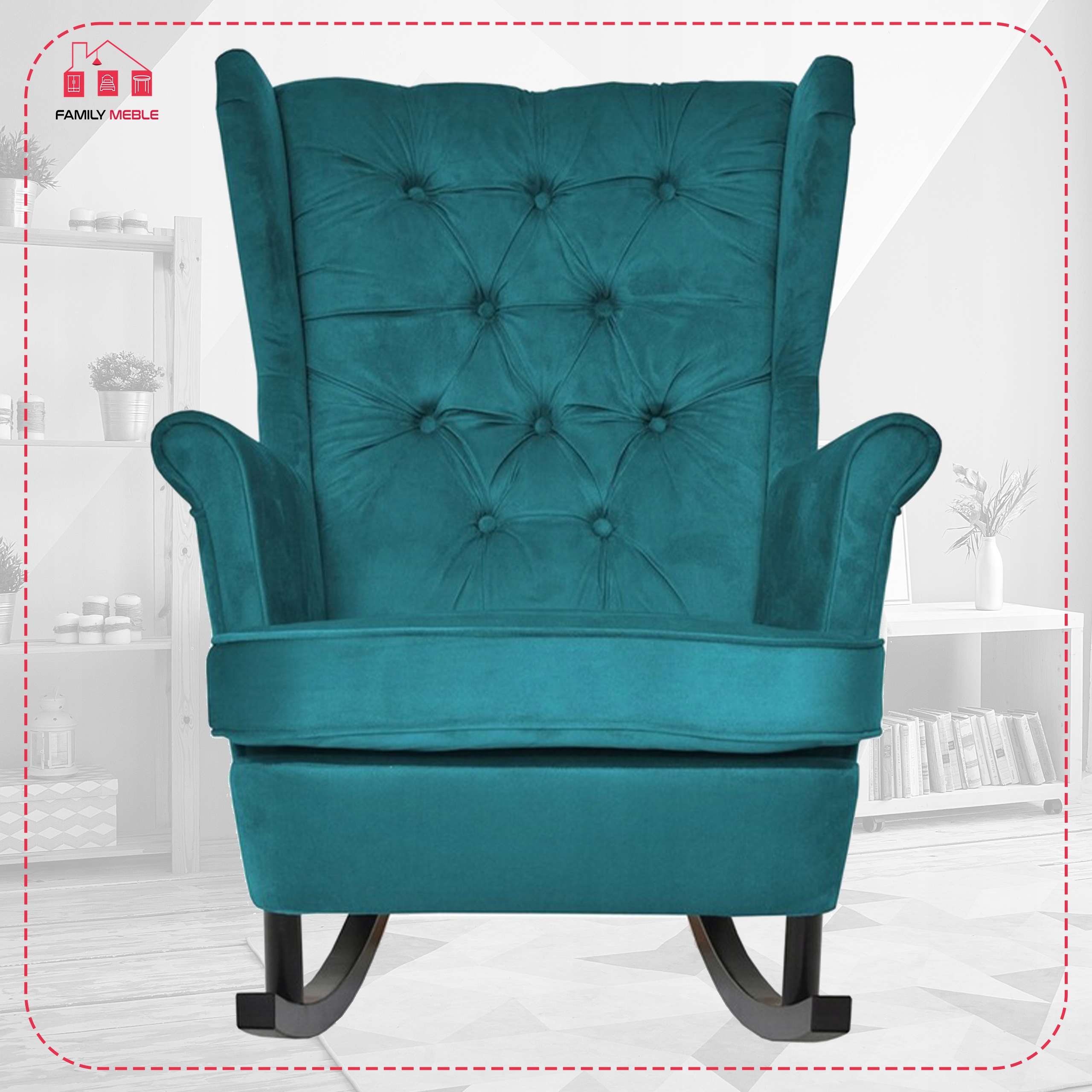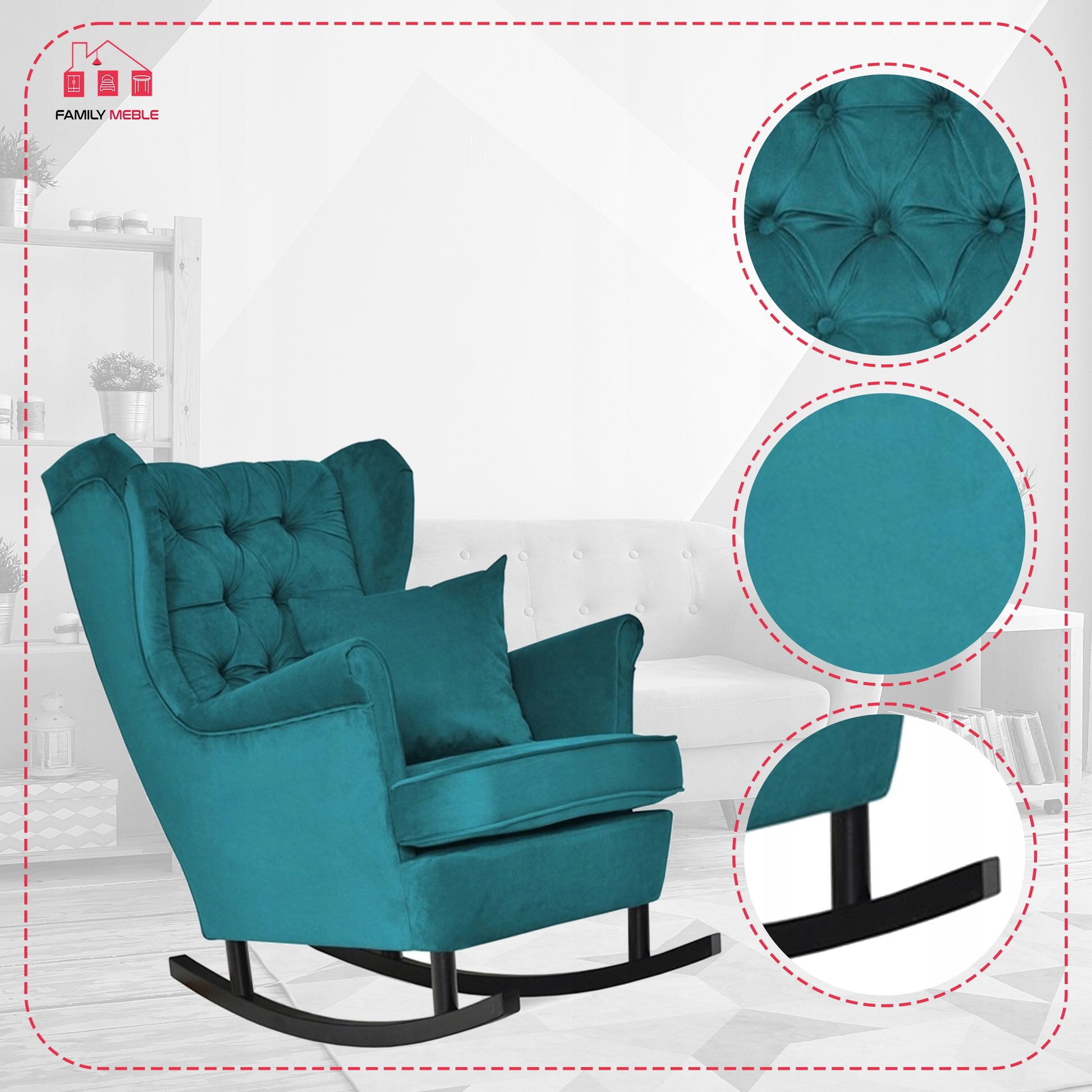Fotel uszak bujany skandynawski Gaja Family Mebl patynowy turkus bujak