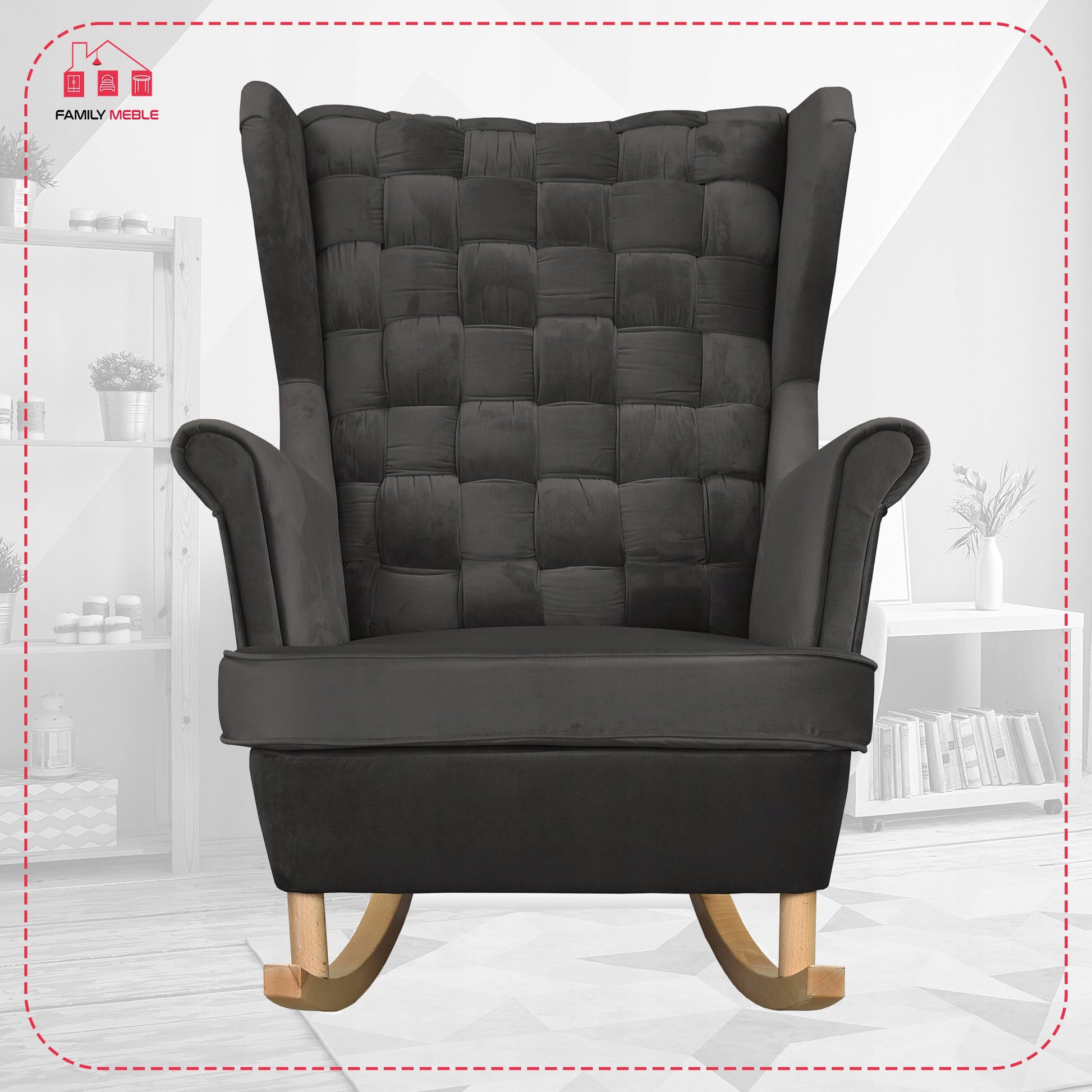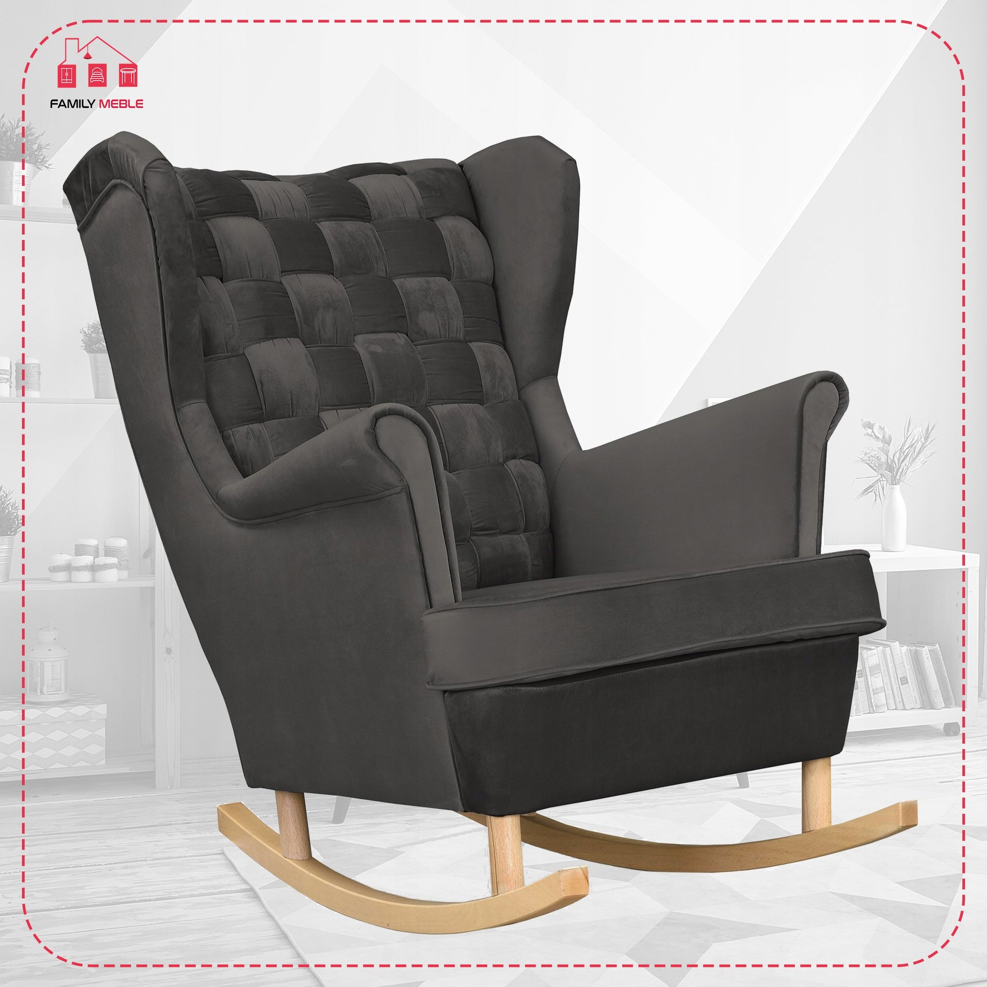 Fotel uszak Carol bujany skandynawski Family Meble grafitowy ciemny