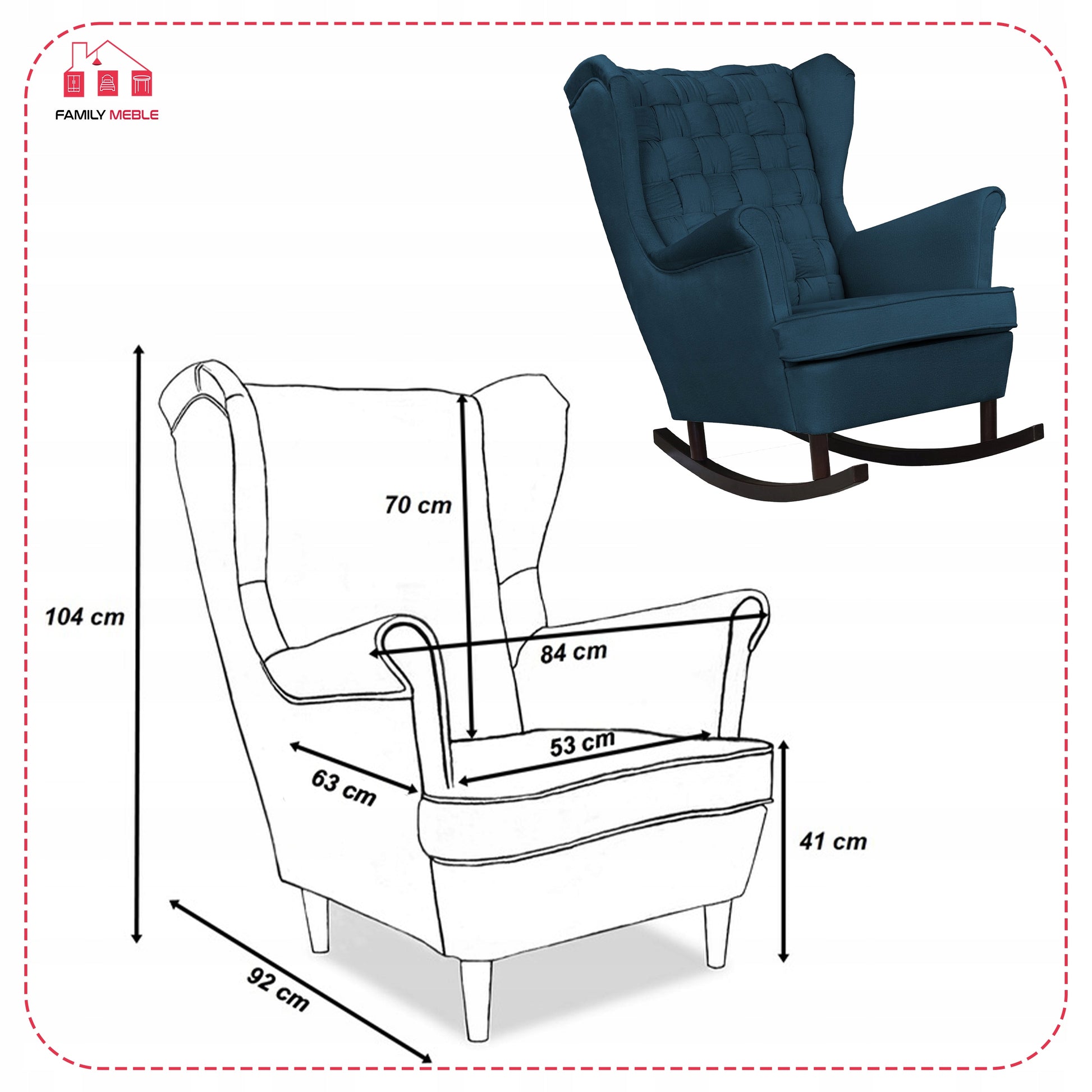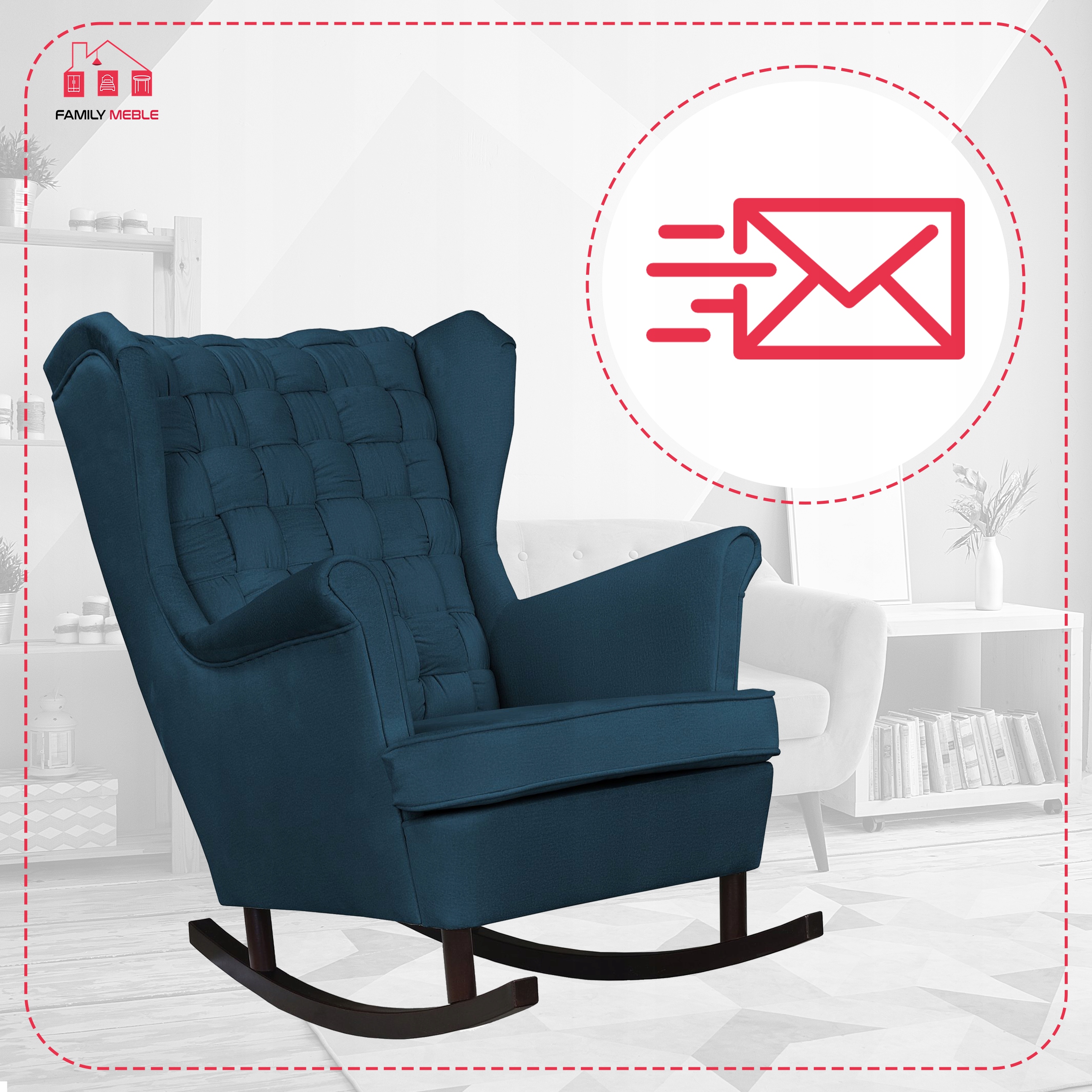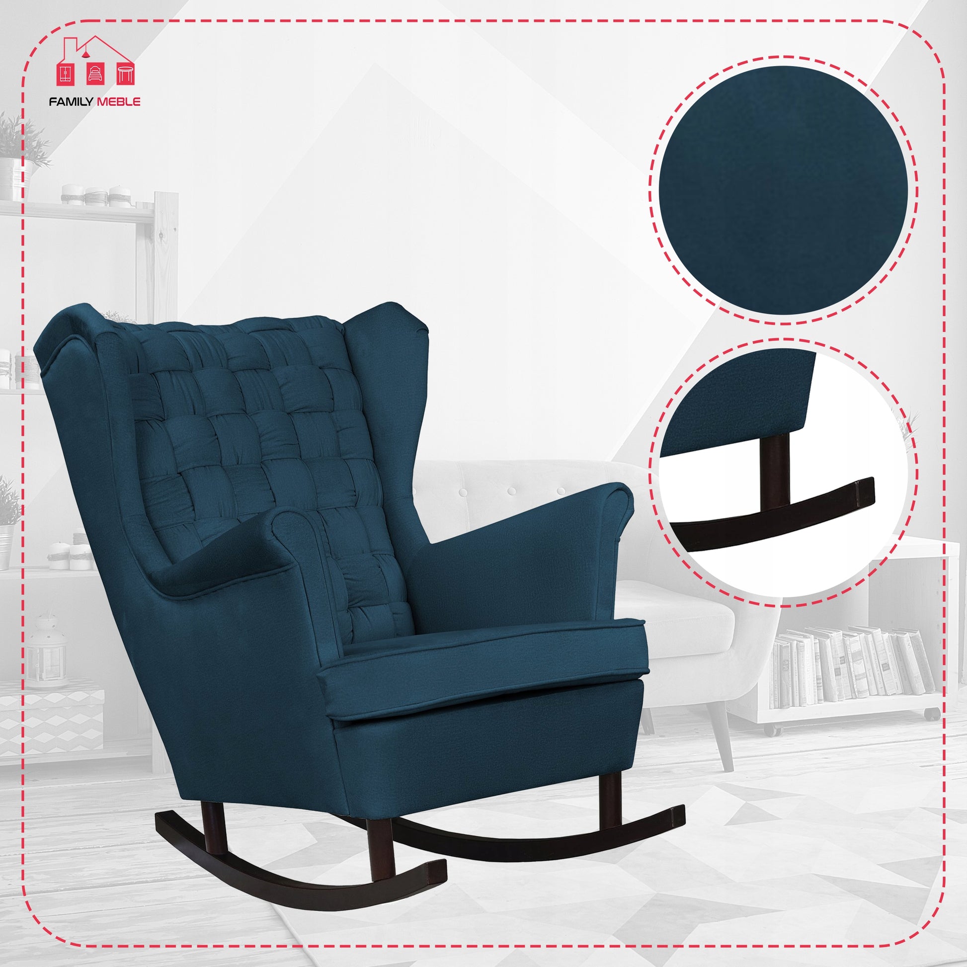 Fotel uszak Carol bujany skandynawski Family Meble GRANATOWY niebieski