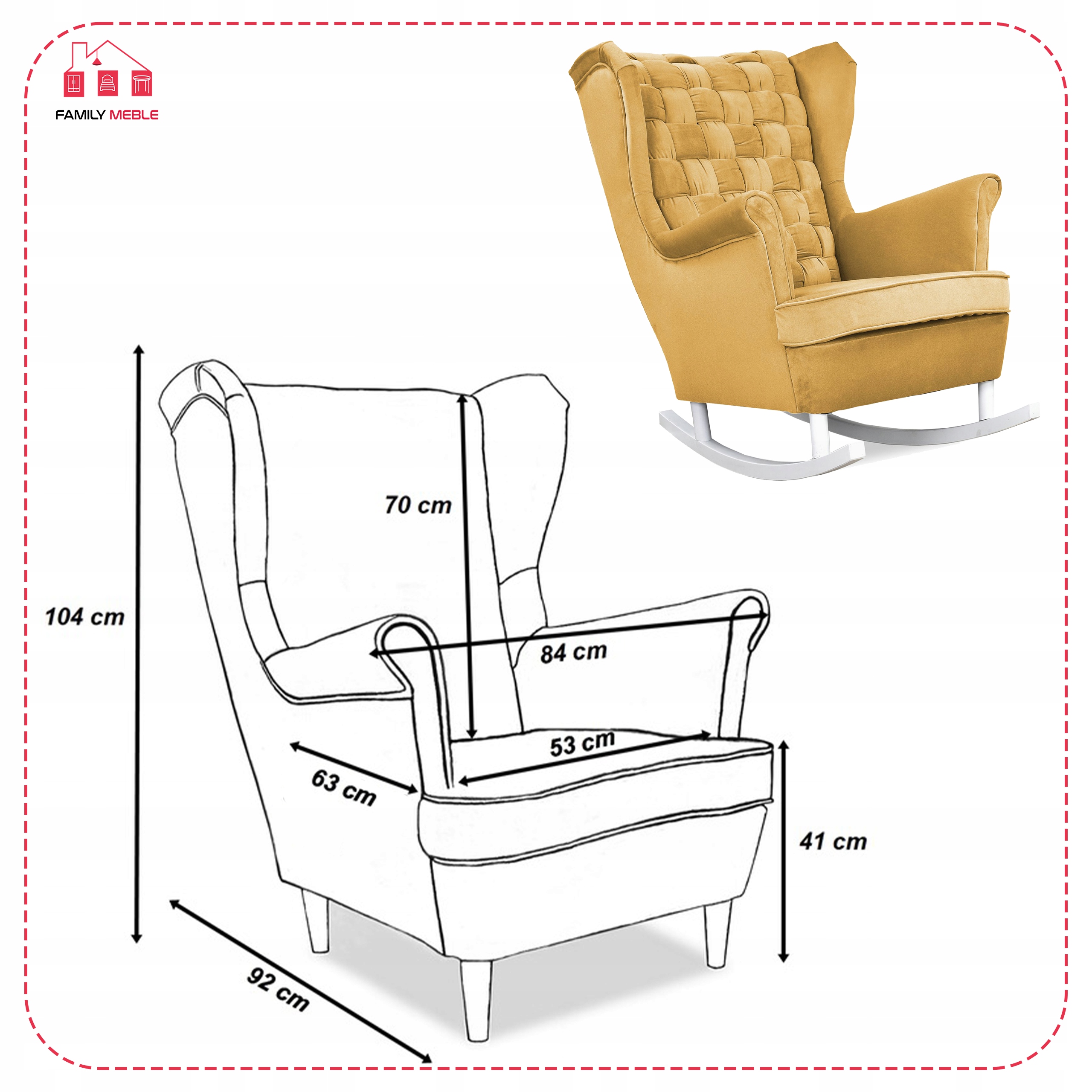 Fotel uszak Carol bujany skandynawski Family Meble słoneczny, żółty
