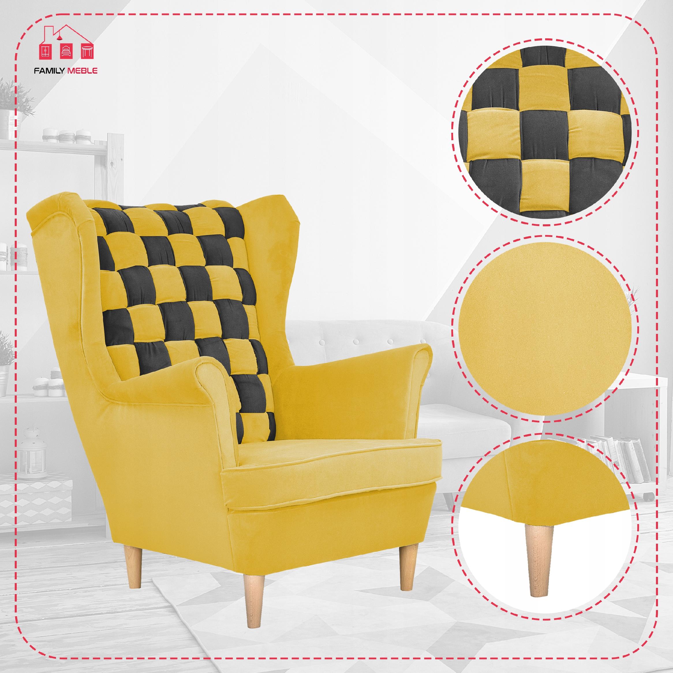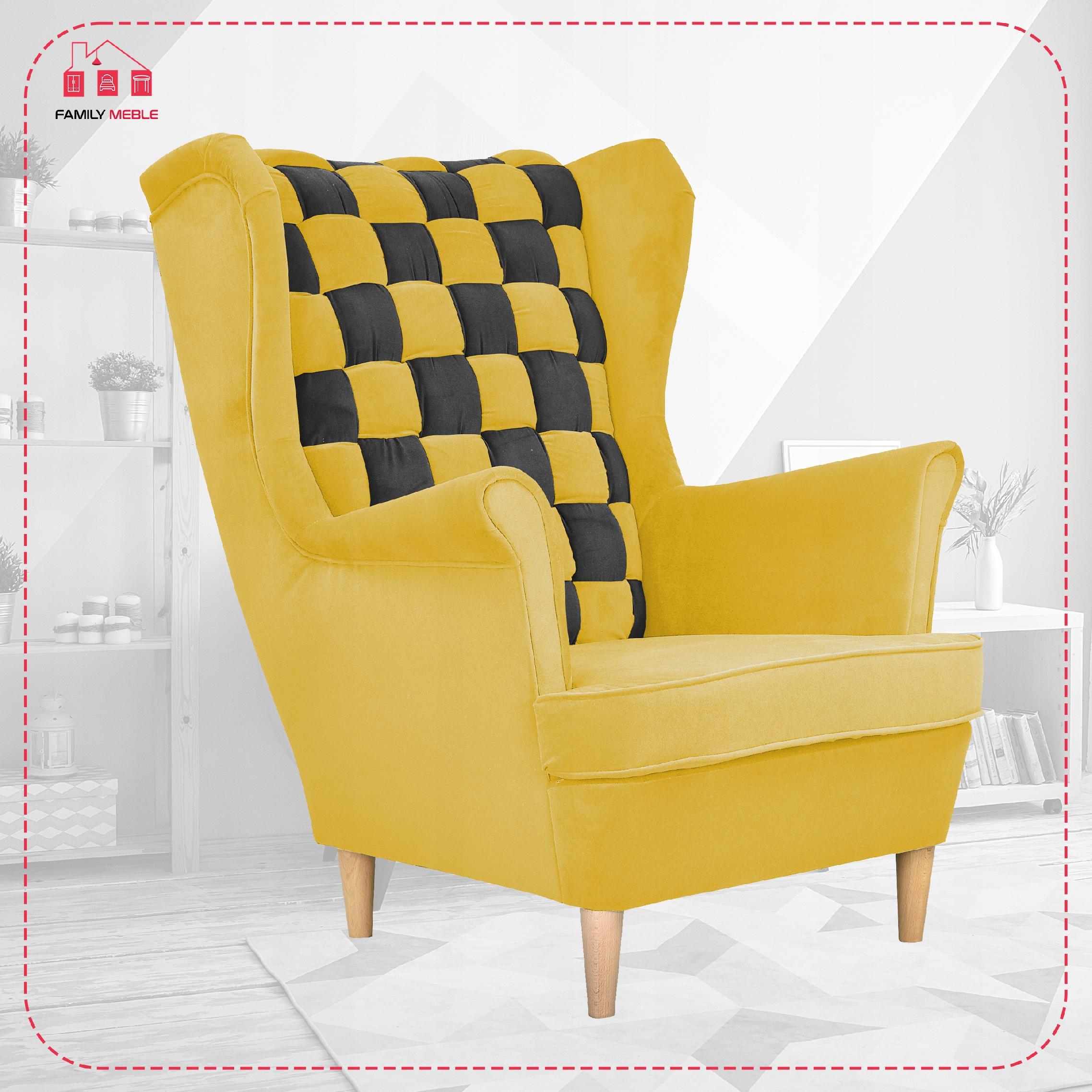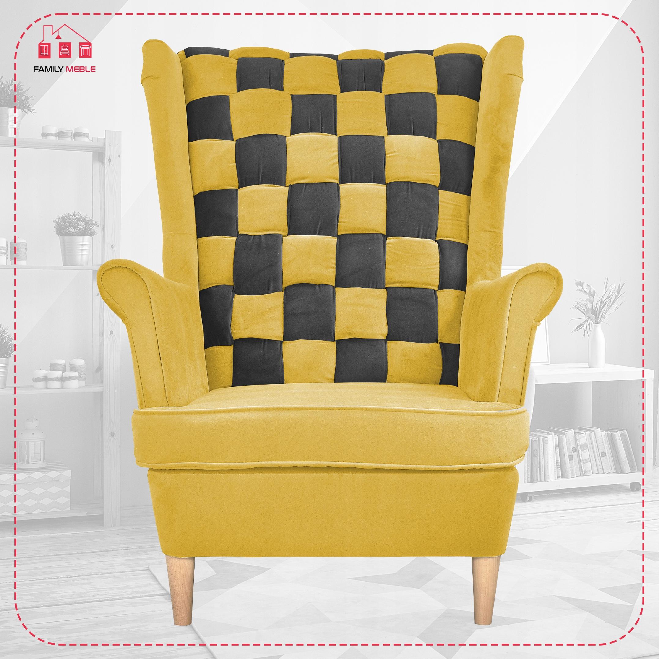 Fotel uszak Carol Duo skandynawski Family Meble żółto czarny paski