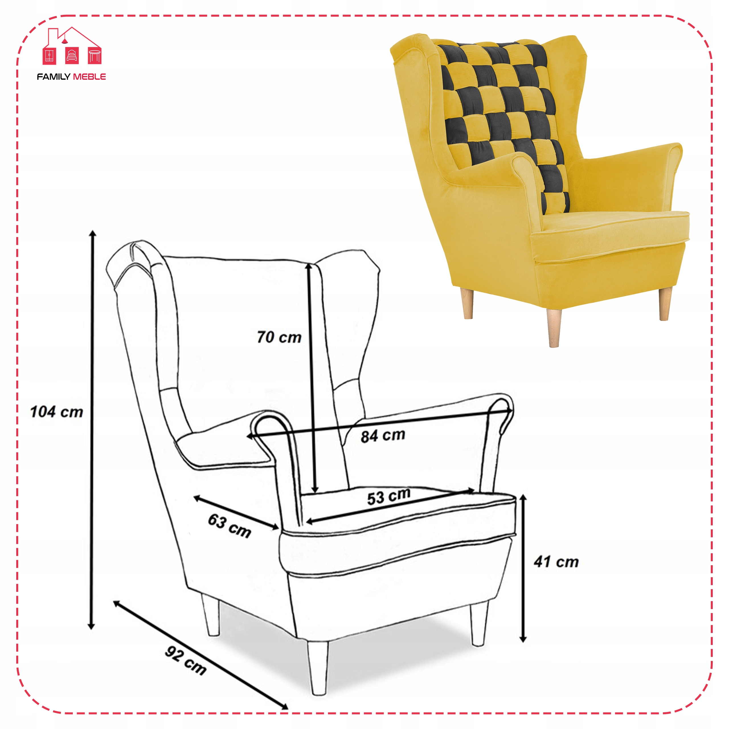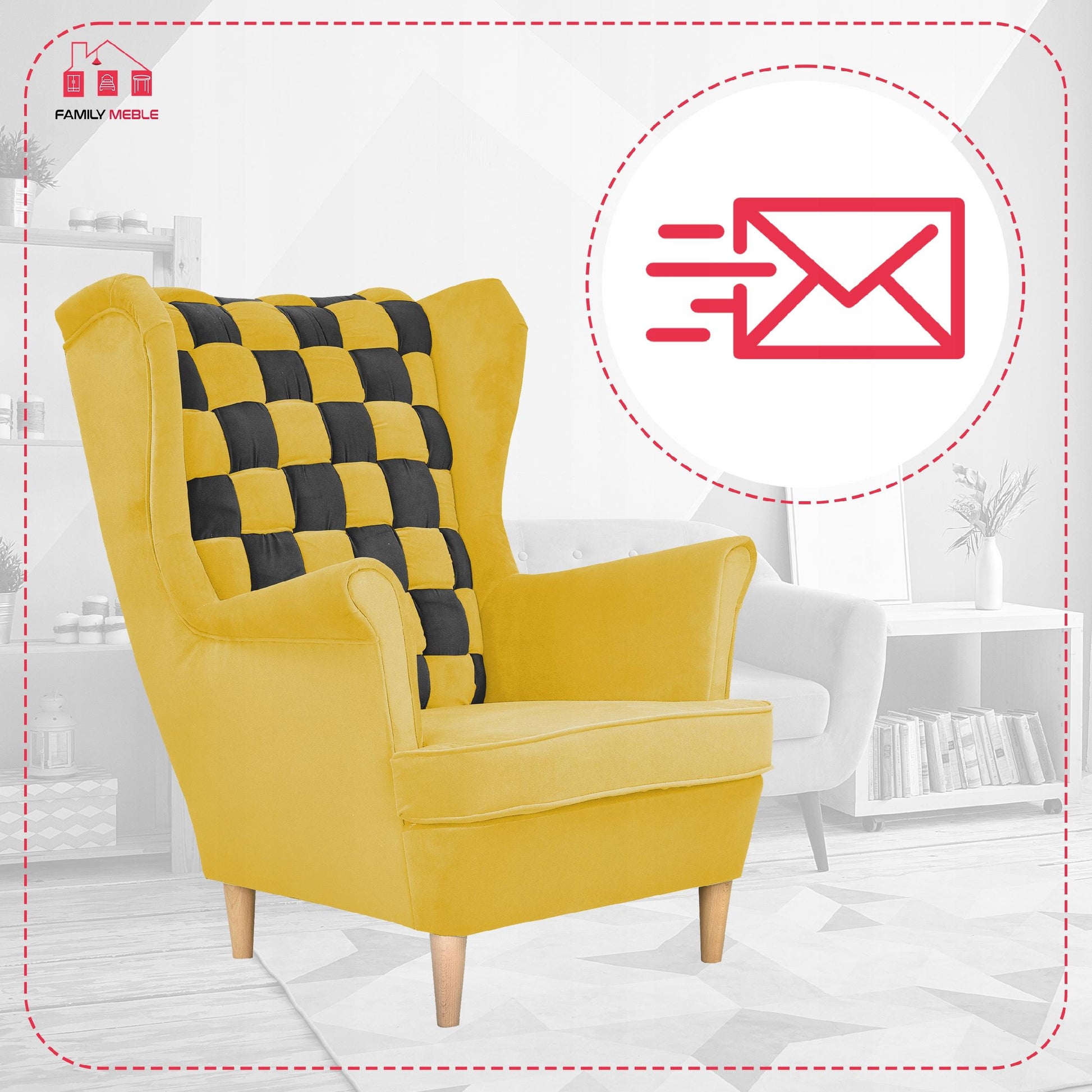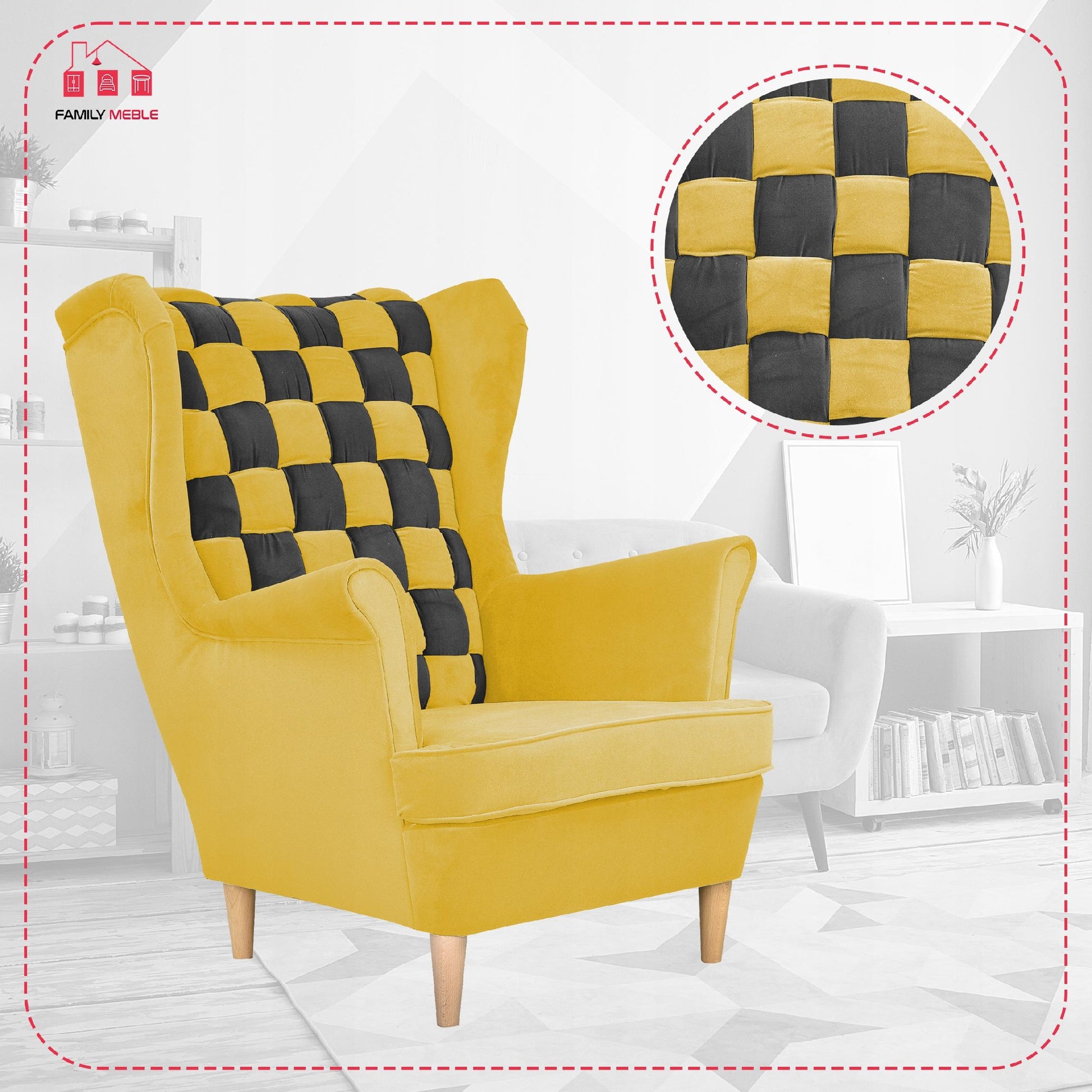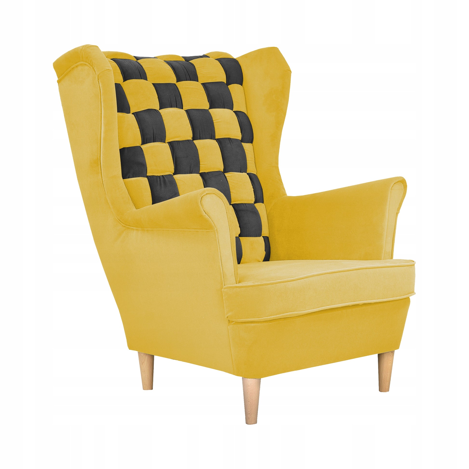 Fotel uszak Carol Duo skandynawski Family Meble żółto czarny paski