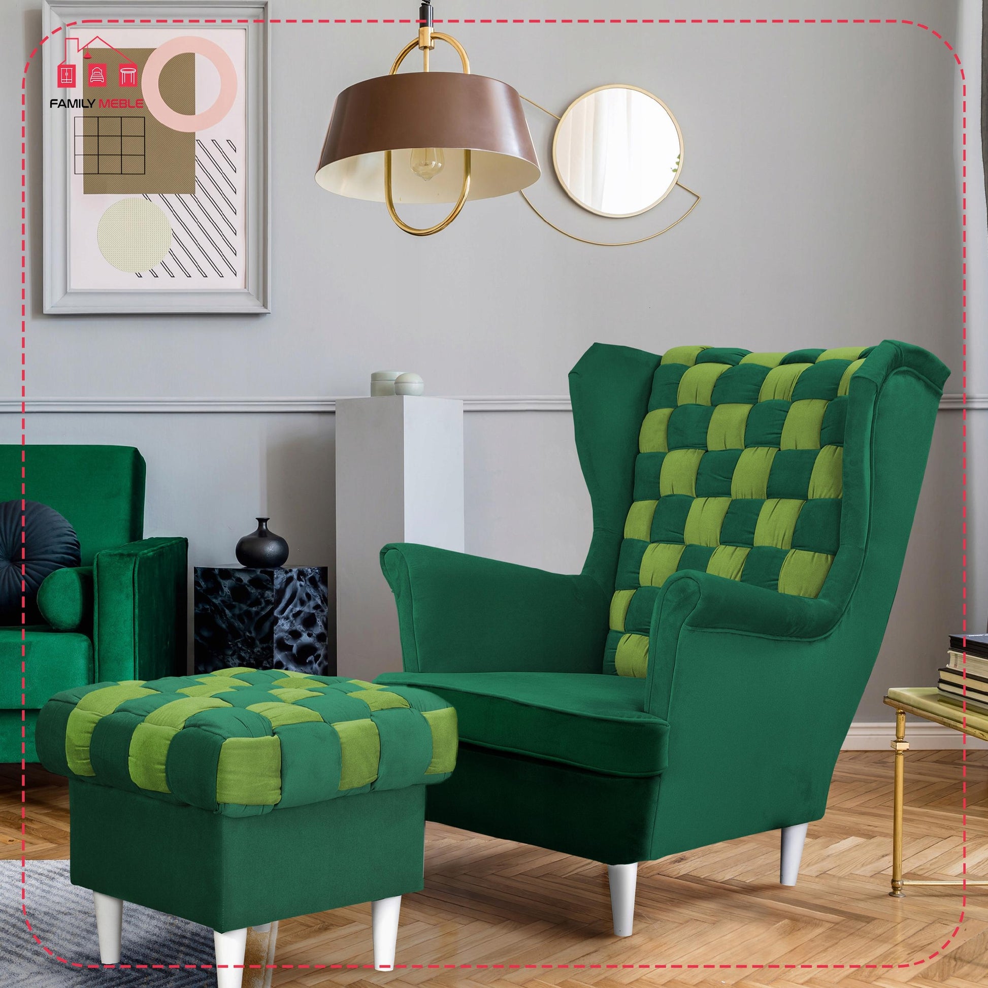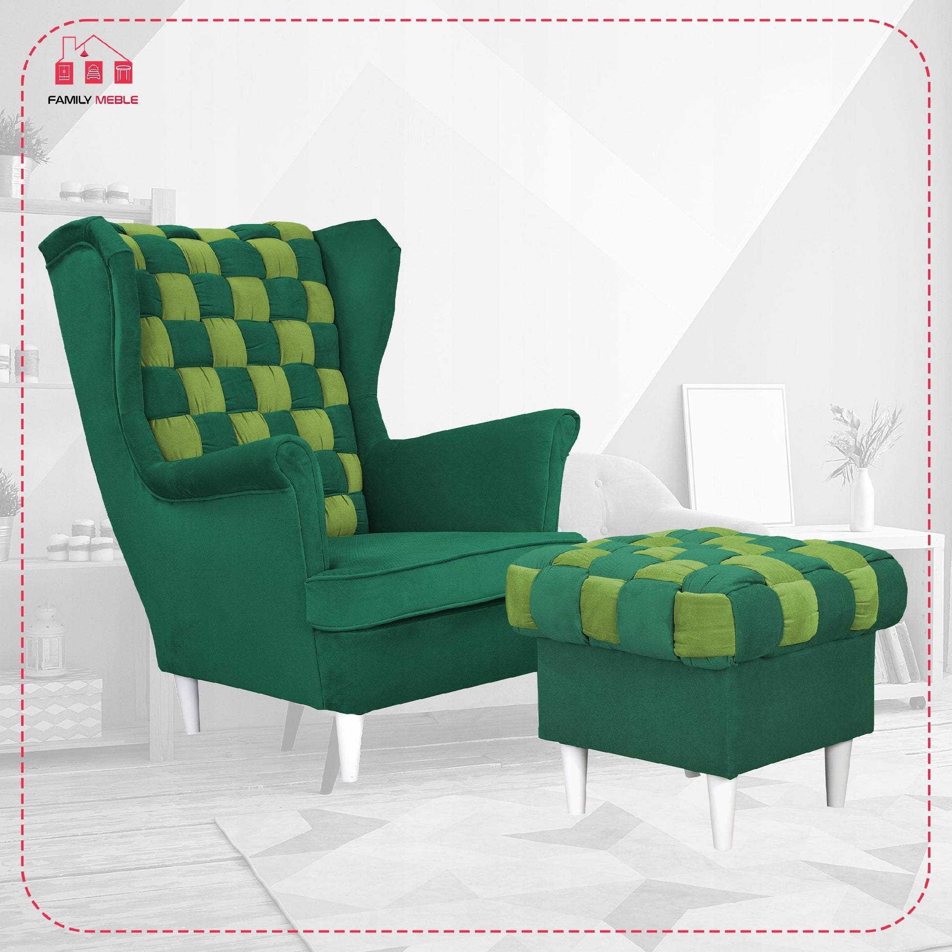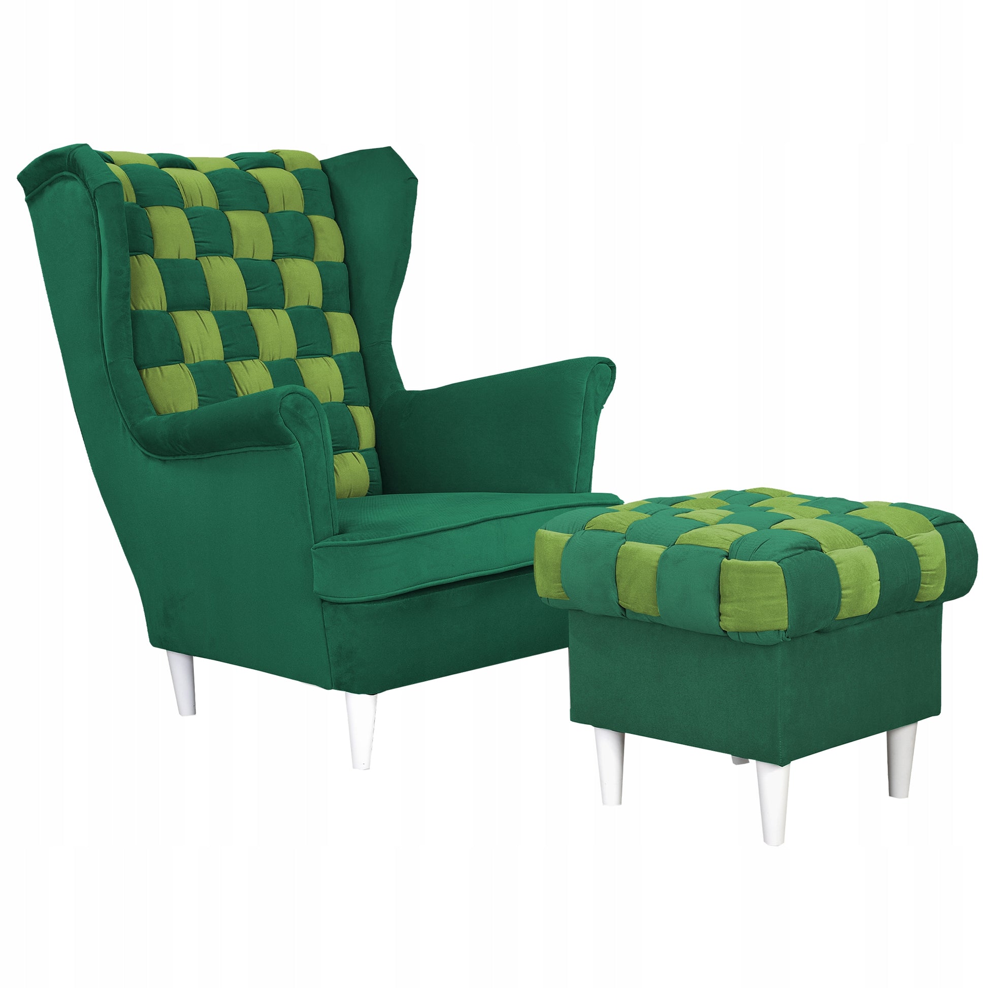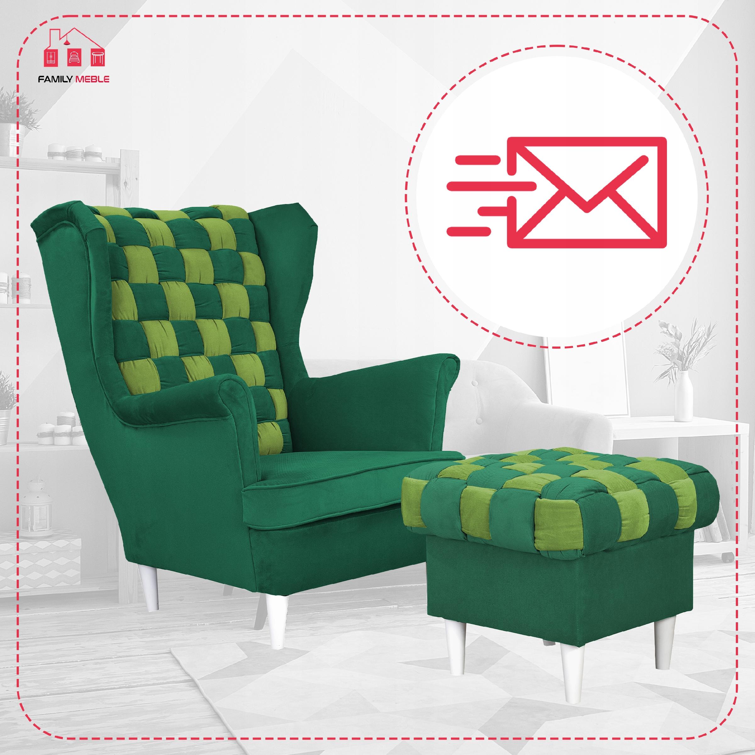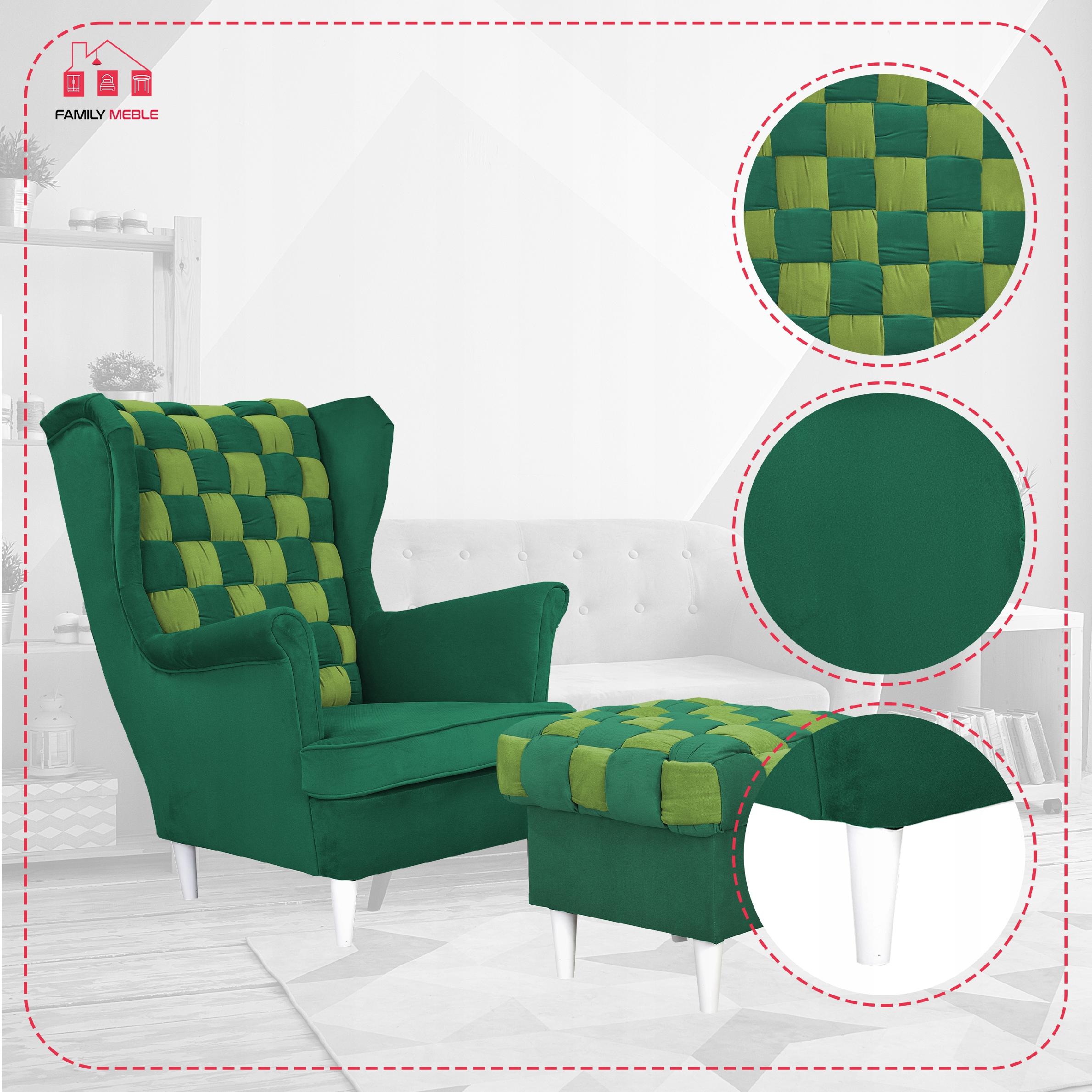 Fotel uszak Carol Duo z podnóżkiem skandynawski Family Meble zielony żółty