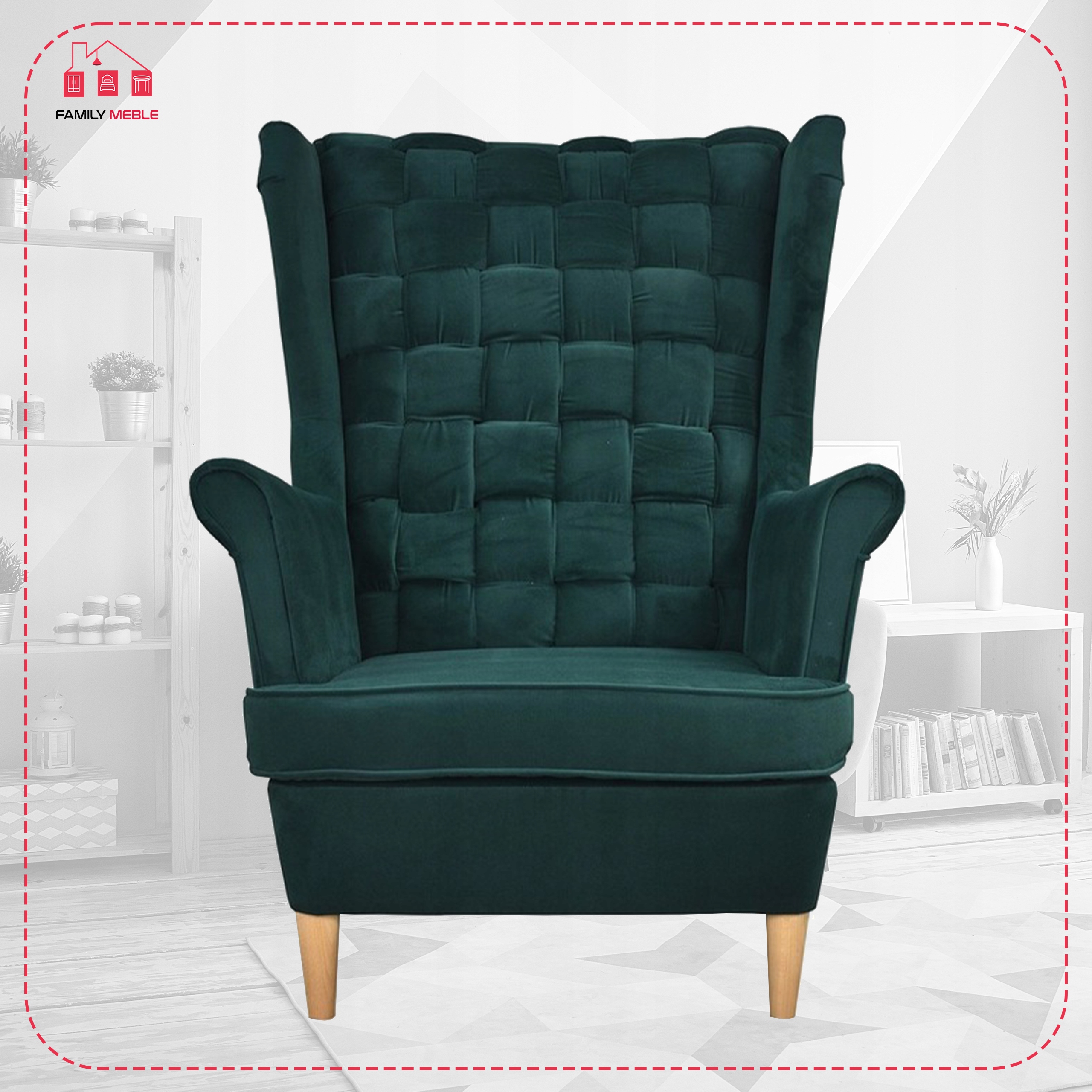 Fotel uszak Carol skandynawski Family Meble butelkowa zieleń, zielony