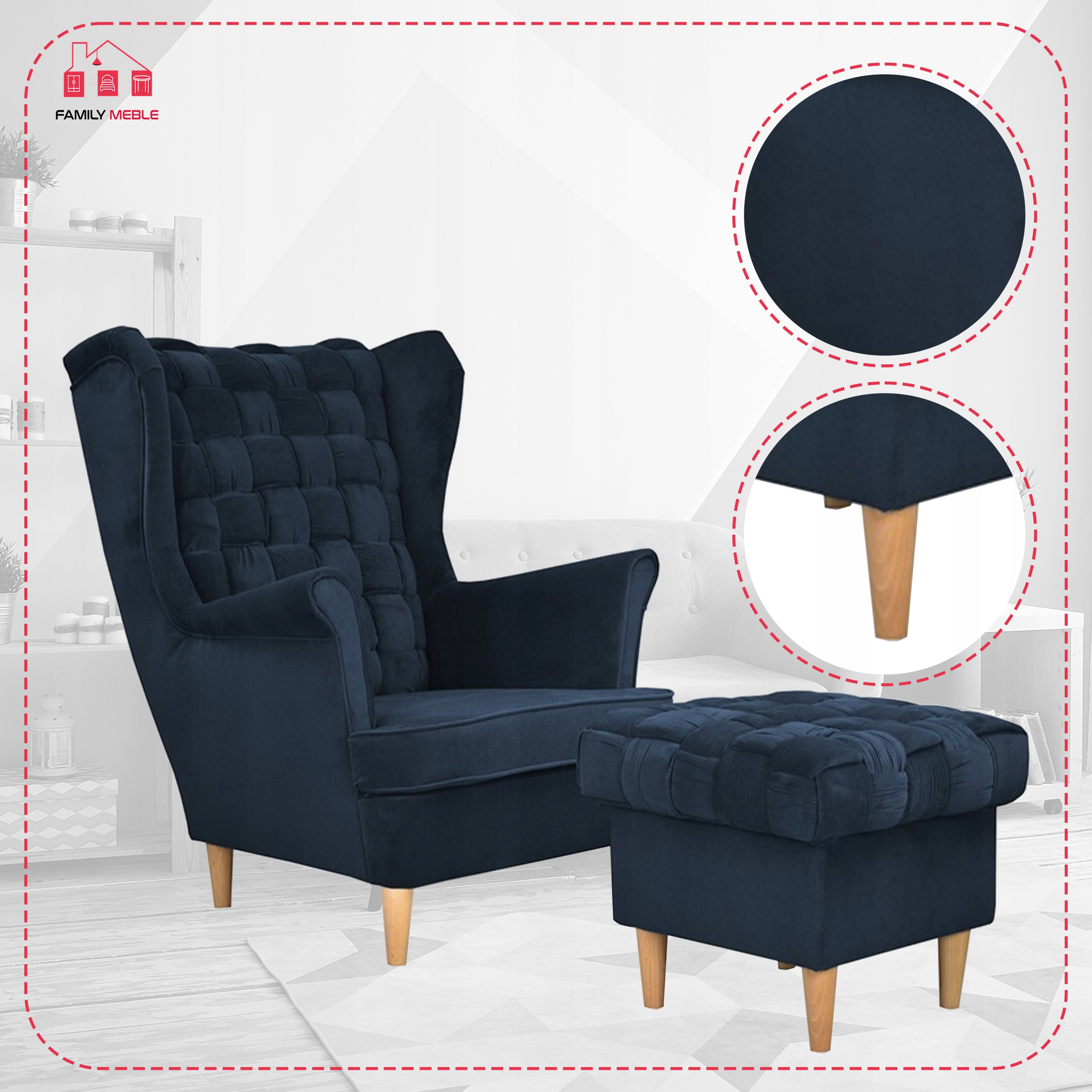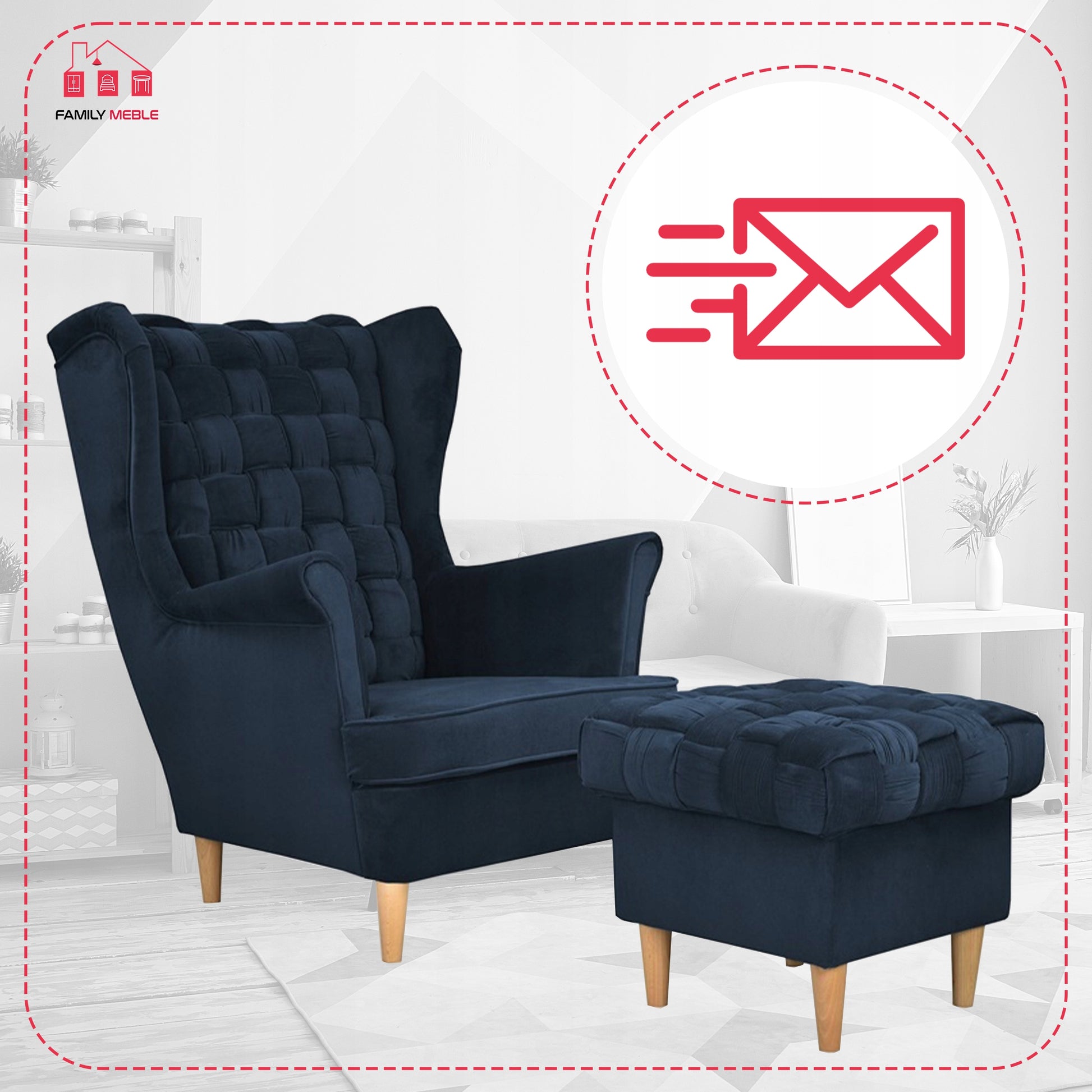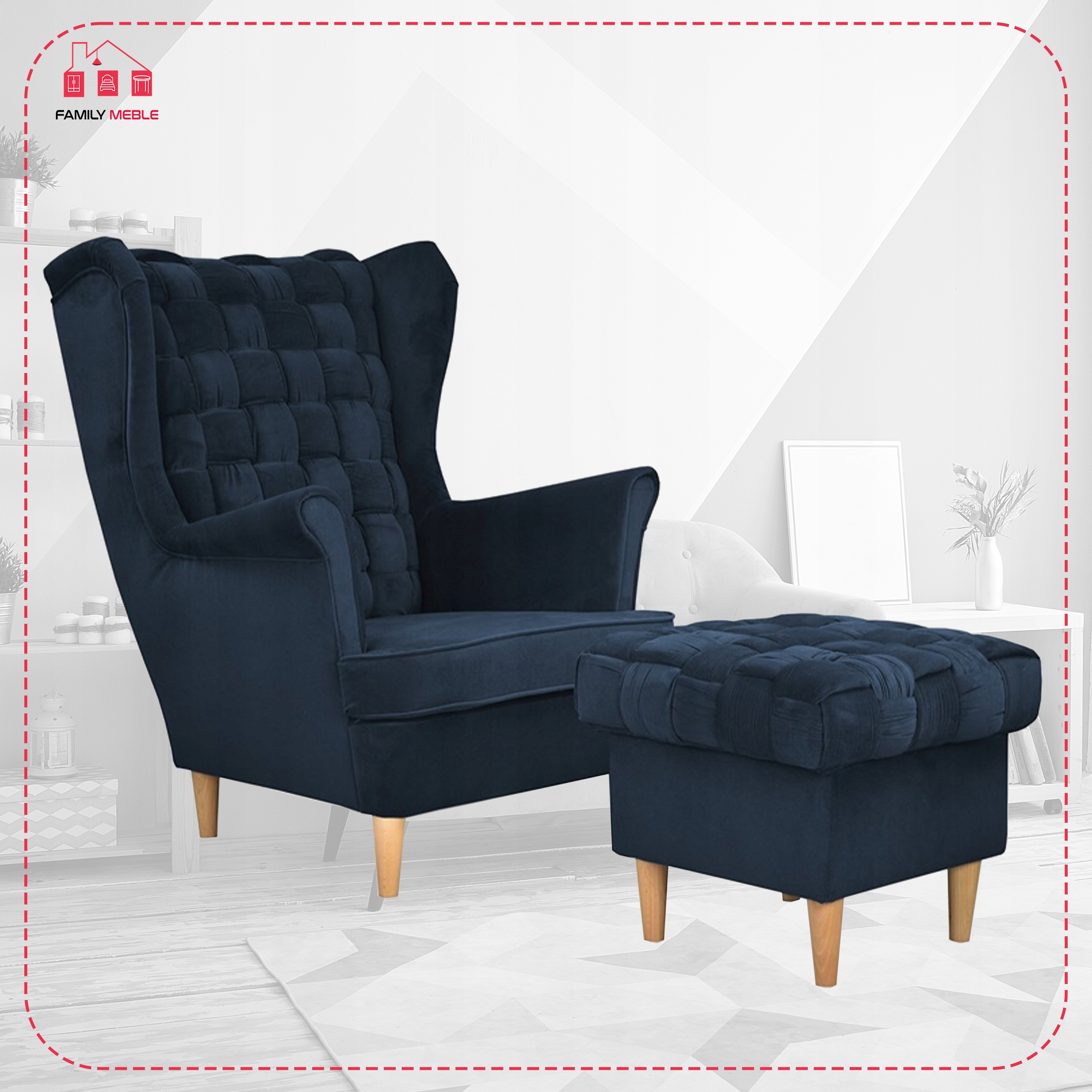 Fotel uszak Carol z podnóżkiem skandynawski Family Meble granatowy