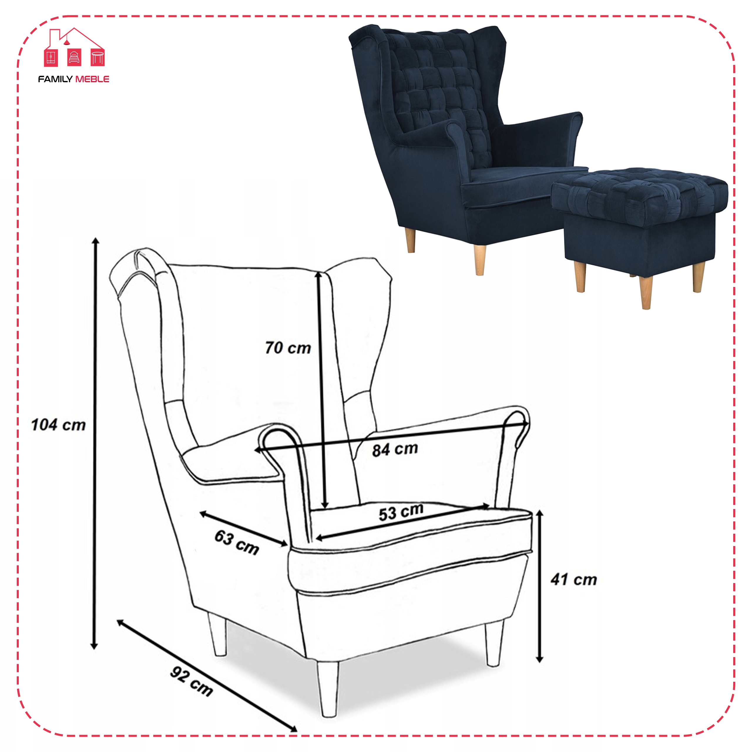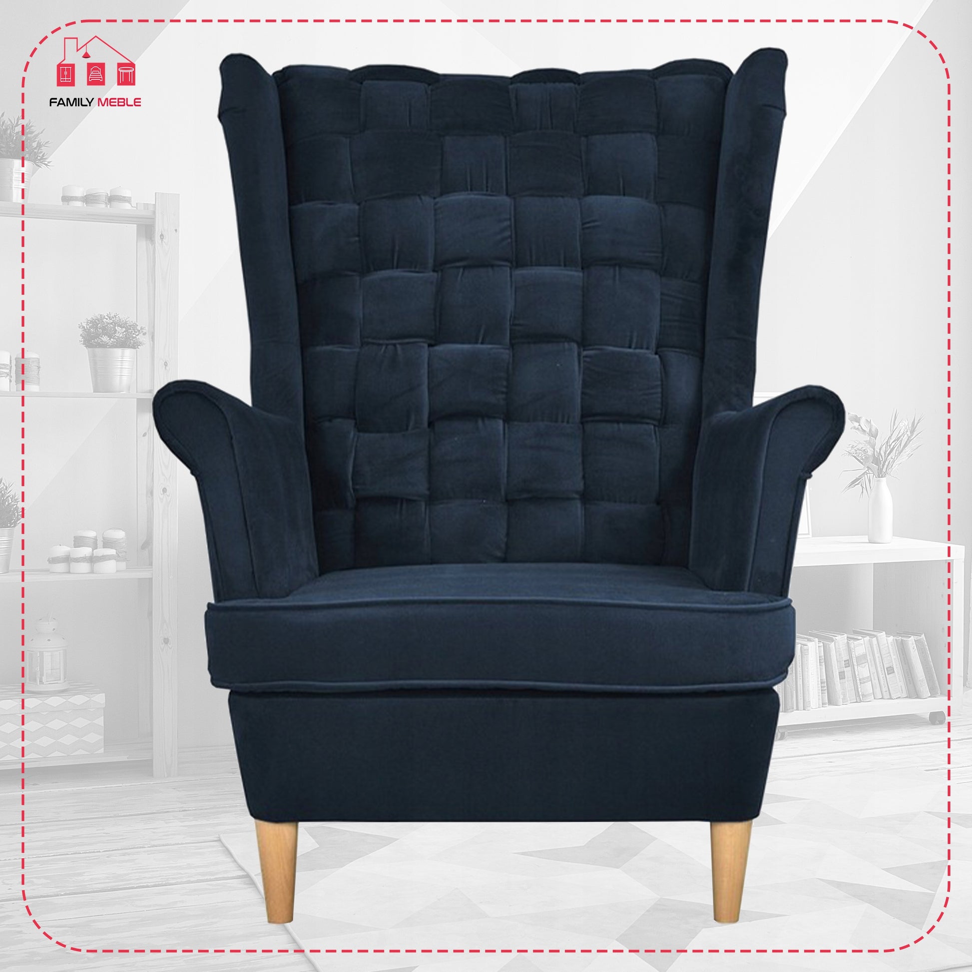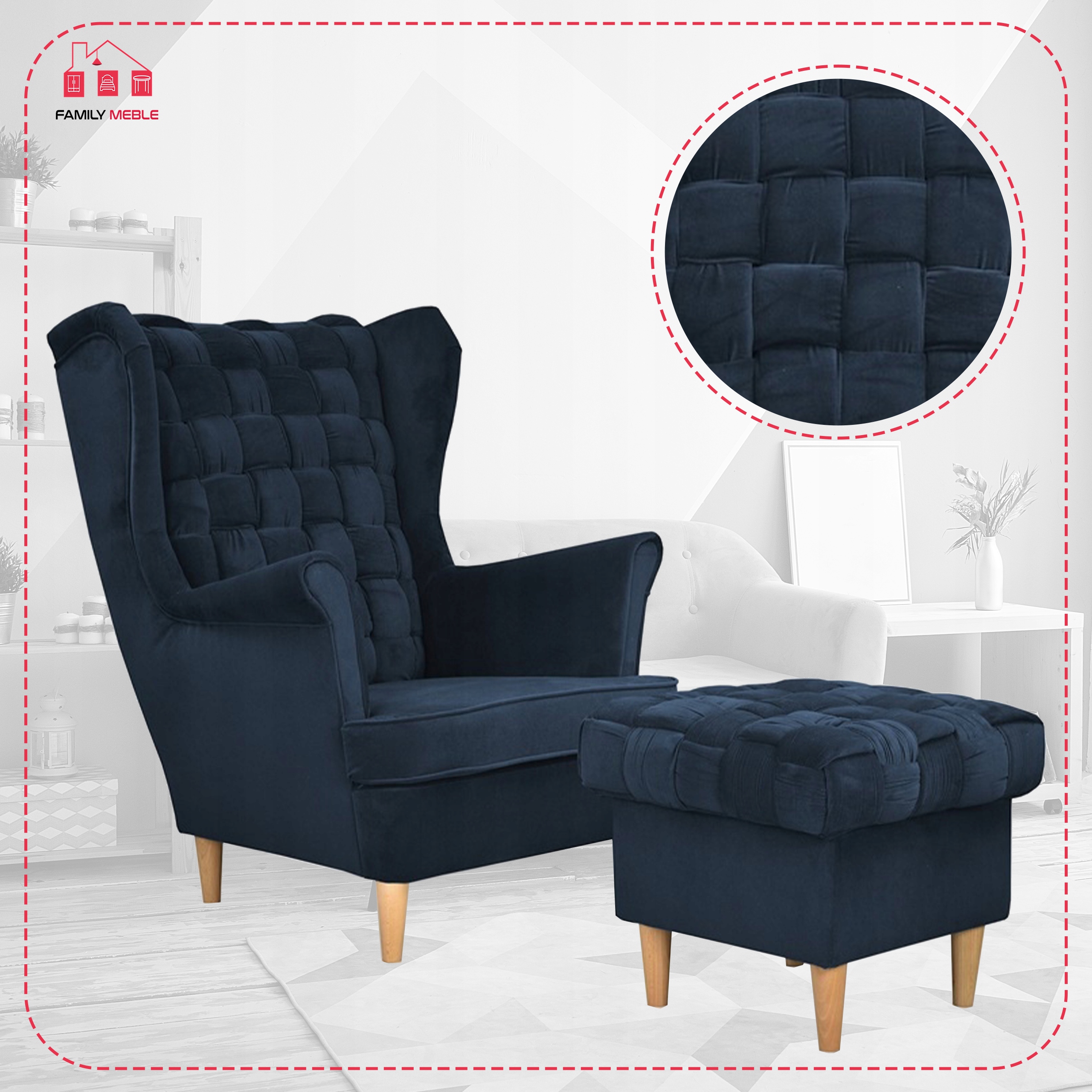 Fotel uszak Carol z podnóżkiem skandynawski Family Meble granatowy