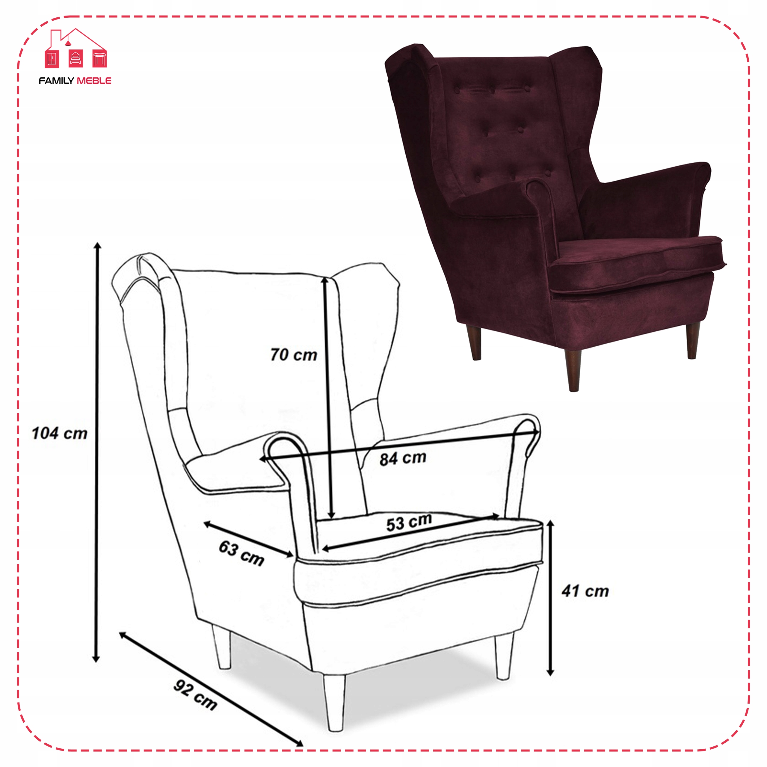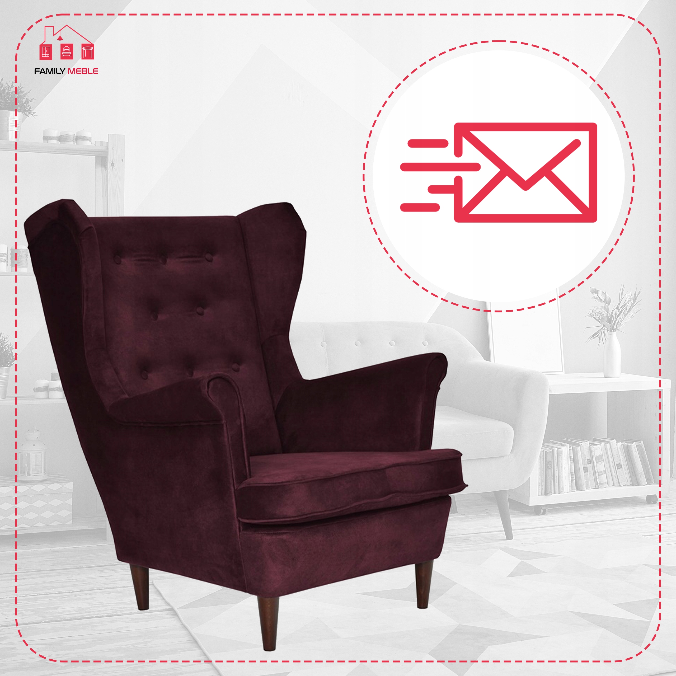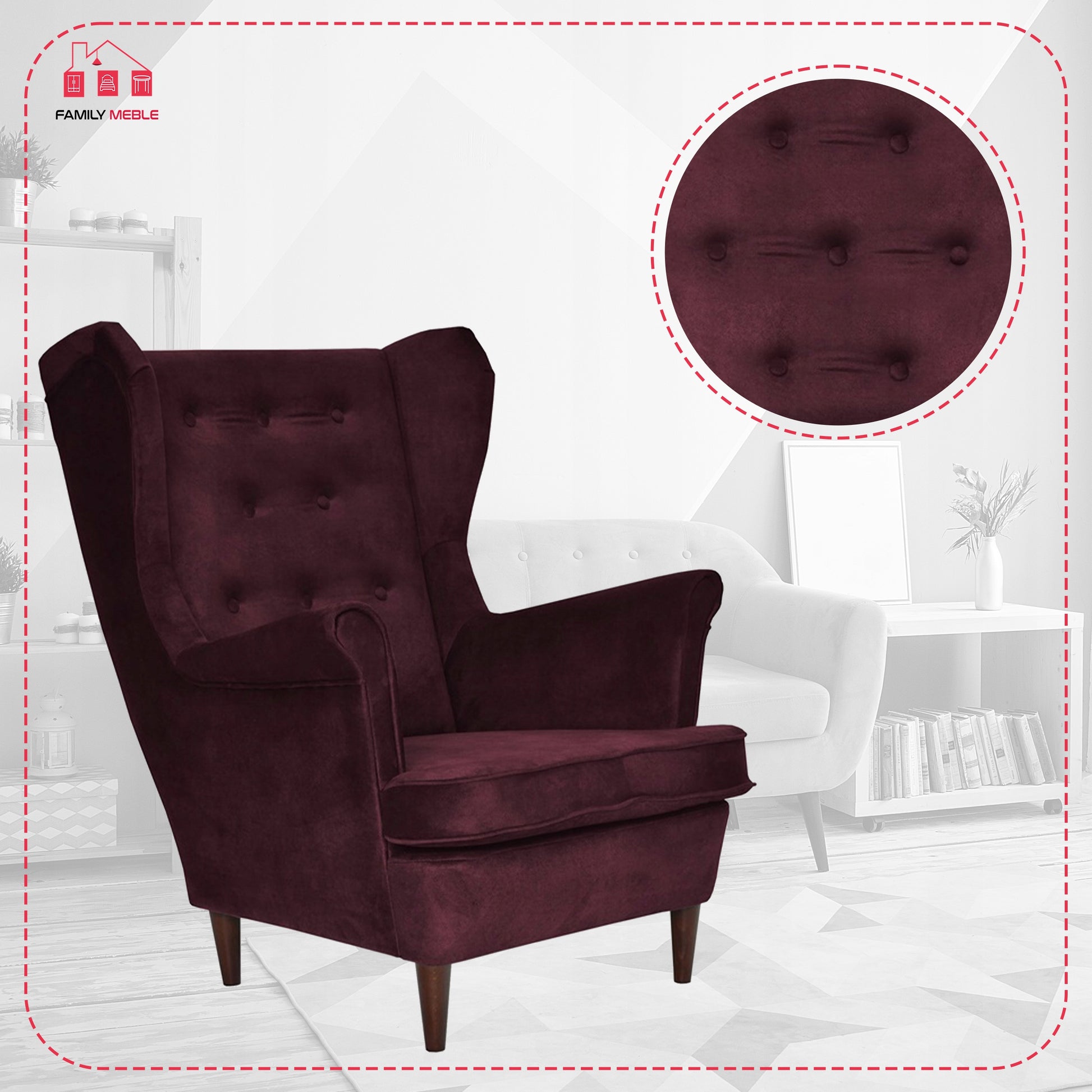 Fotel uszak Diana skandynawski Family Meble burgund pikowany water proof