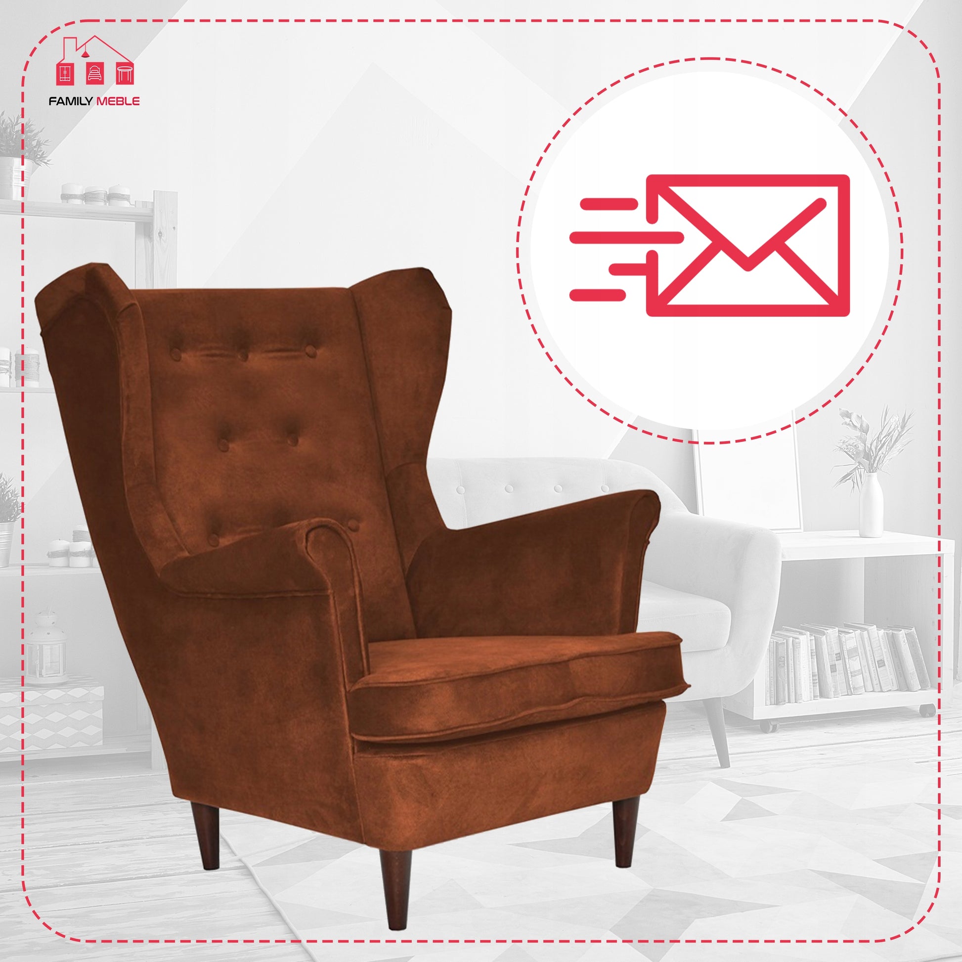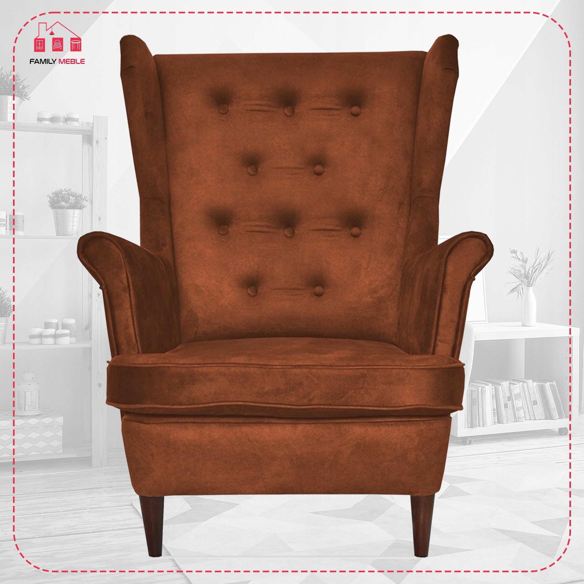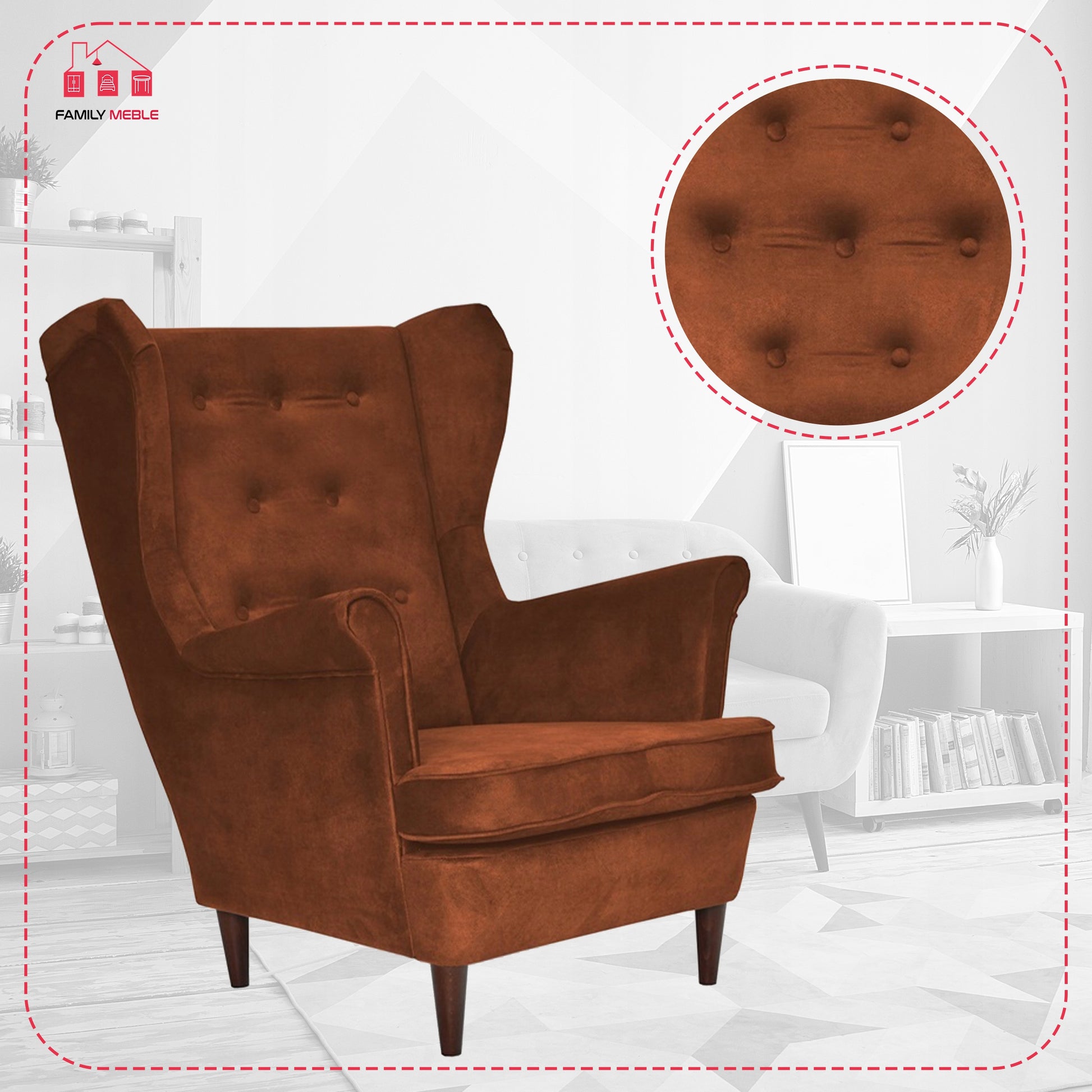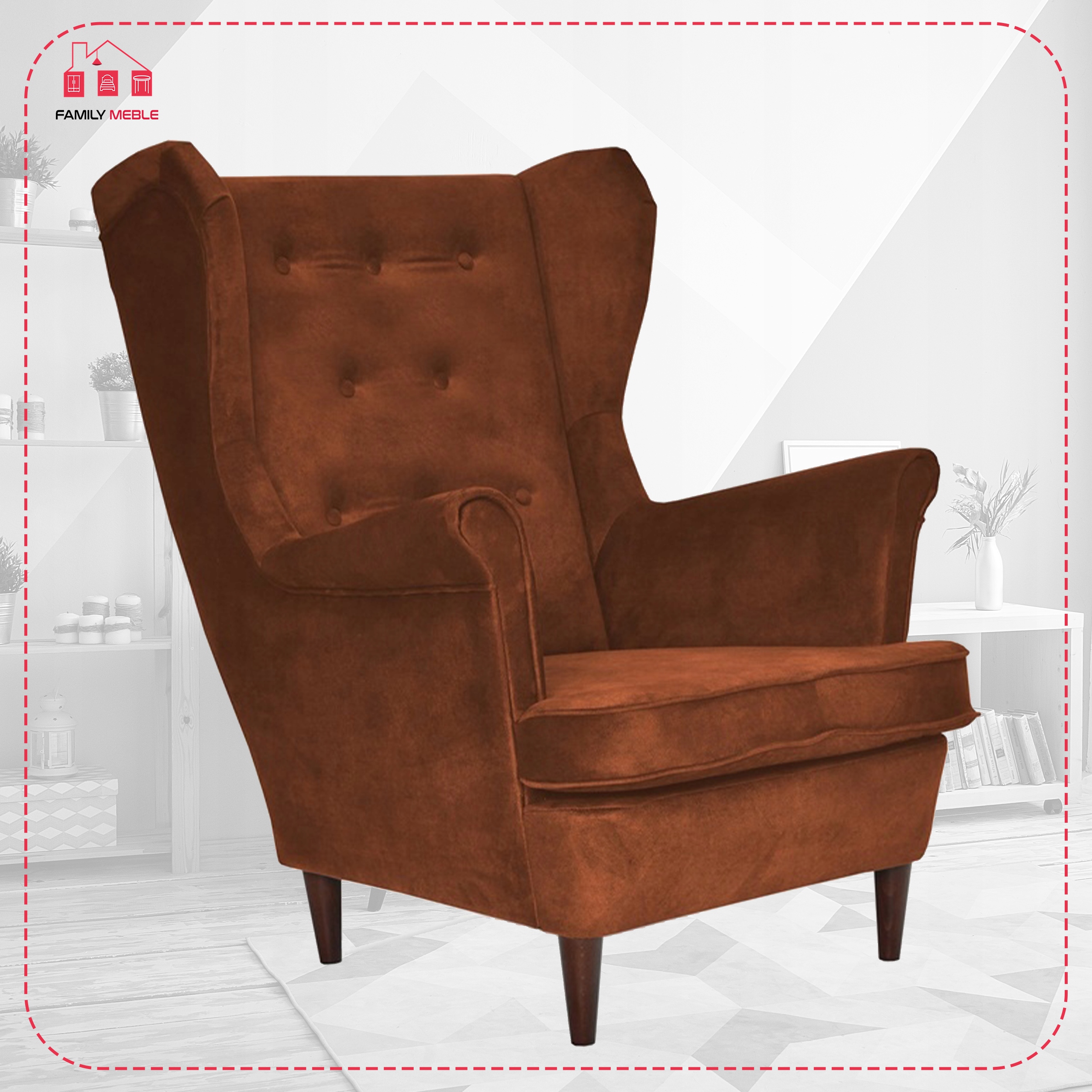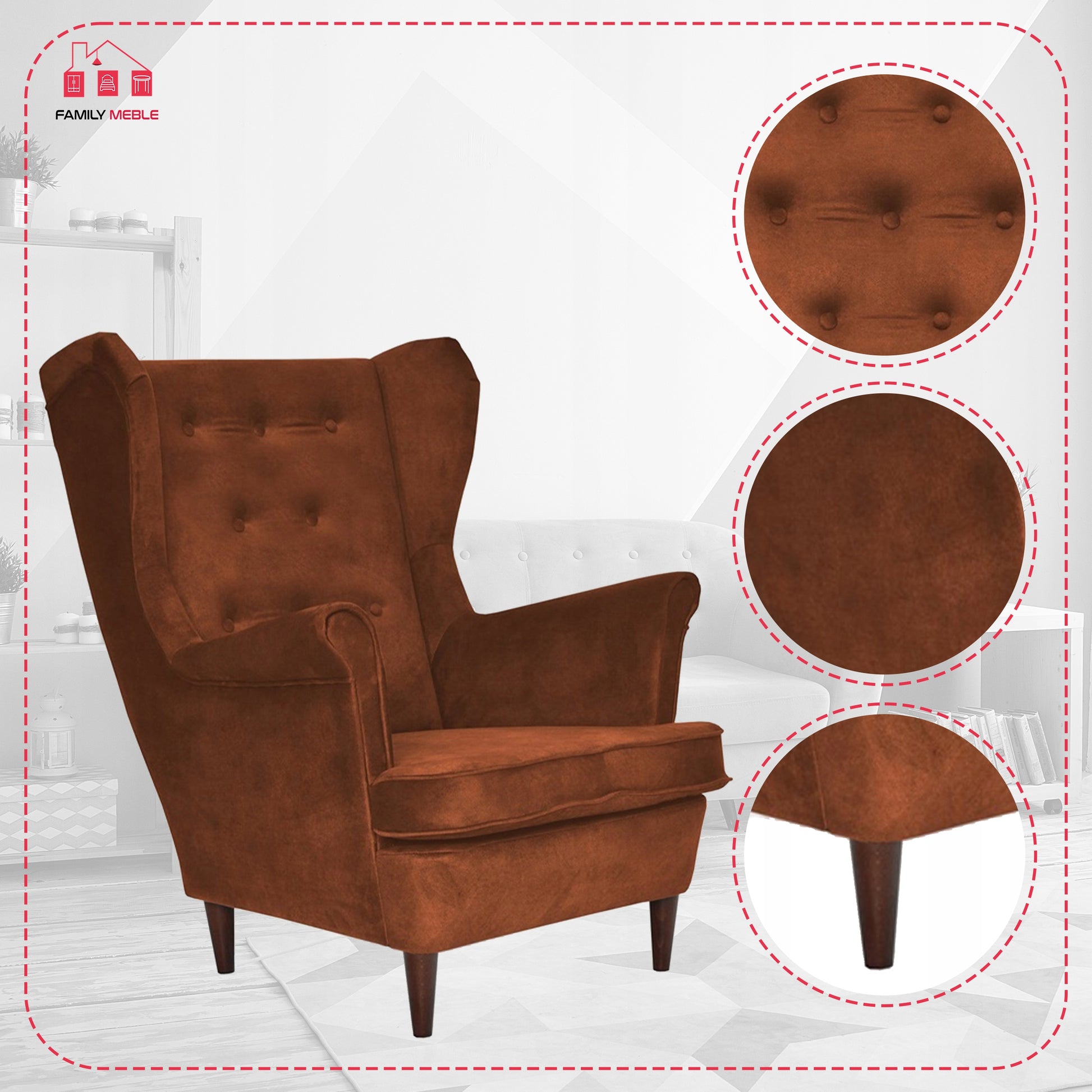Fotel uszak Diana skandynawski Family Meble miedziany miły w dotyku rudy