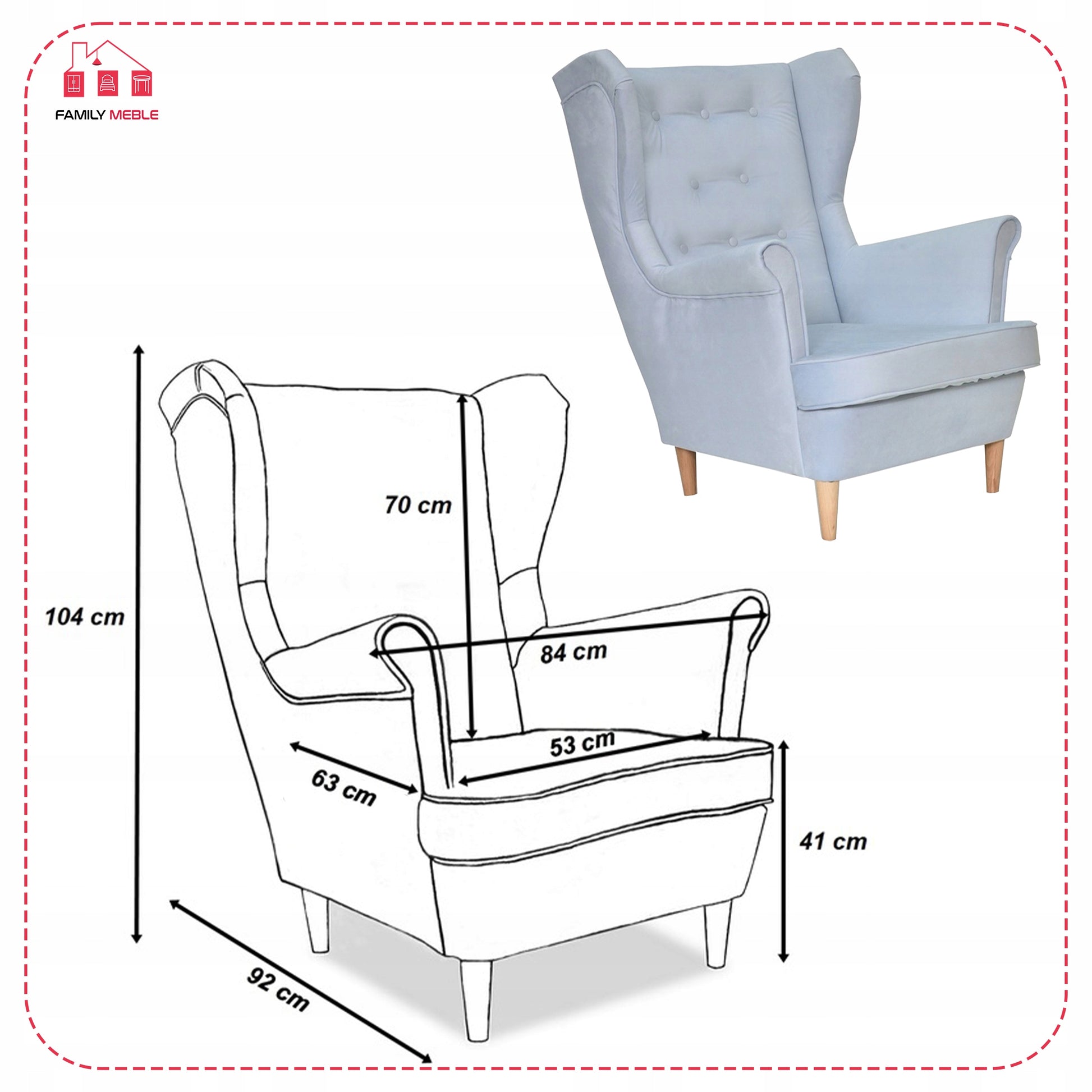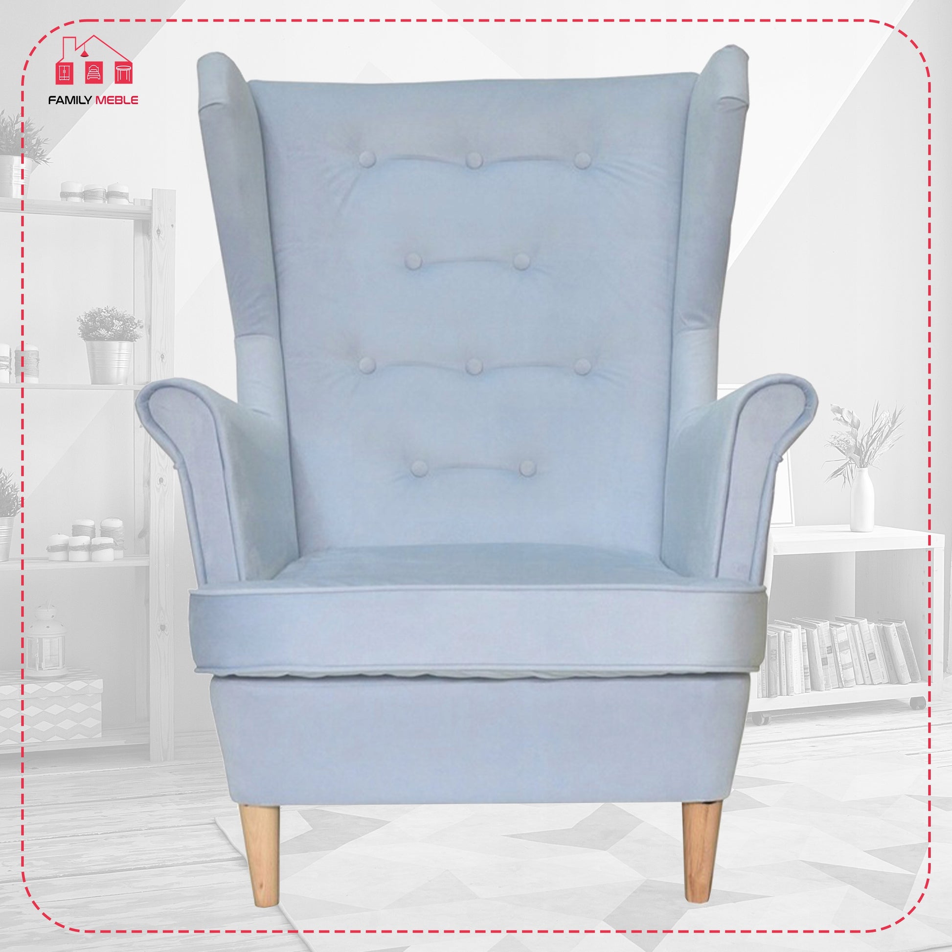 Fotel uszak Diana skandynawski Family Meble niebieski baby shower