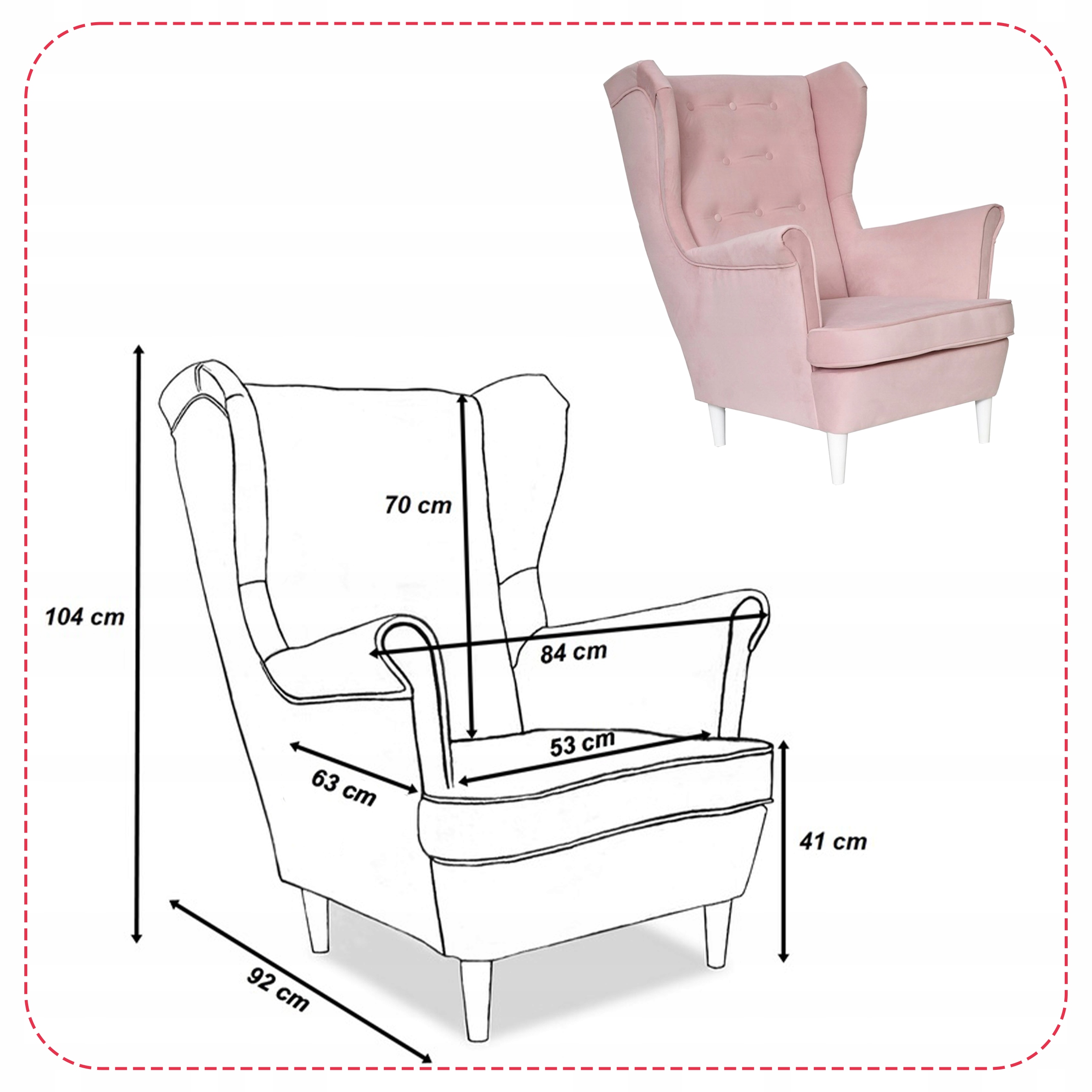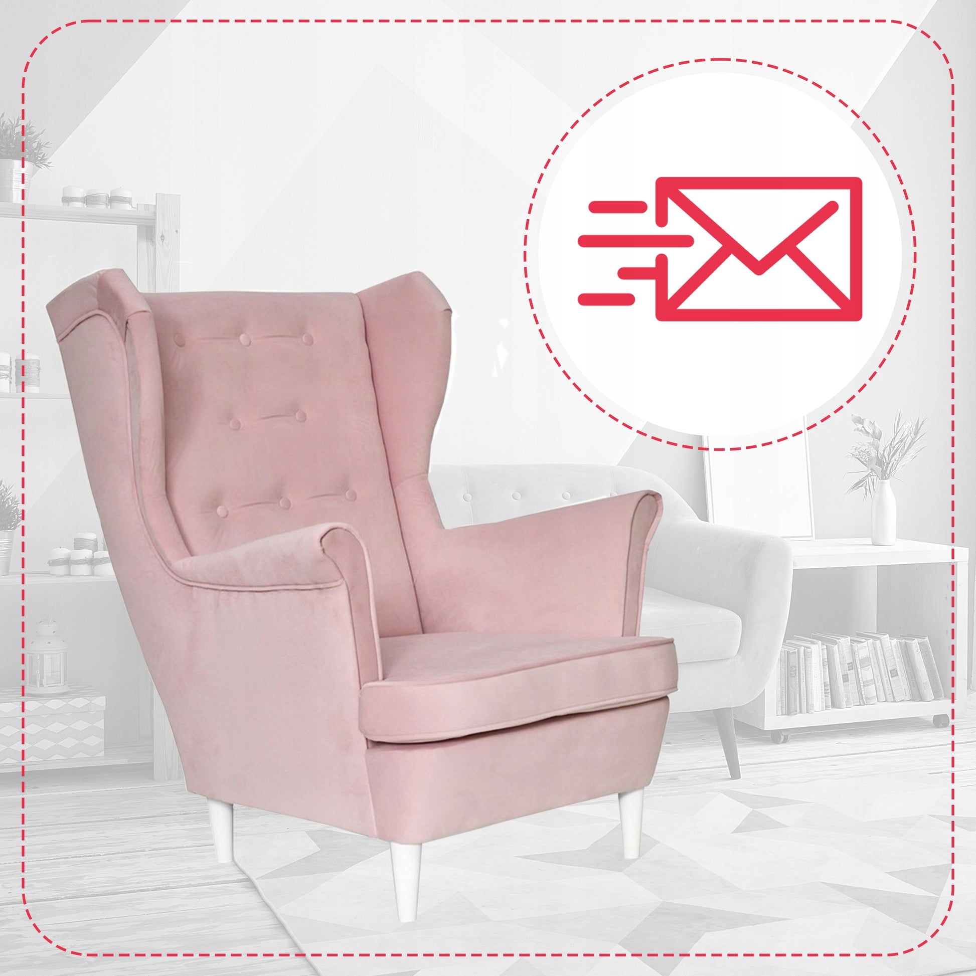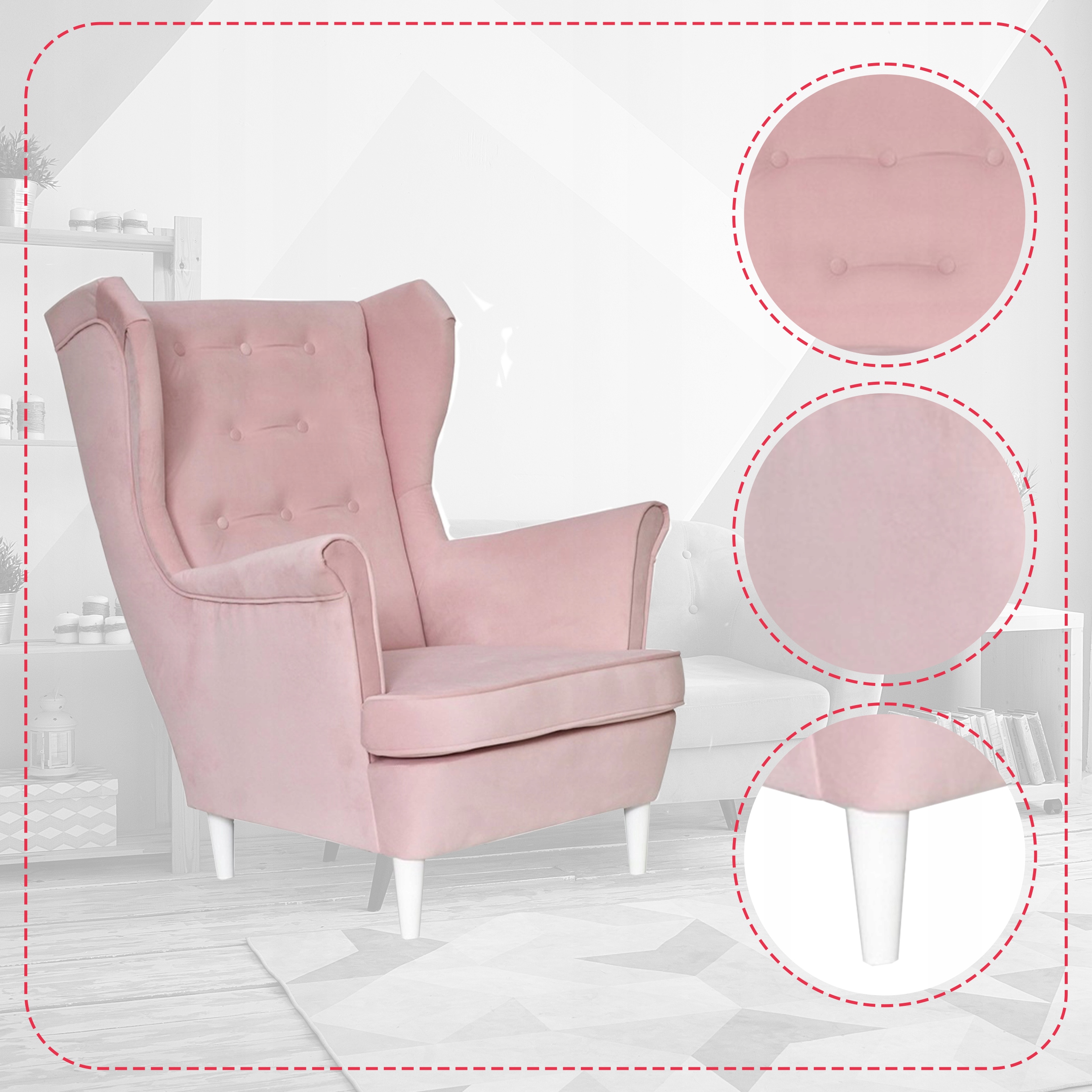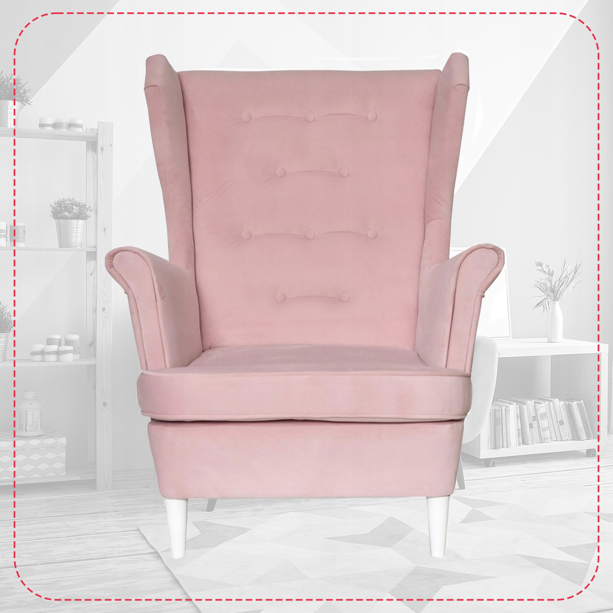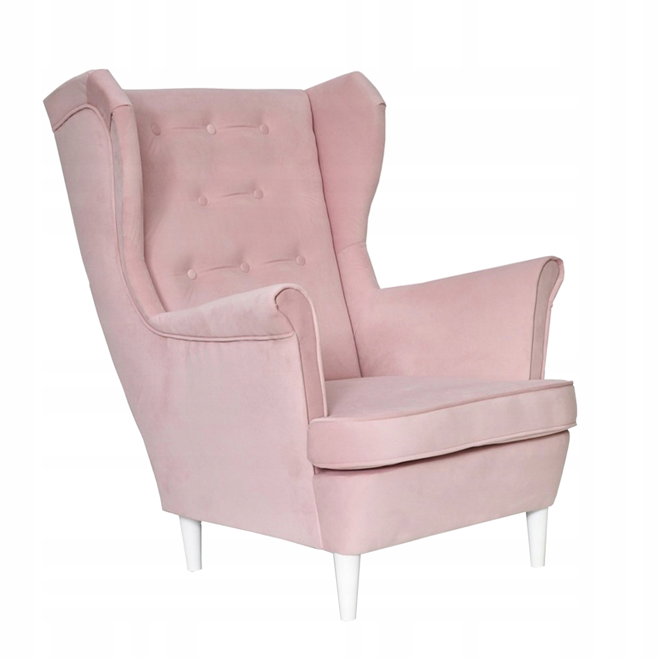 Fotel uszak Diana skandynawski Family Meble pudrowy róż pastelowy