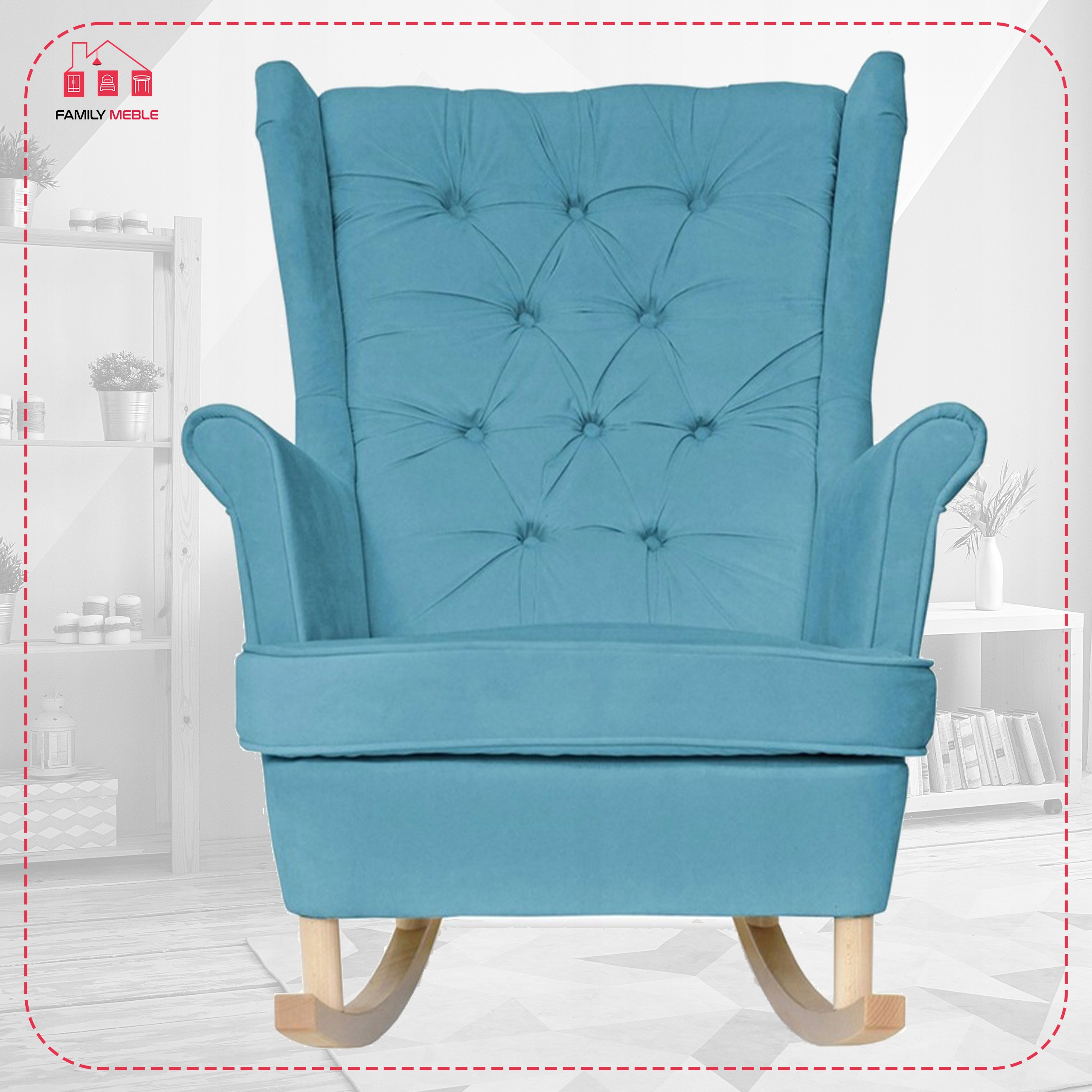 Fotel uszak Gaja bujany skandynawski Family Meble niebieski na płozach błękit