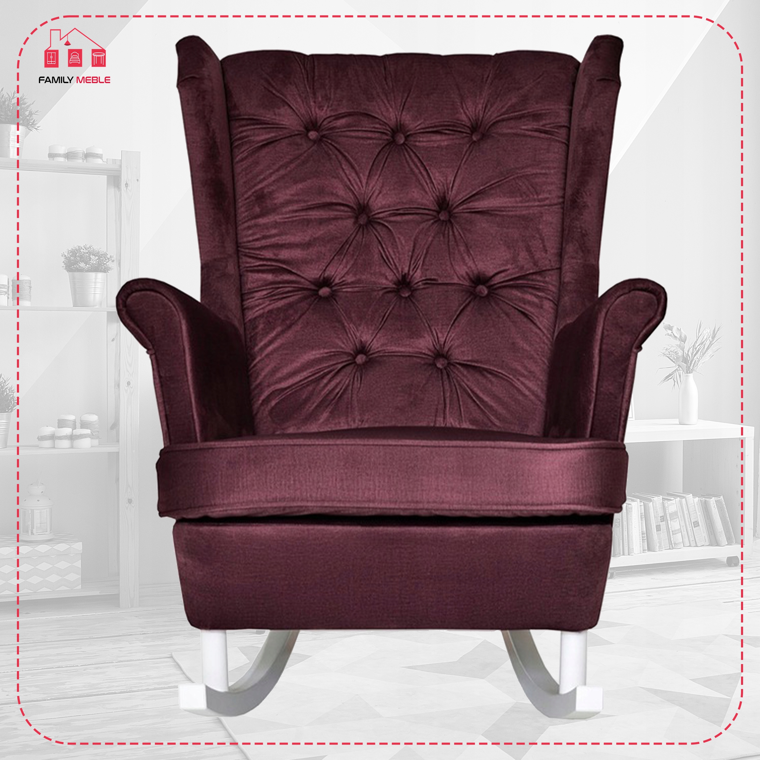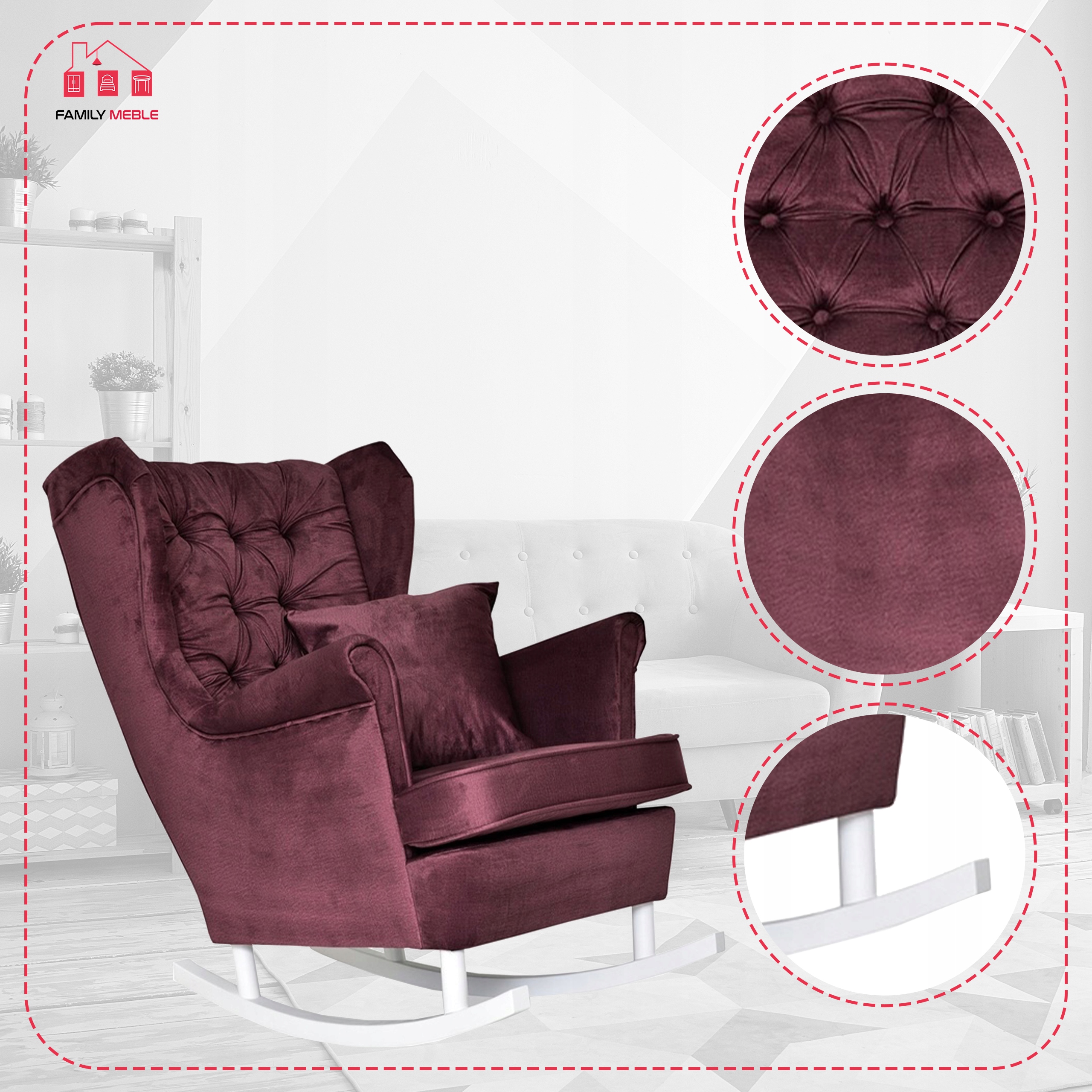 Fotel uszak Gaja bujany skandynawski Family Meble purpurowy rubinowy