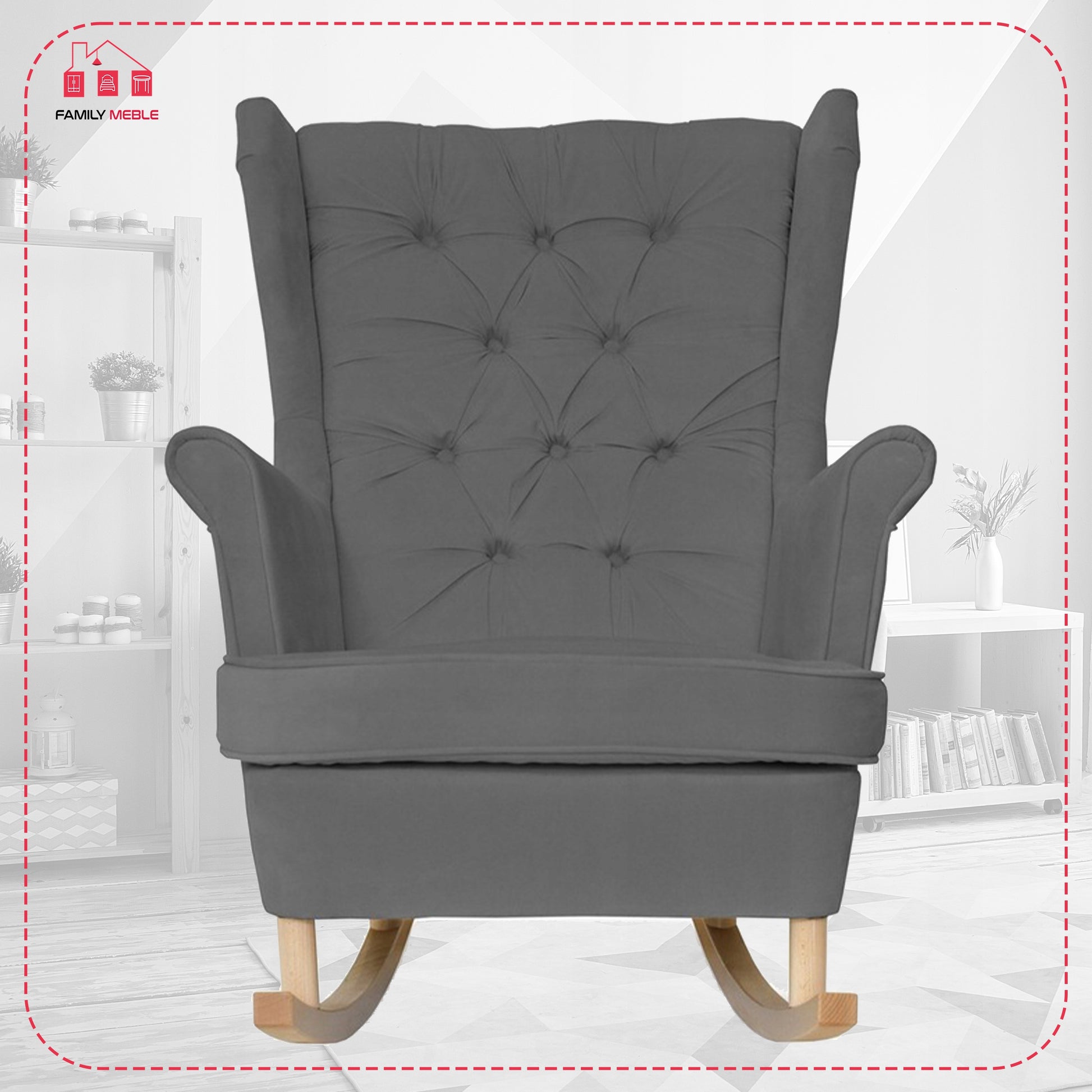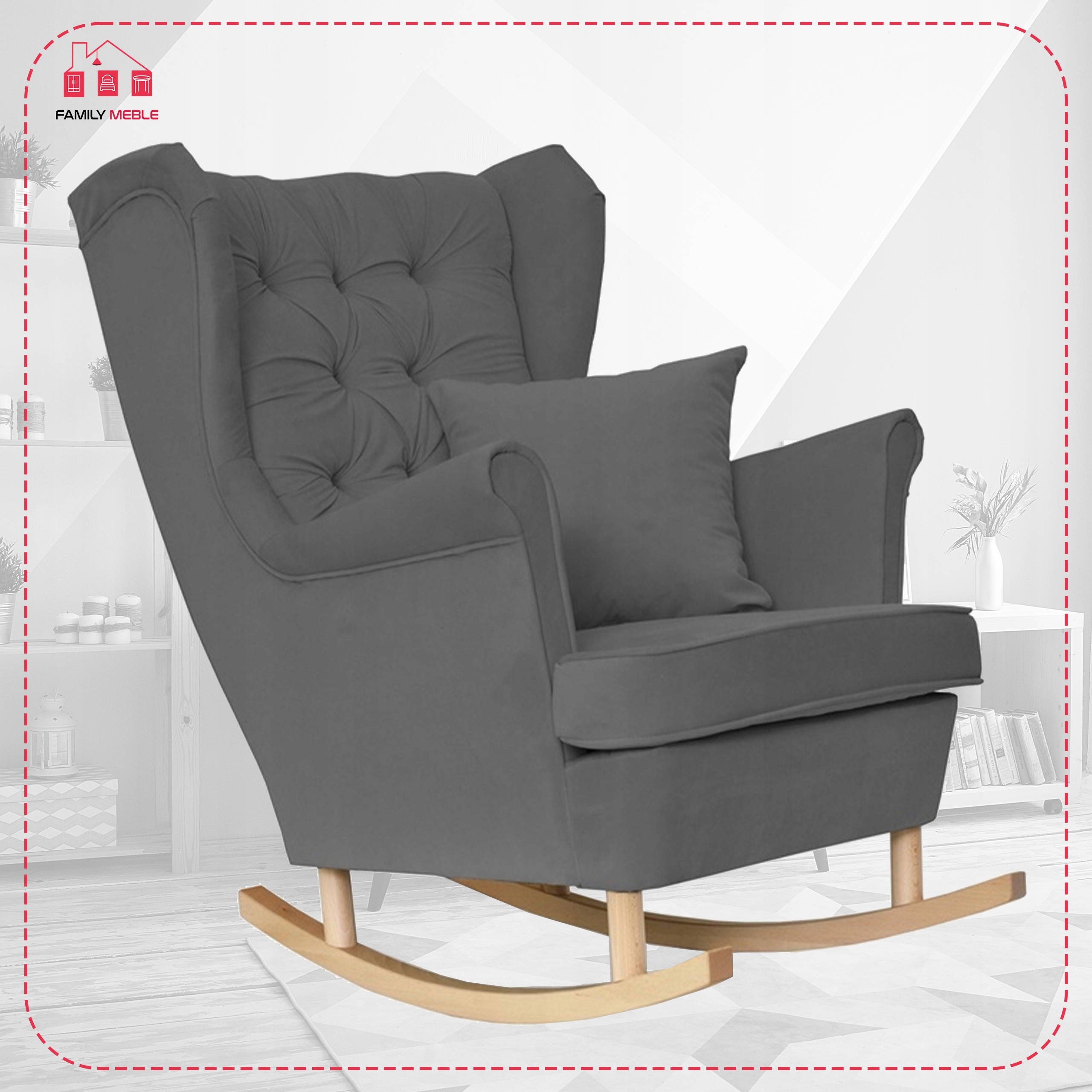 Fotel uszak Gaja bujany skandynawski Family Meble szary welur wygodny antracyt