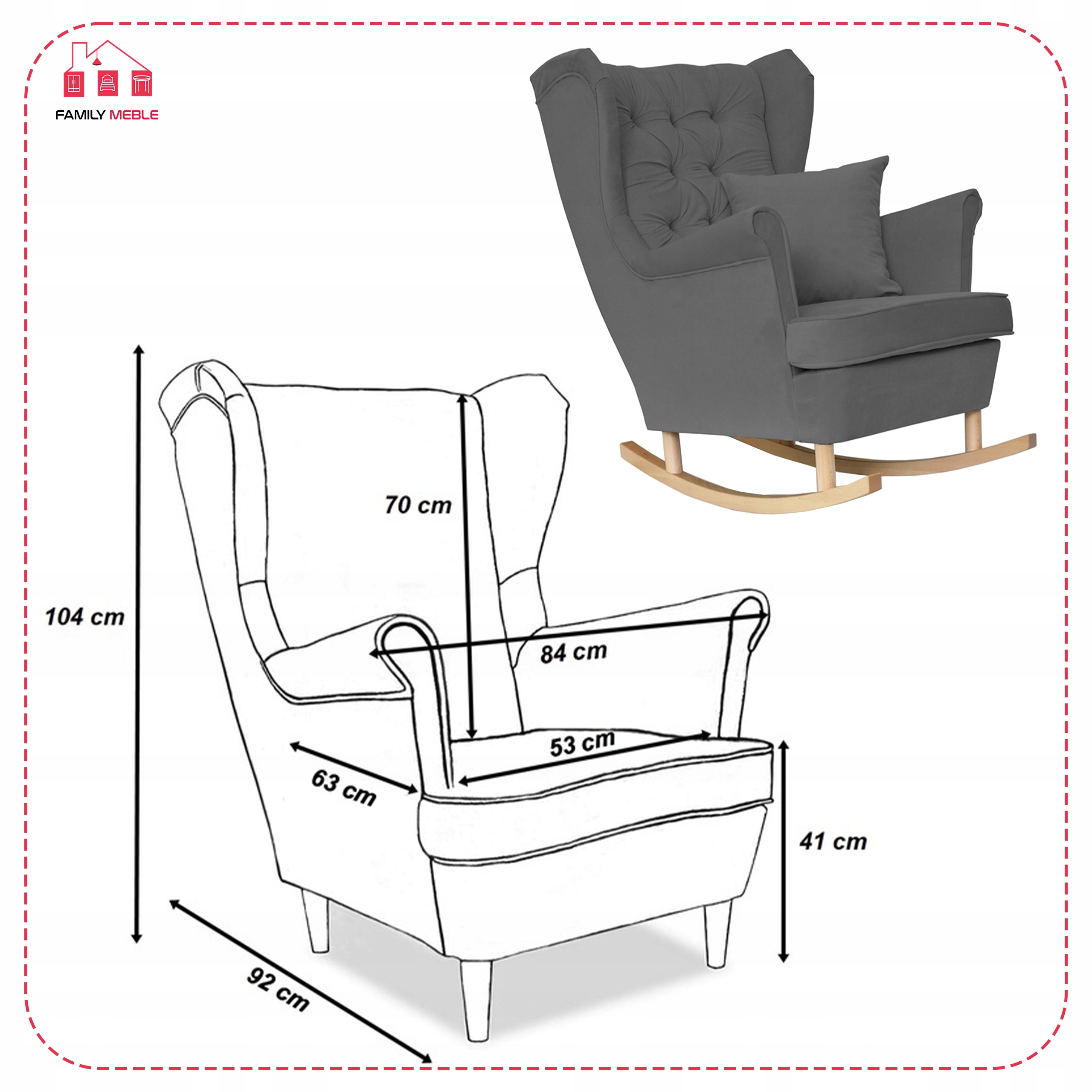 - wysokość siedziska: 41 cm