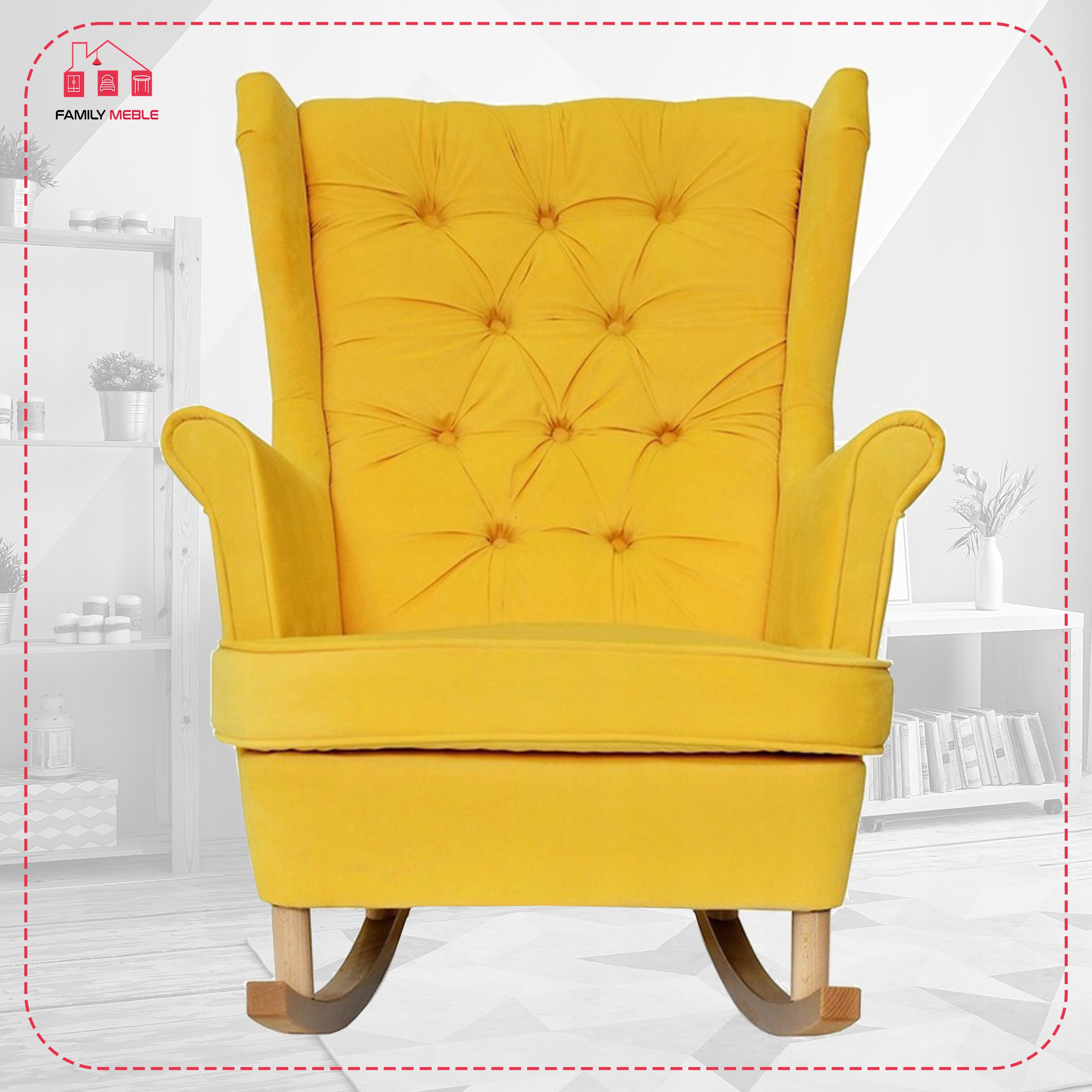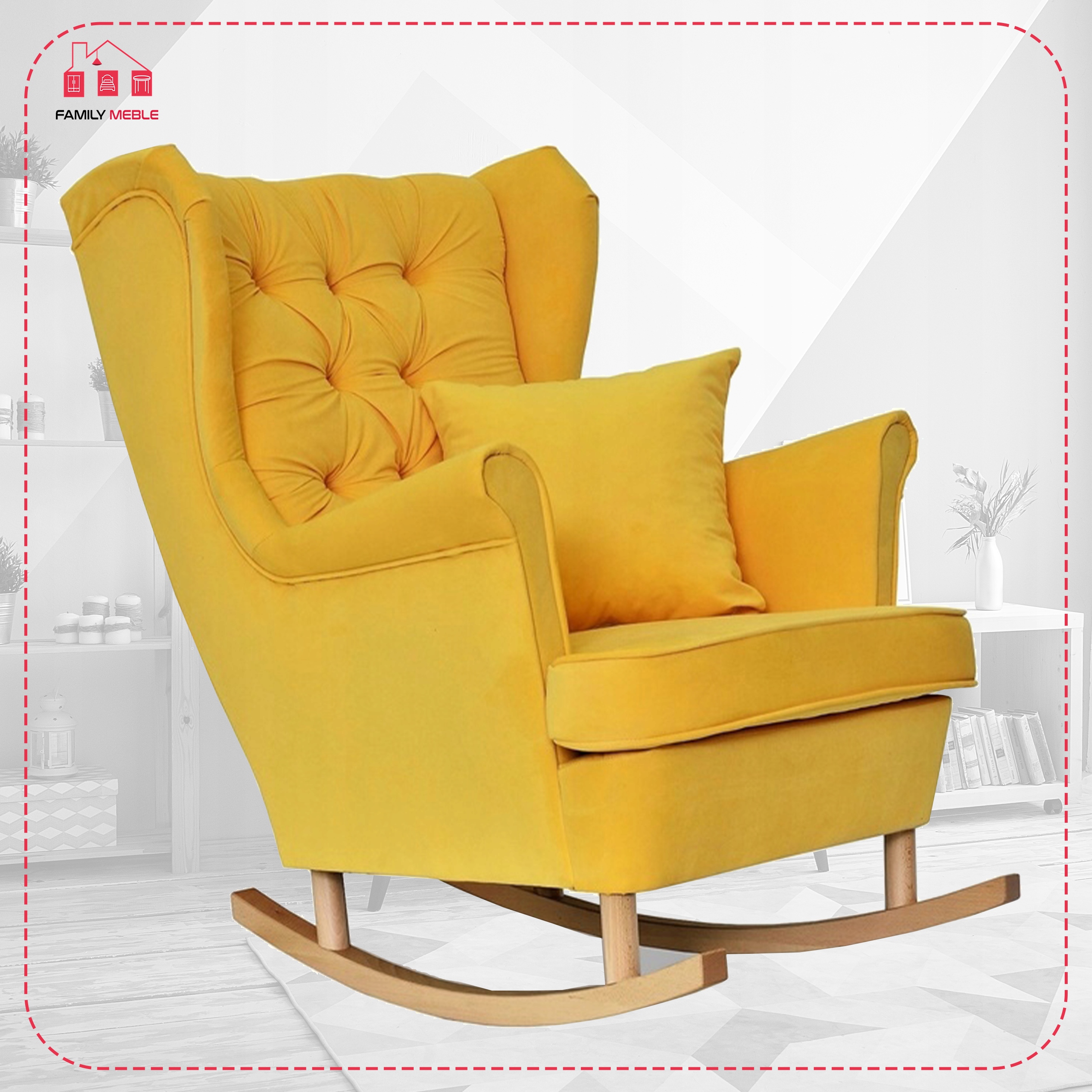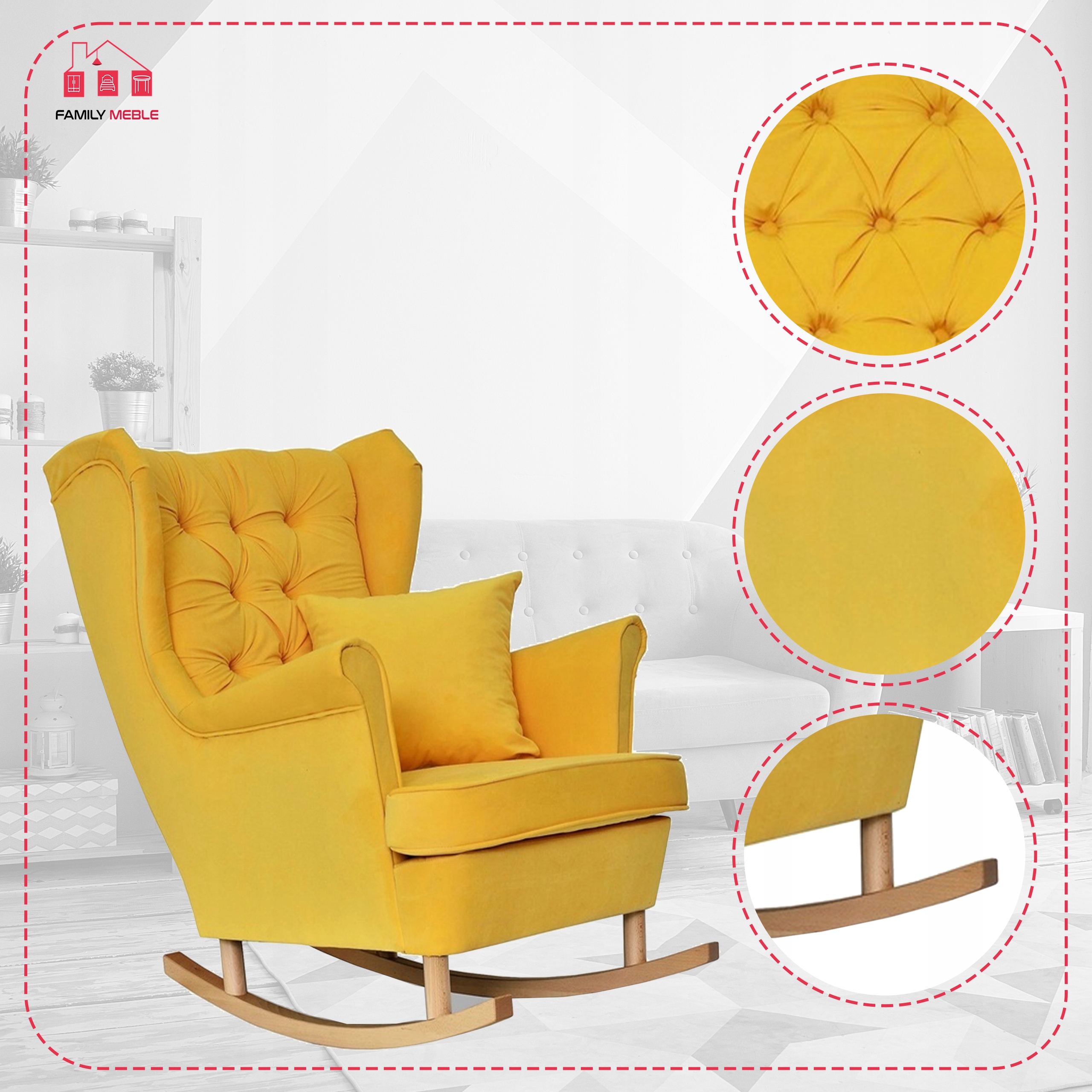 Fotel uszak Gaja bujany skandynawski Family Meble żółty na biegunach