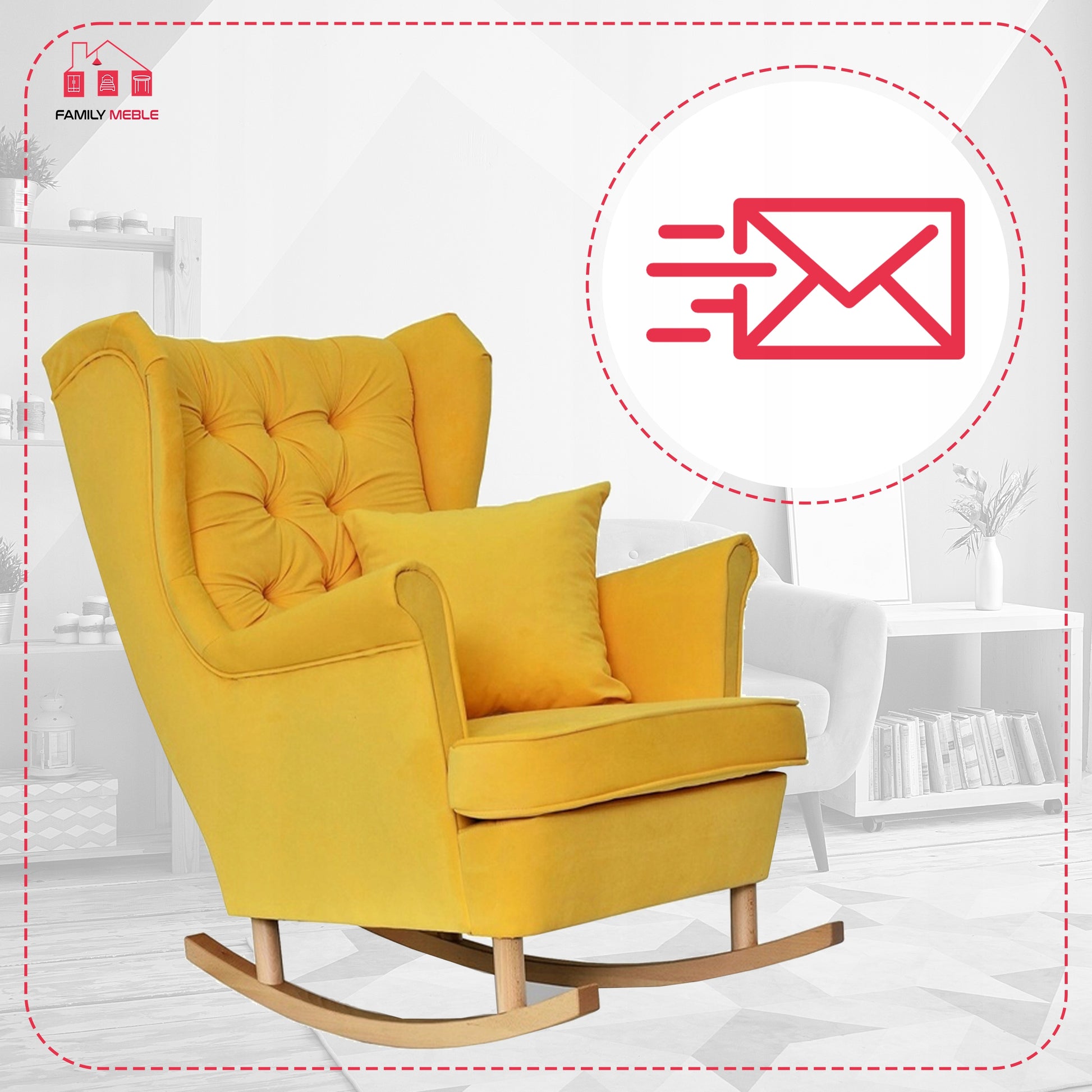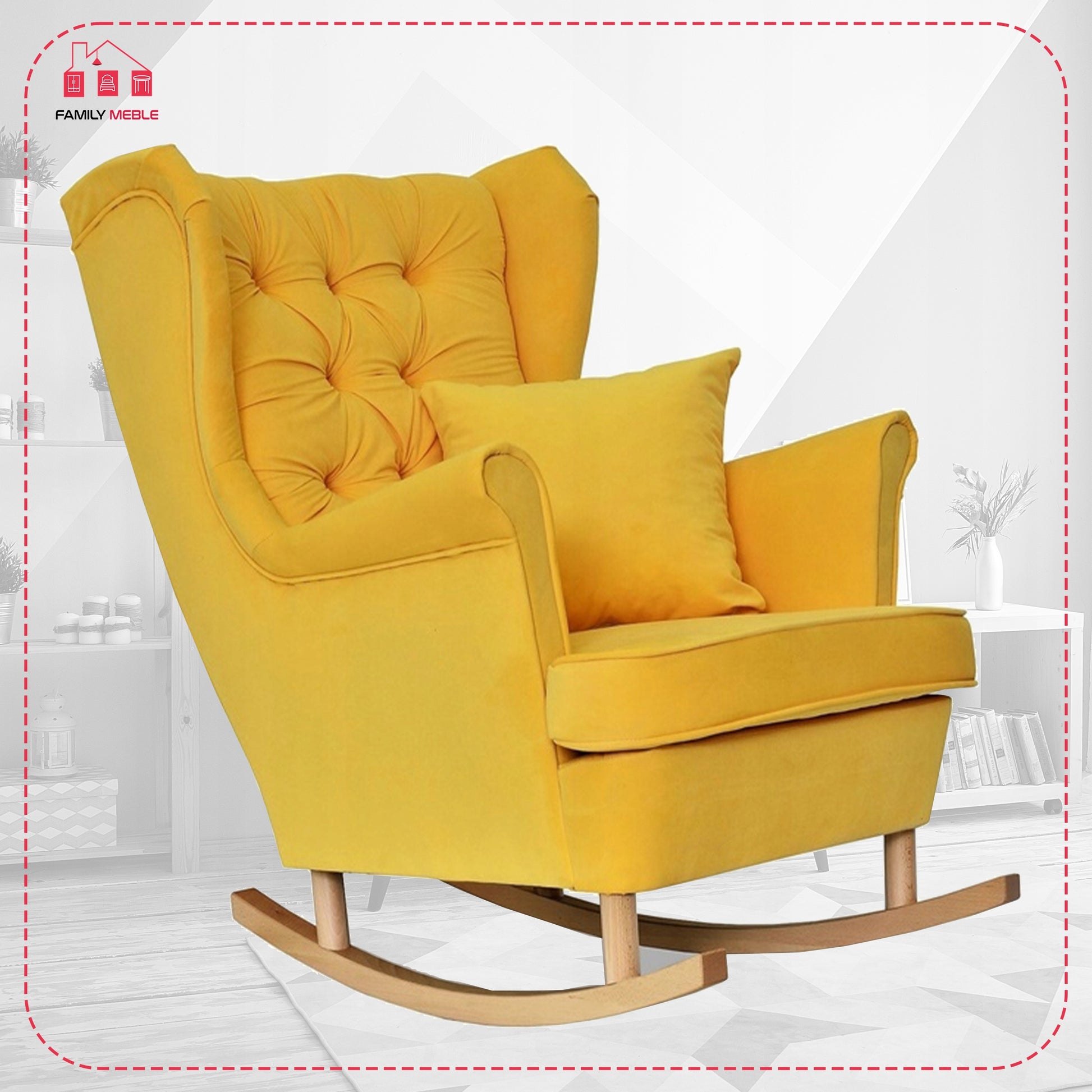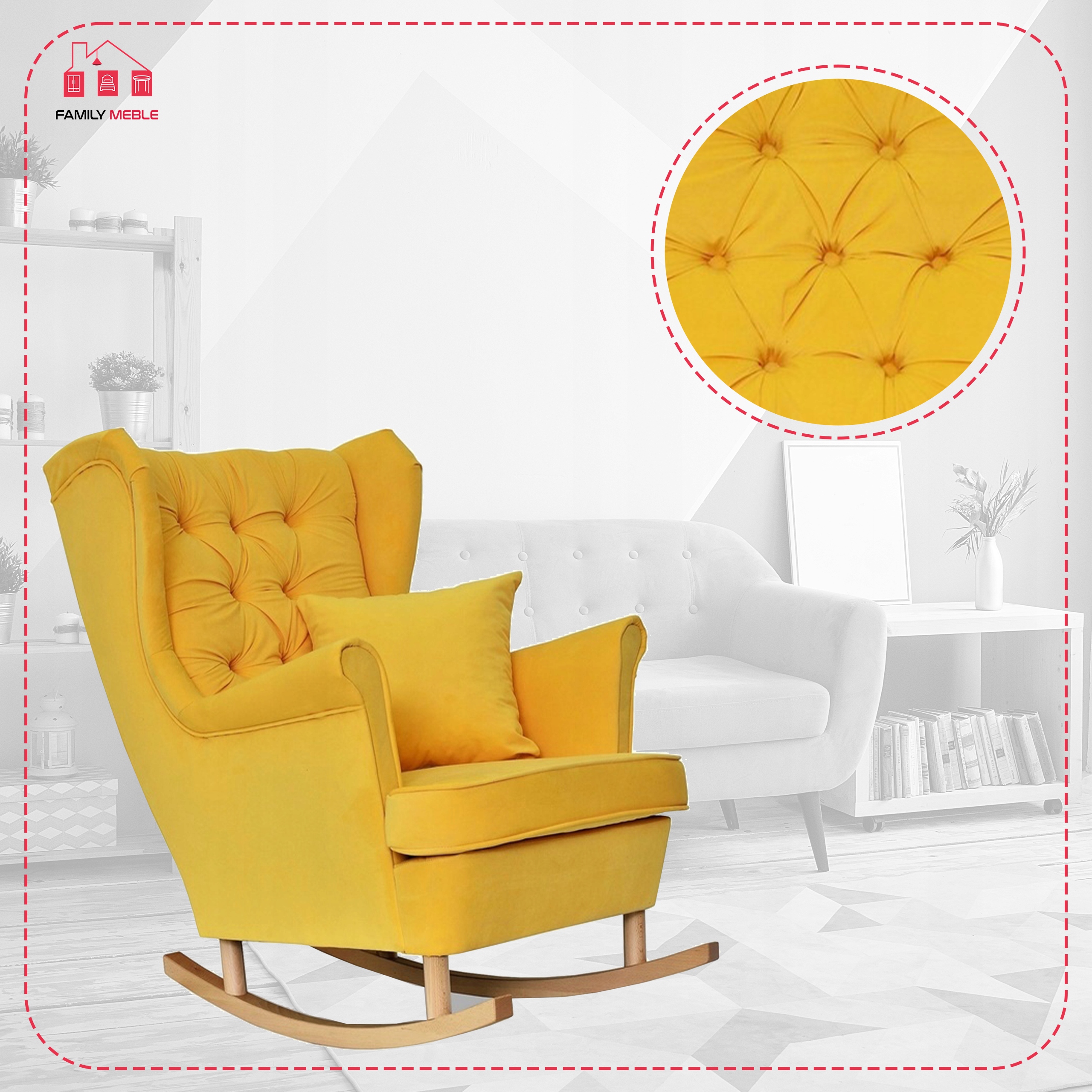 Fotel uszak Gaja bujany skandynawski Family Meble żółty na biegunach
