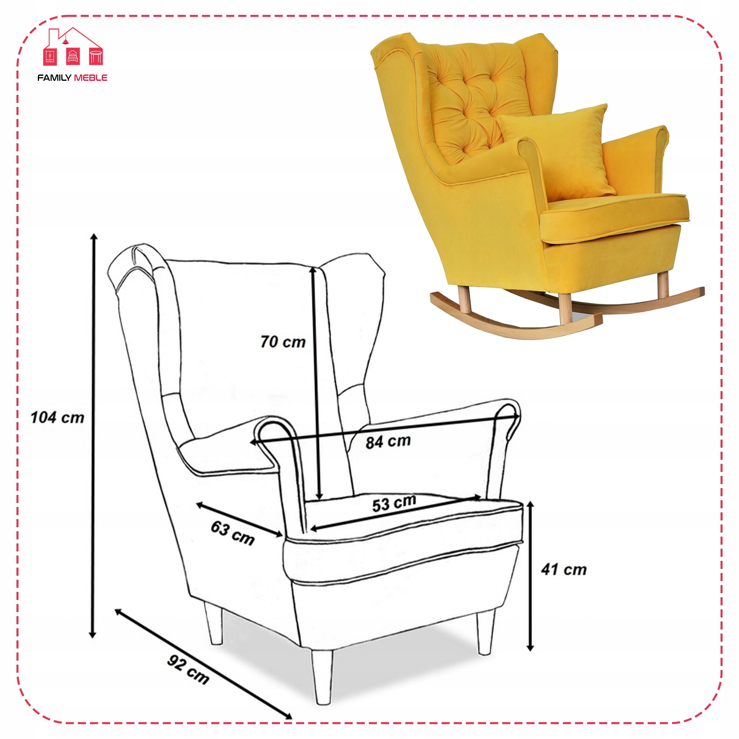 - wysokość siedziska: 41 cm