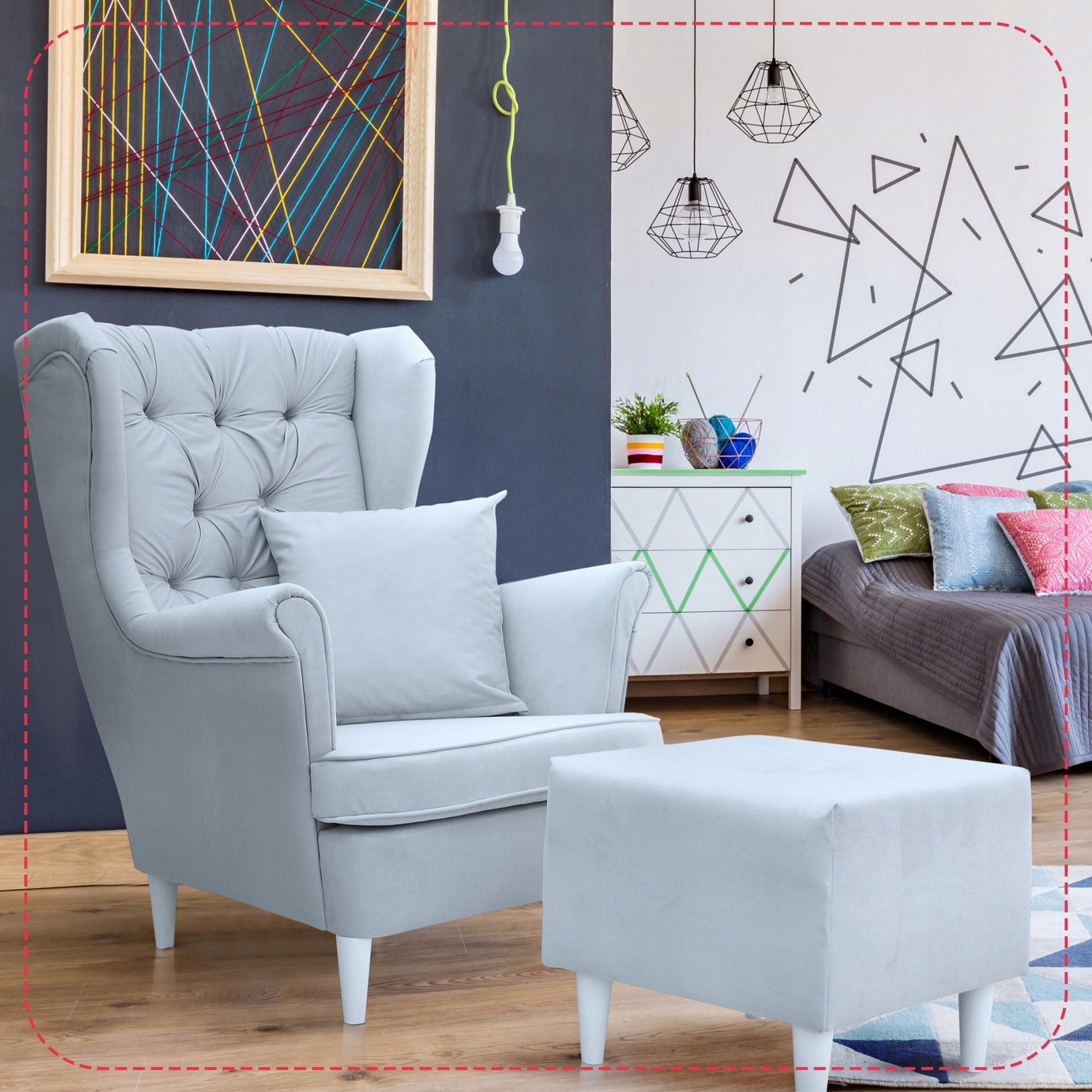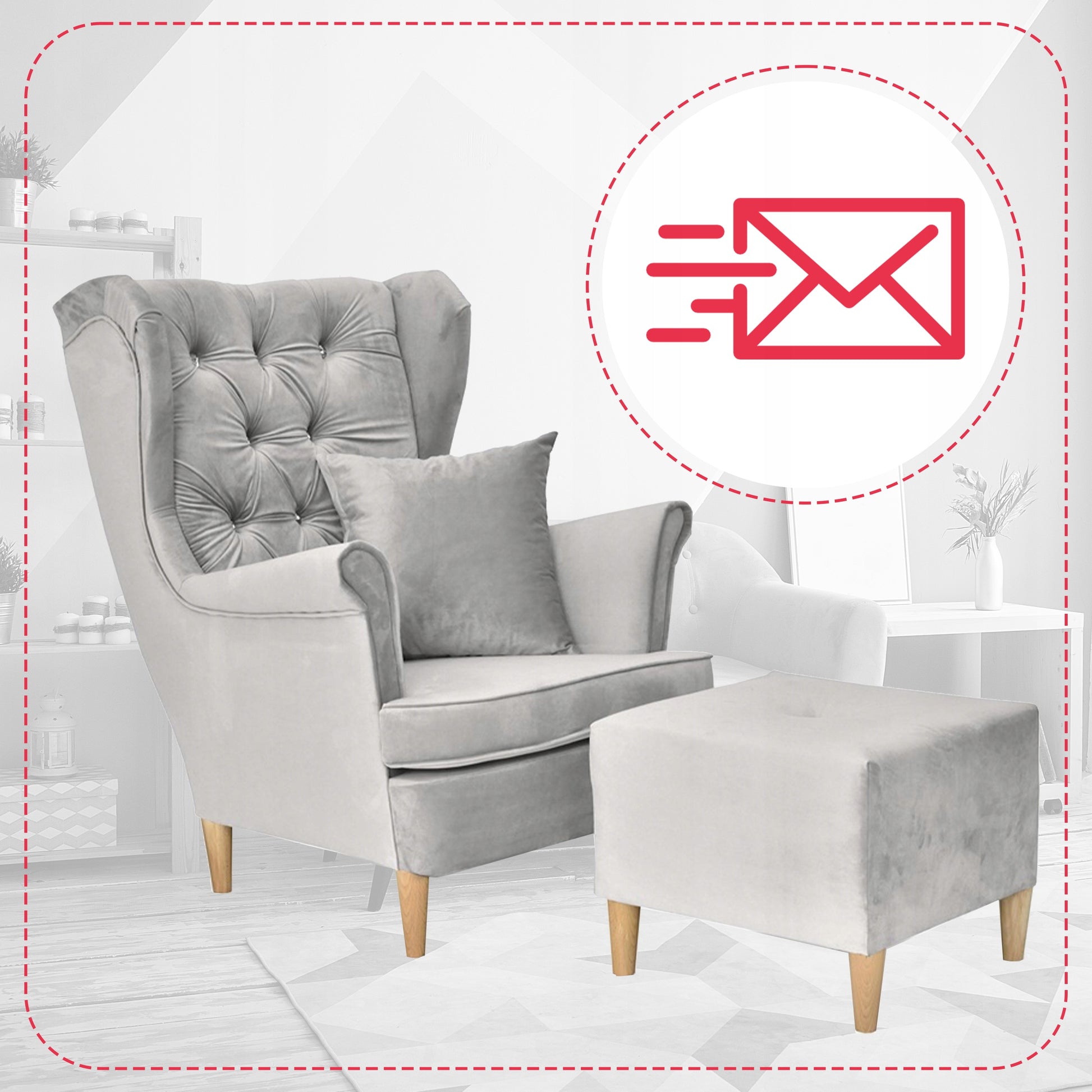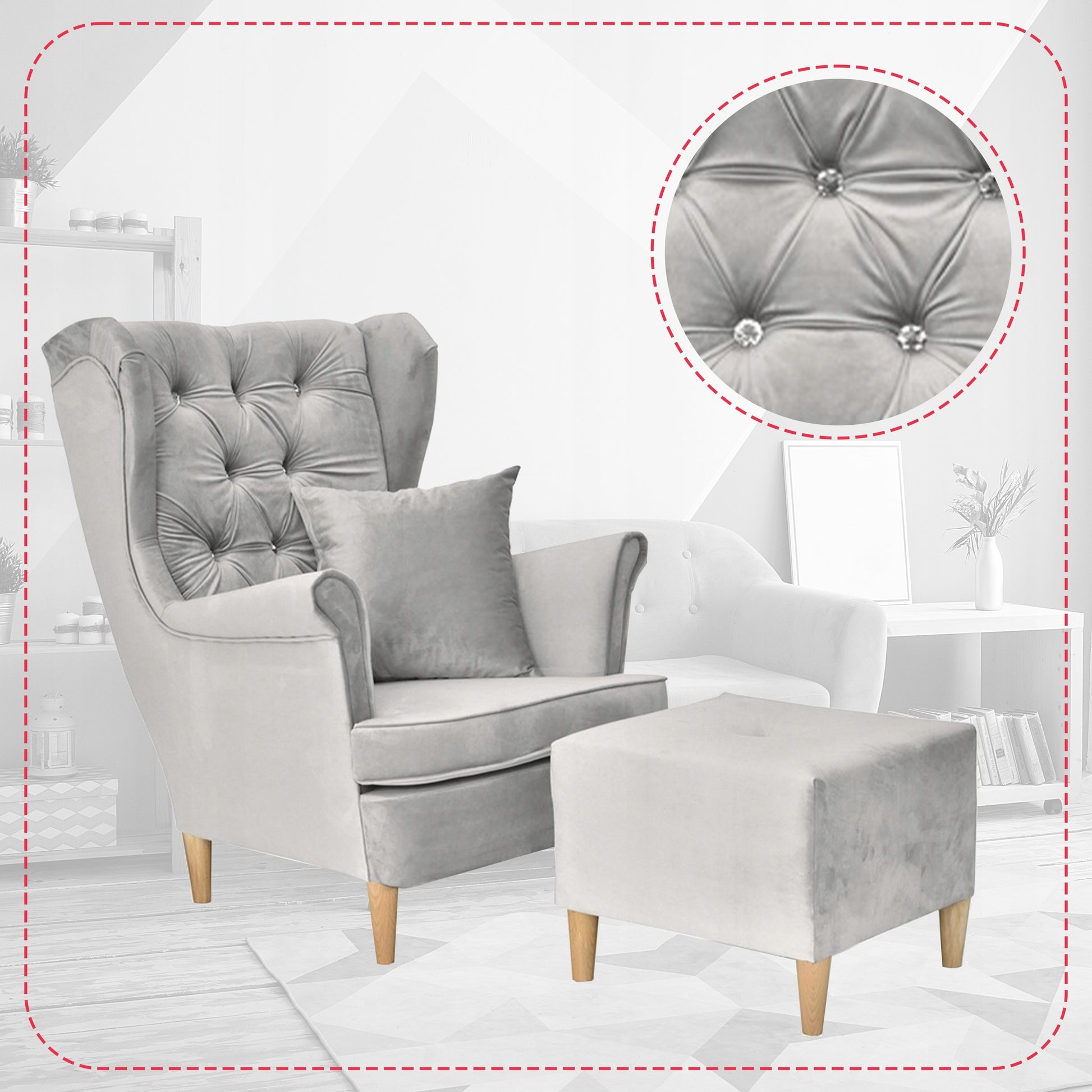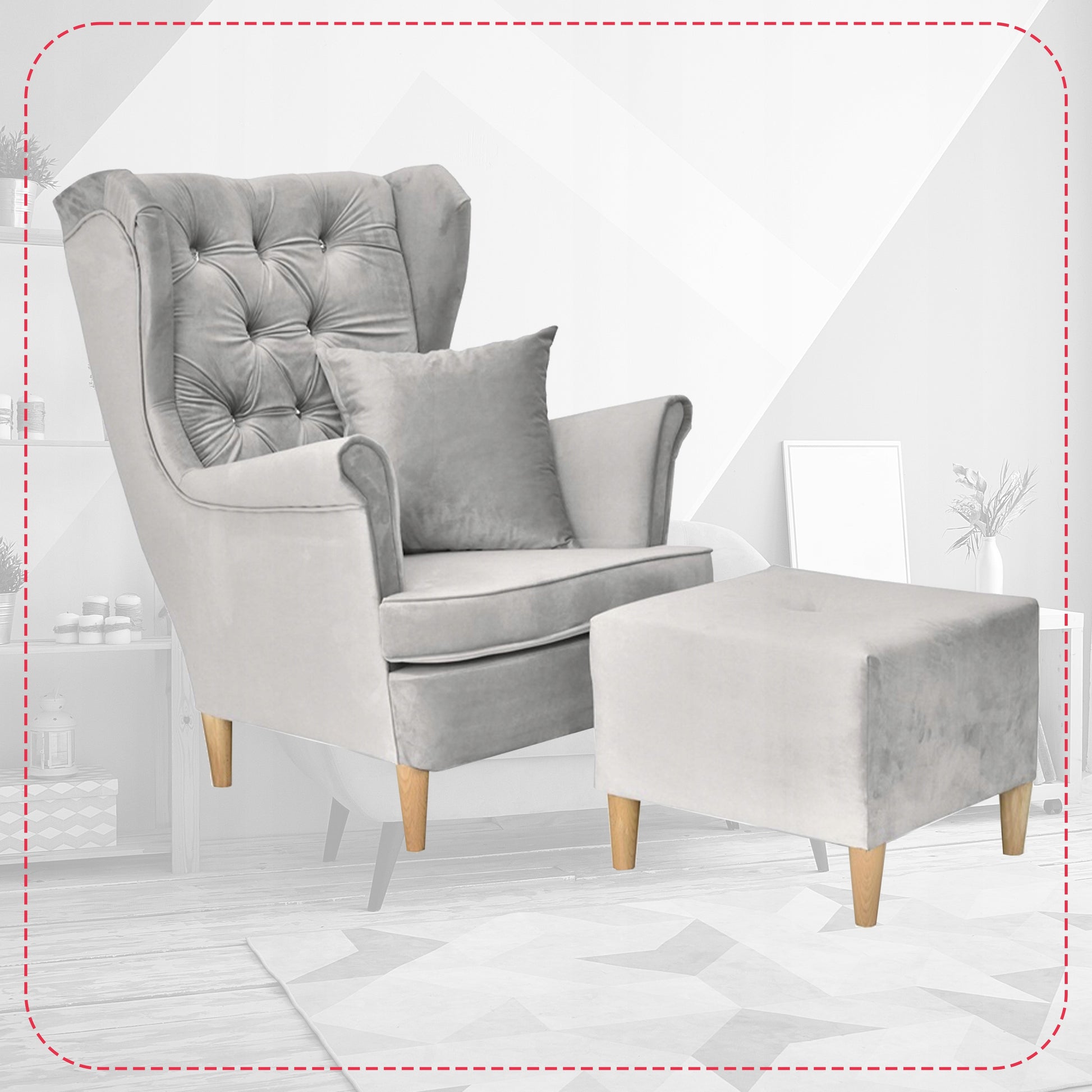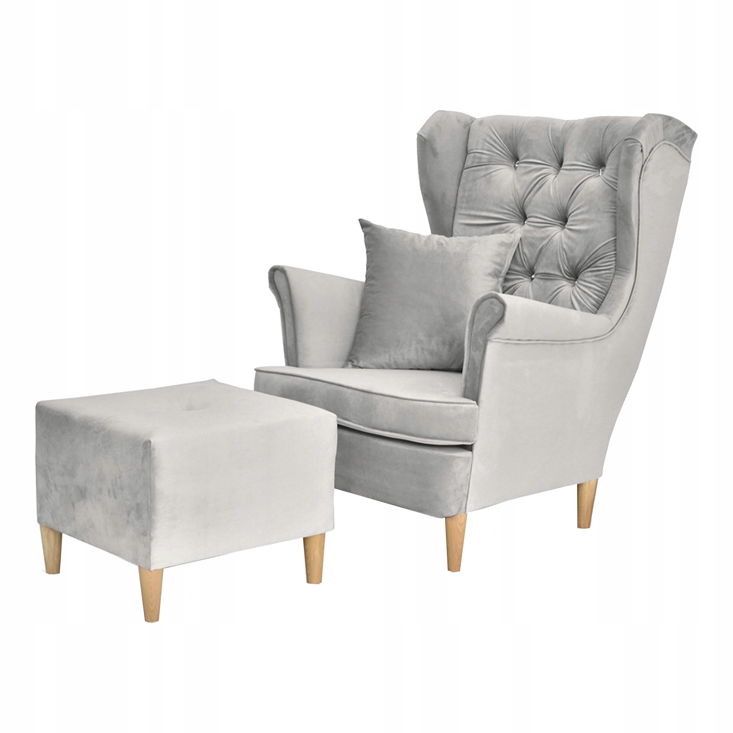 Fotel uszak Gaja podnóżkiem skandynawski Family Meble gołębi popielaty