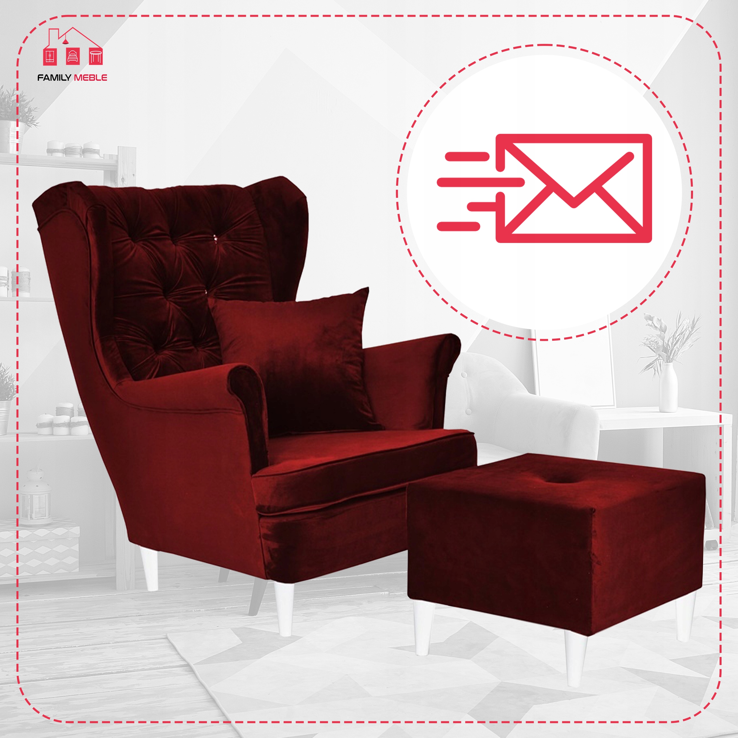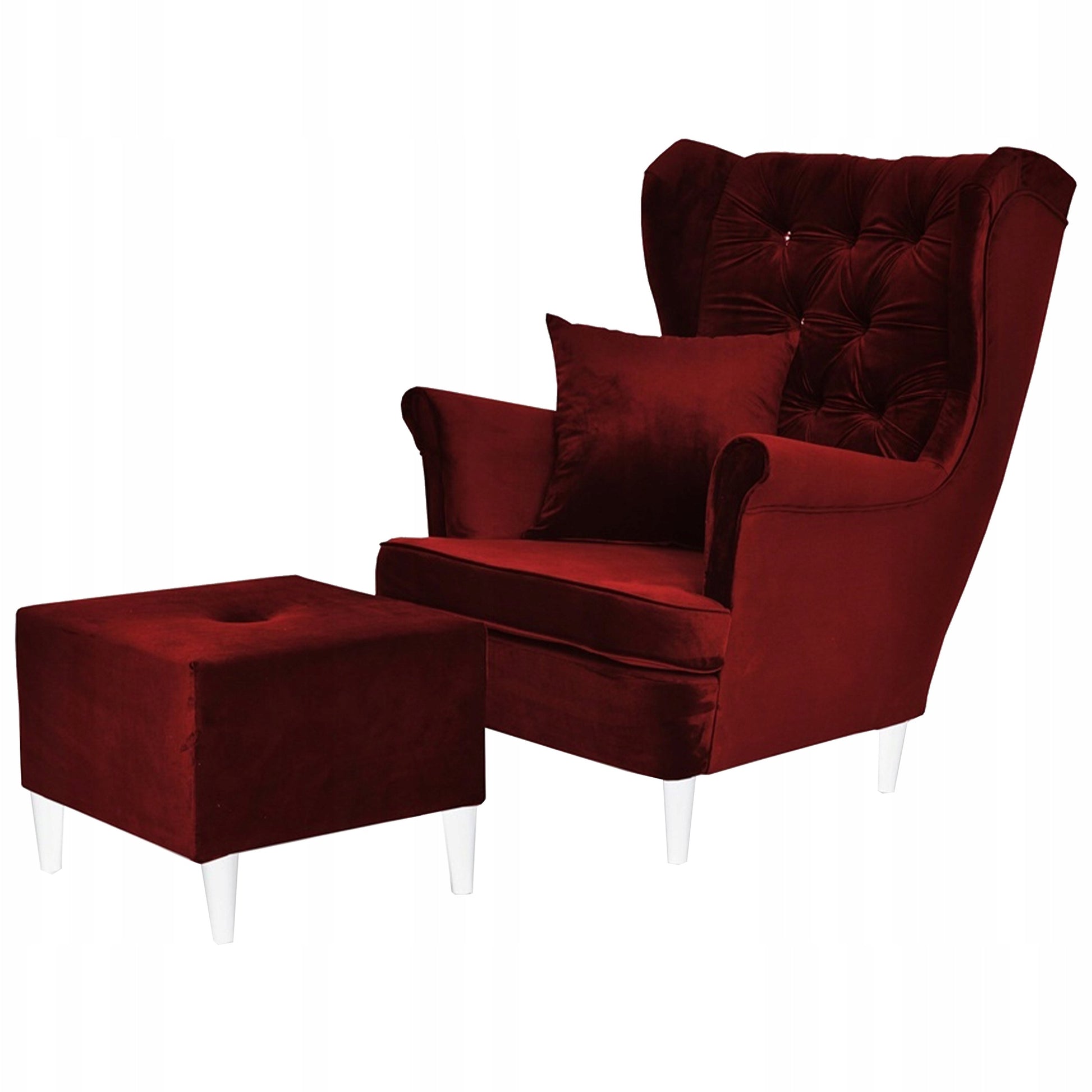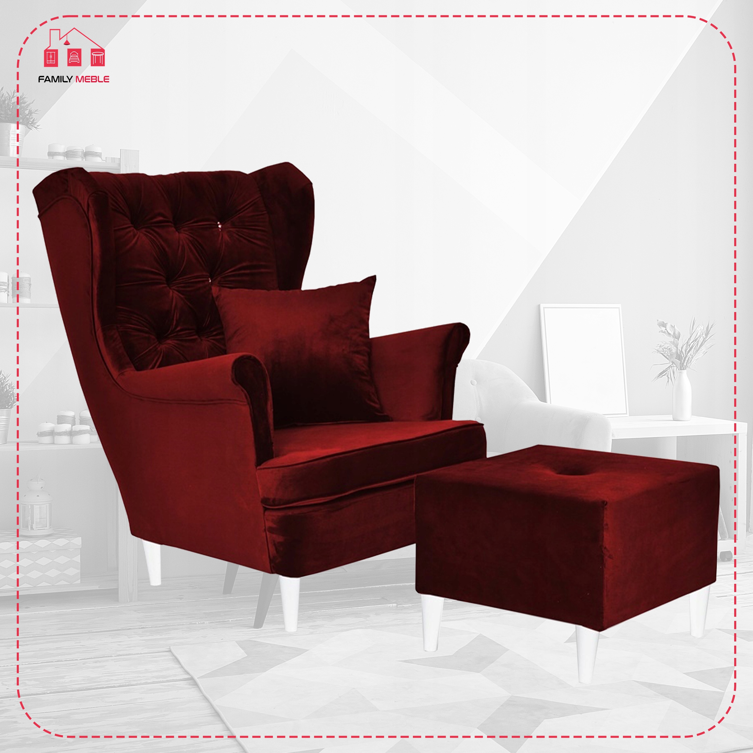 Fotel uszak Gaja podnóżkiem skandynawski Family Meble krwista czerwień
