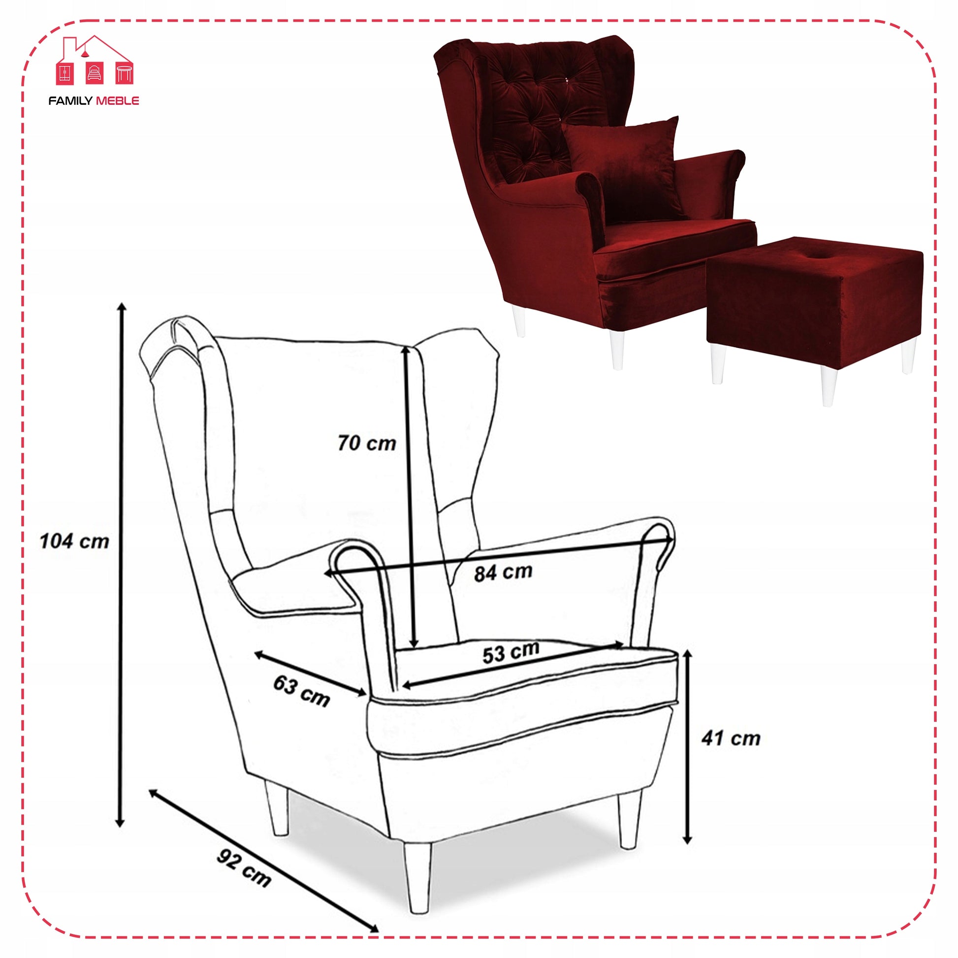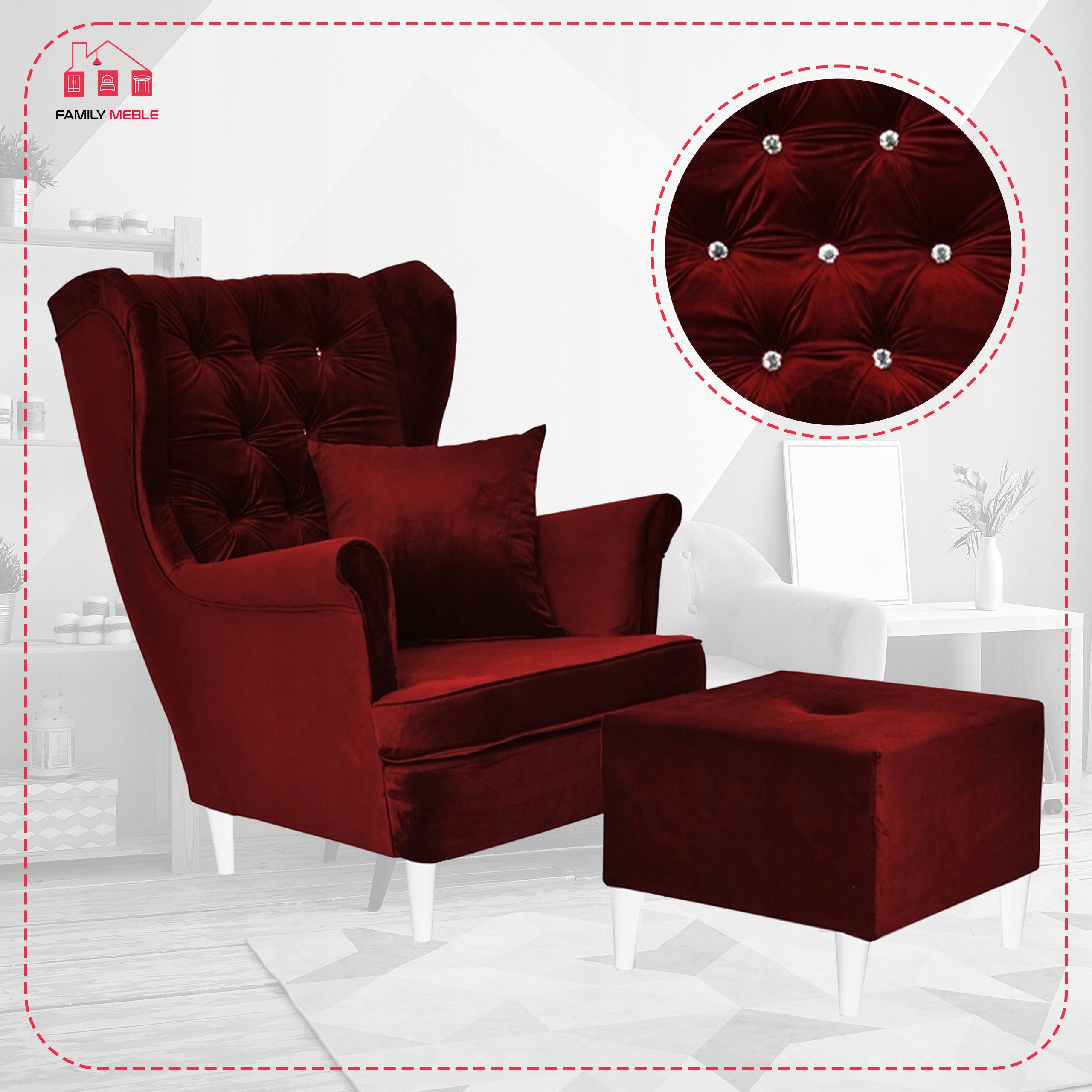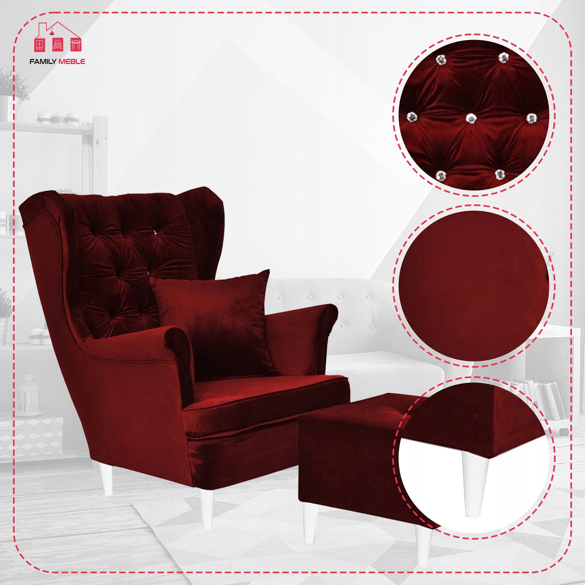 Fotel uszak Gaja podnóżkiem skandynawski Family Meble krwista czerwień
