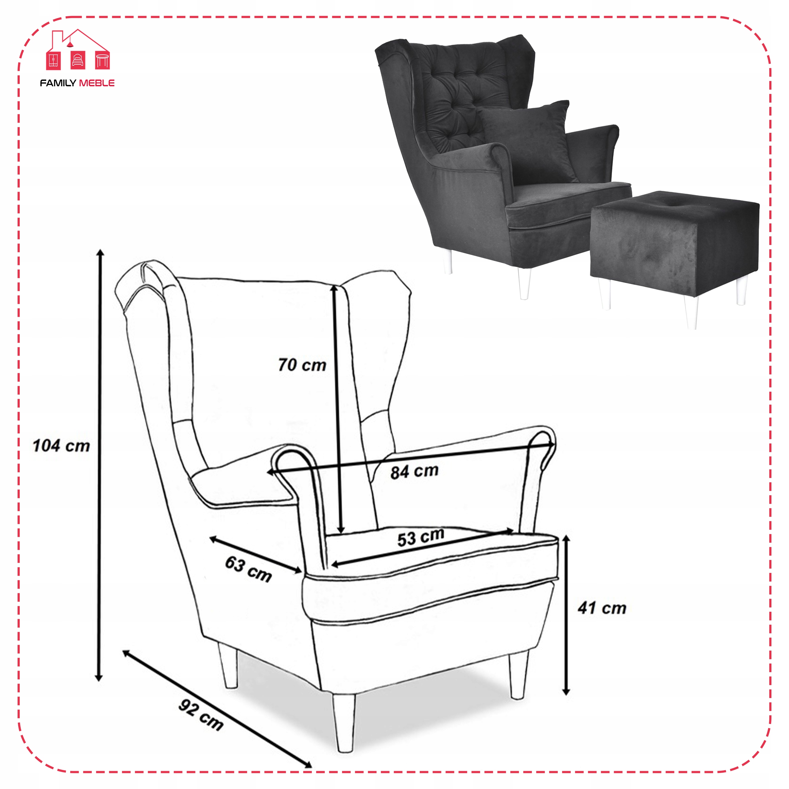 Fotel uszak z podnóżkiem skandynawski Gaja Family Meble