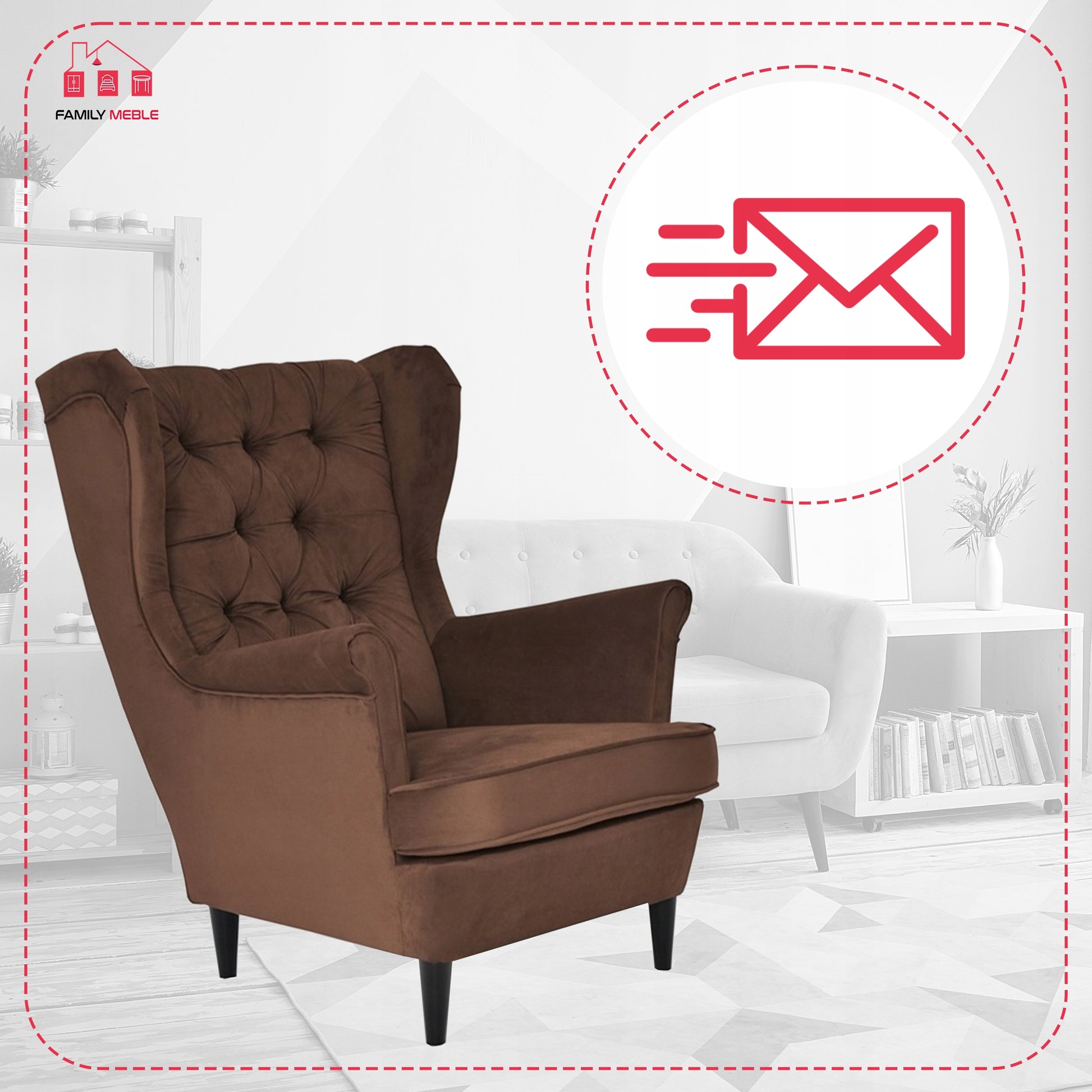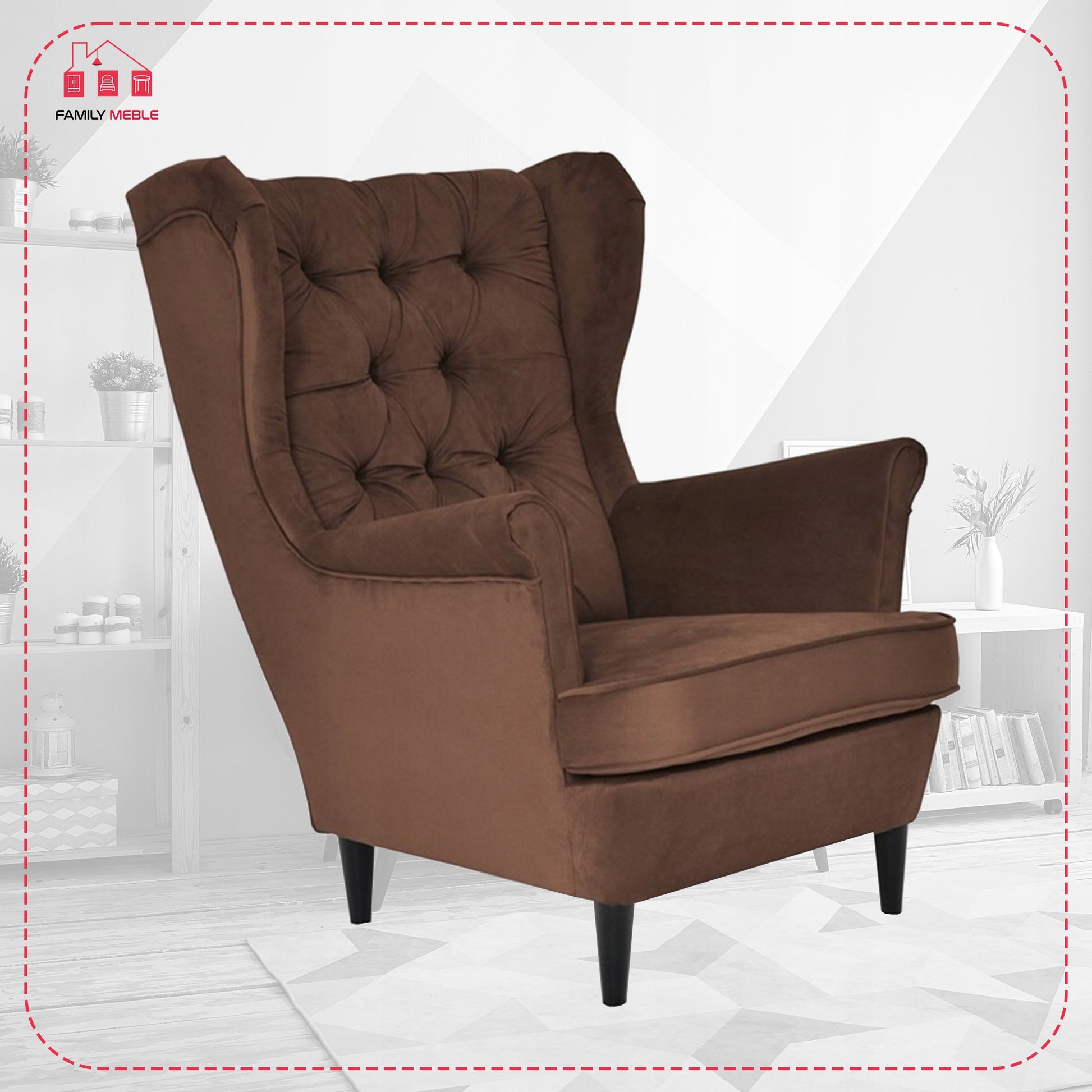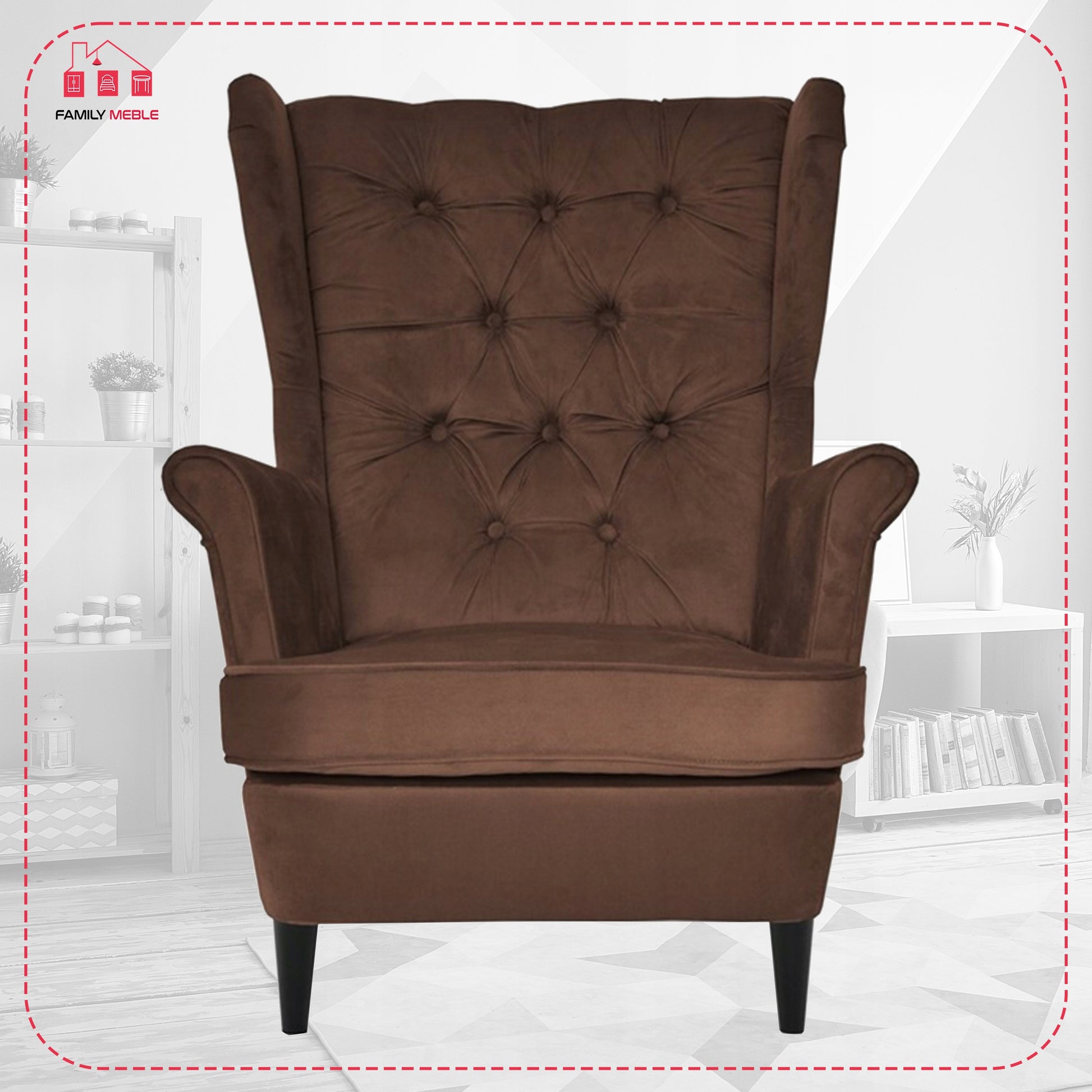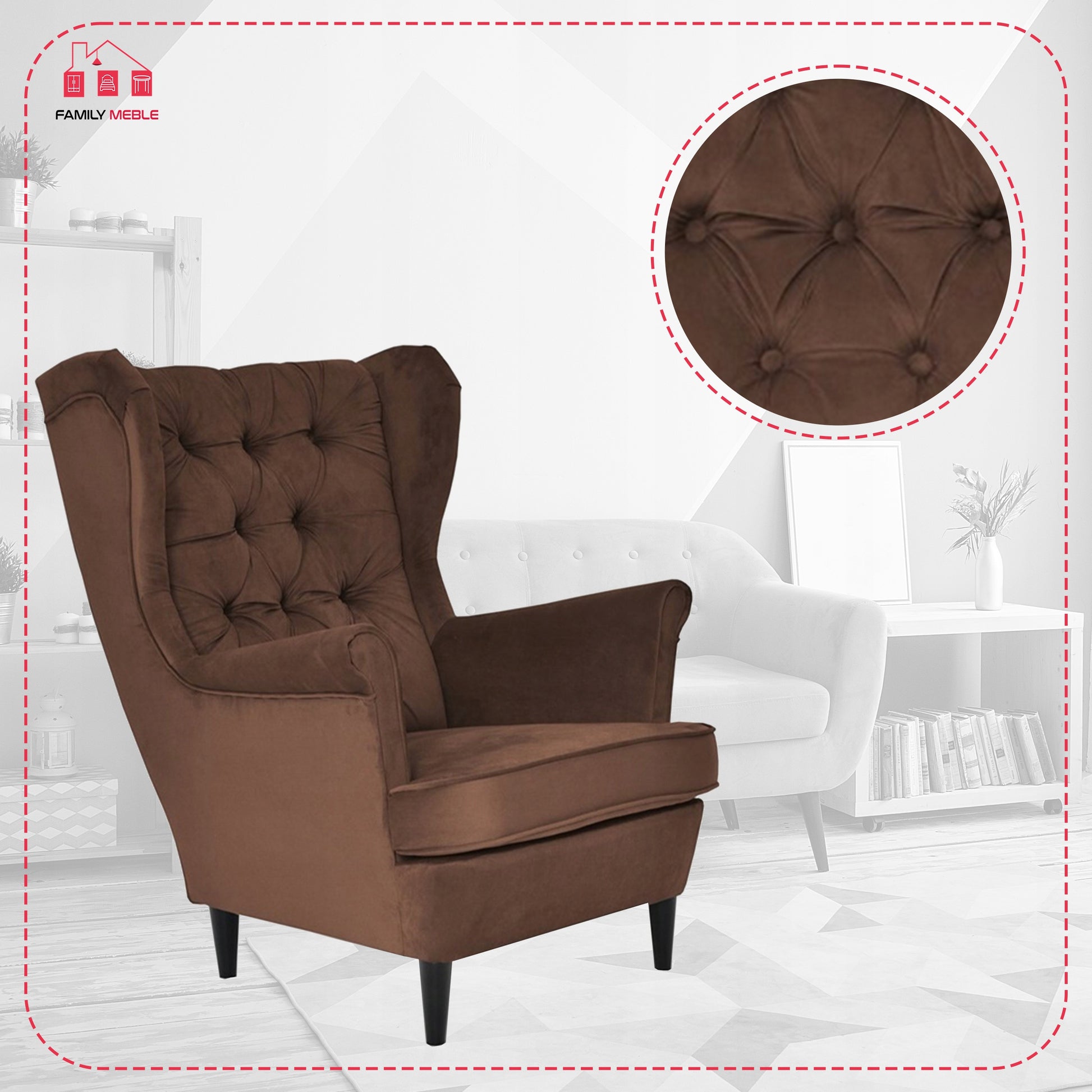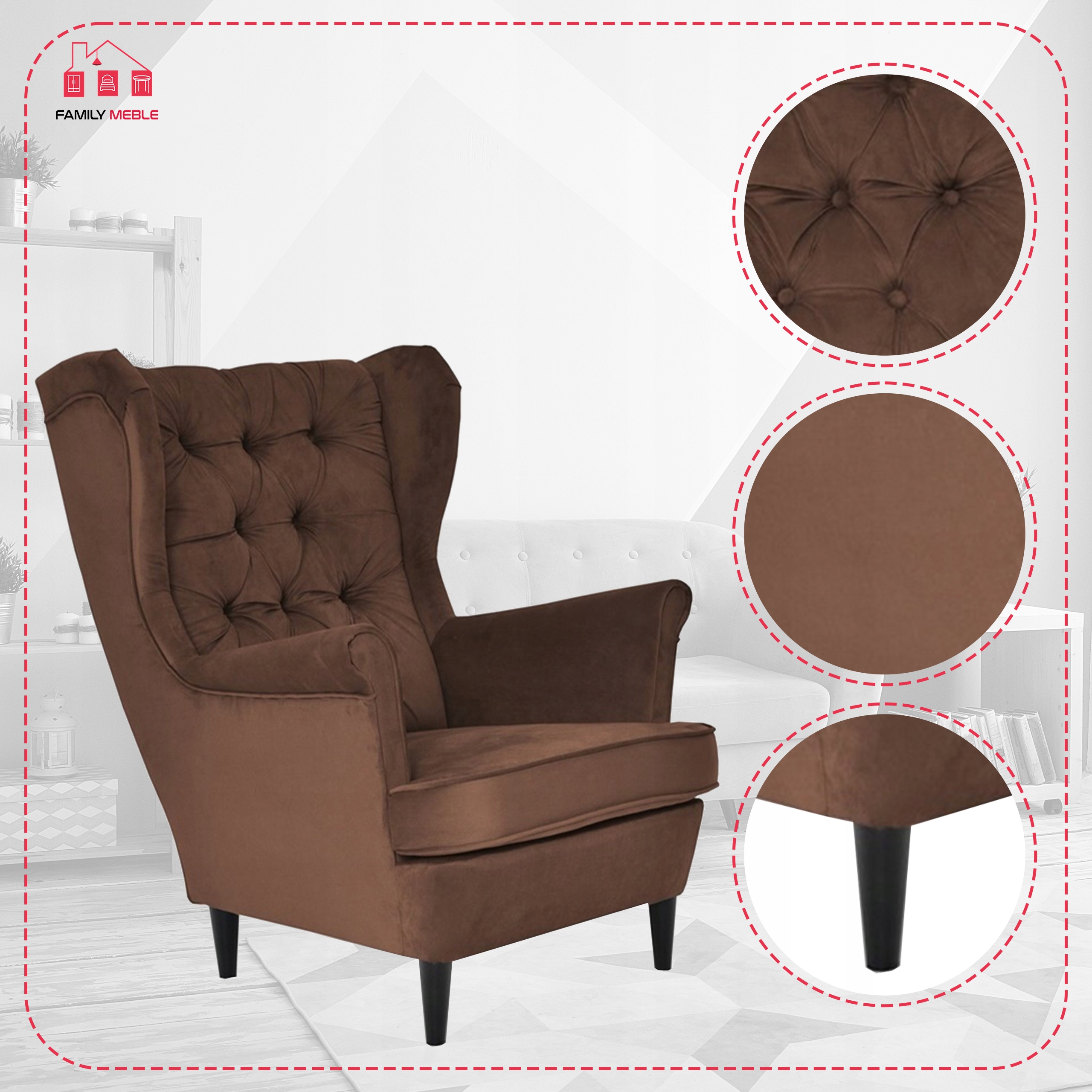 Fotel uszak Gaja skandynawski Family Meble brązowy czekoladowy beżowy