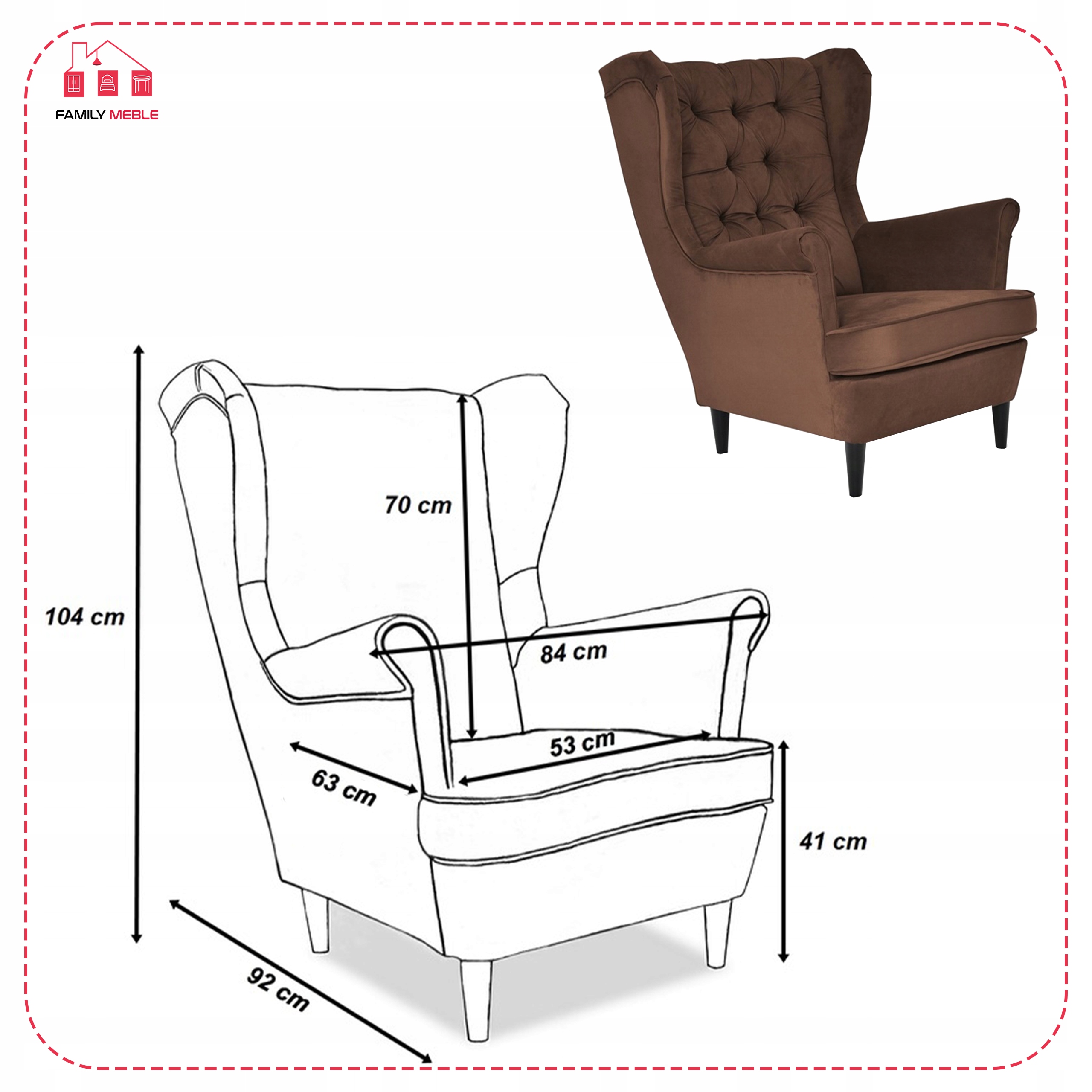 - wysokość siedziska: 41 cm