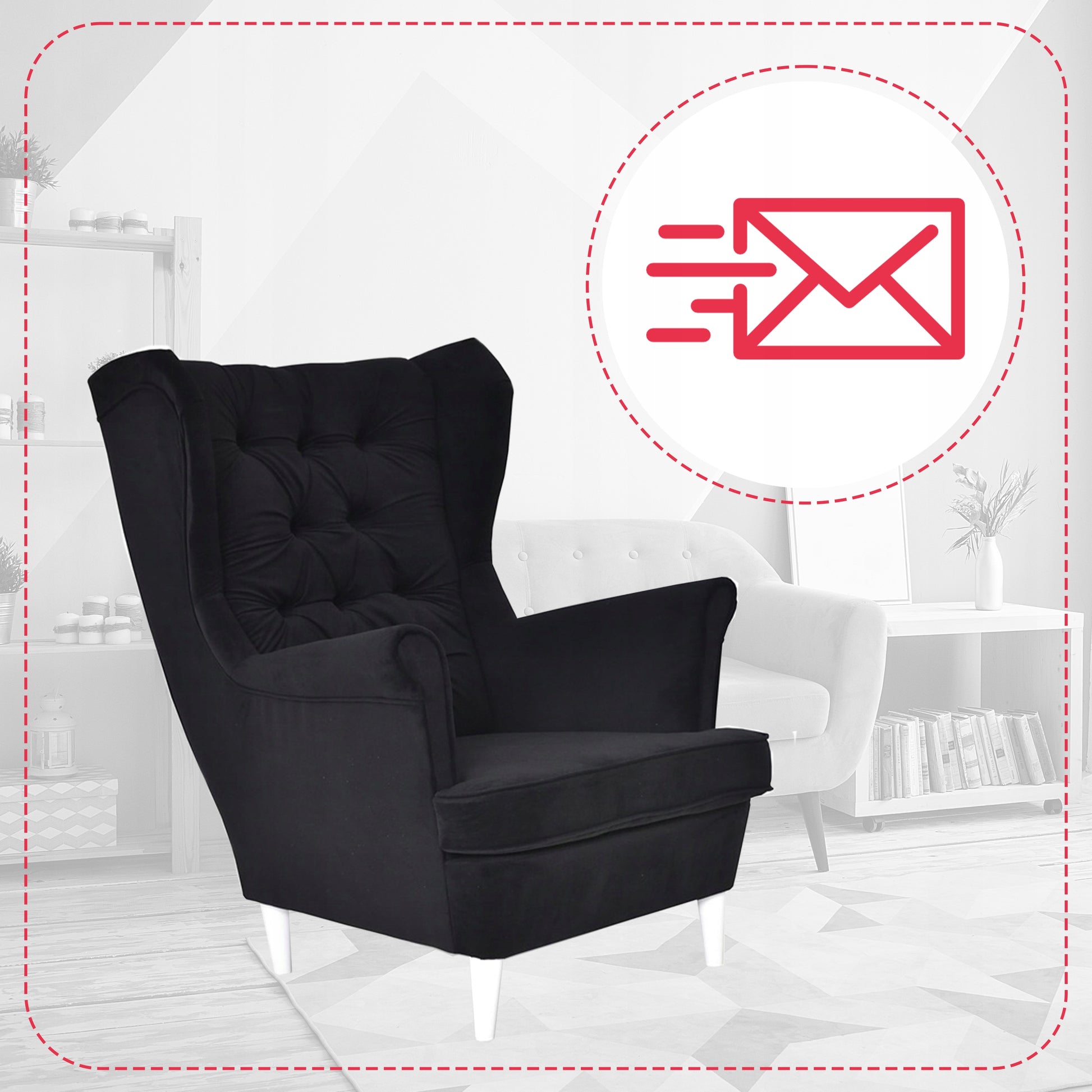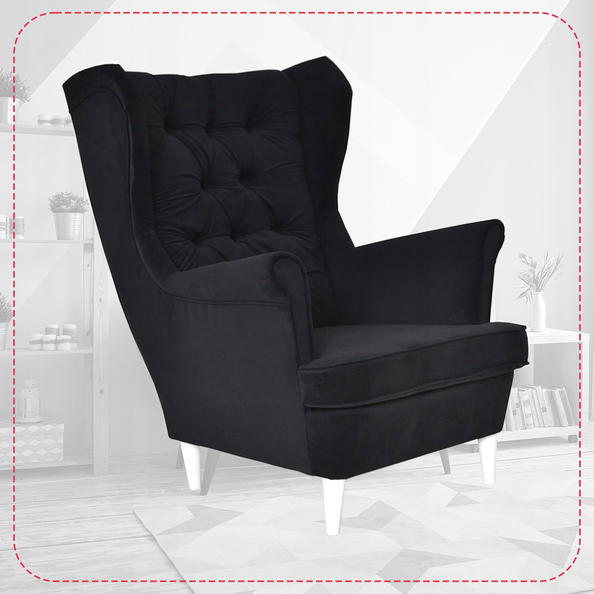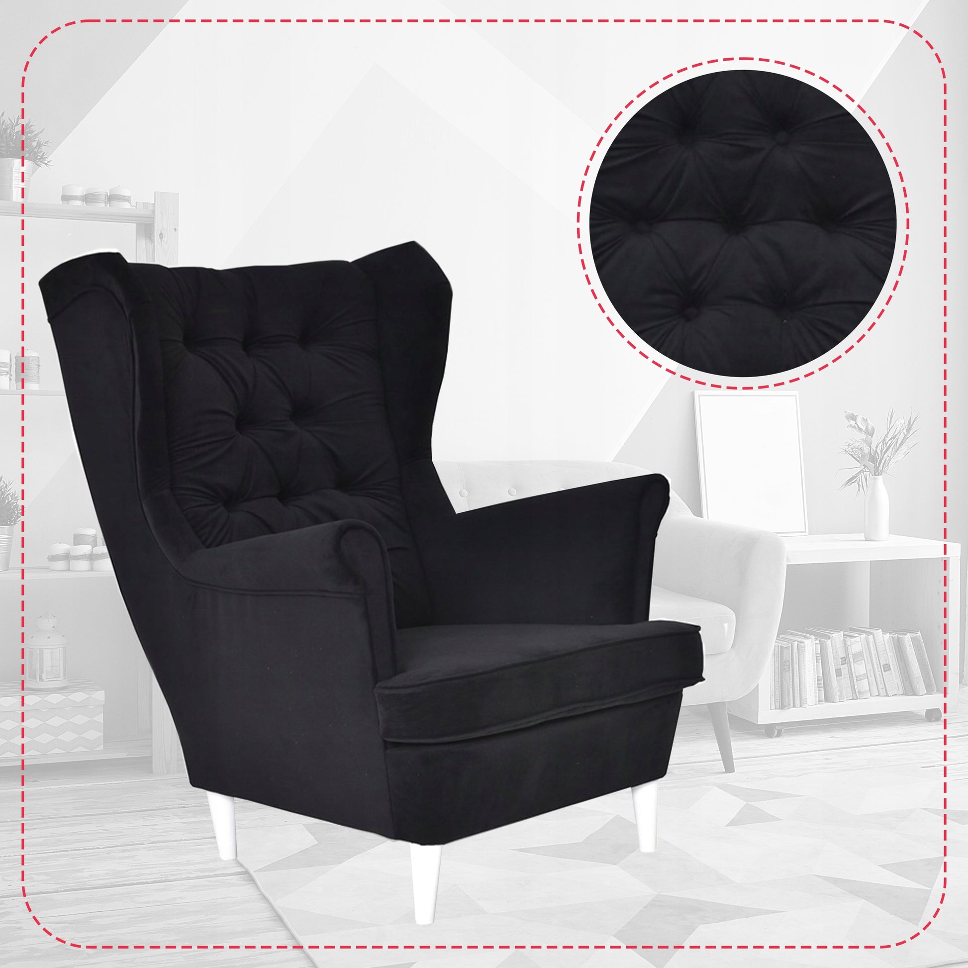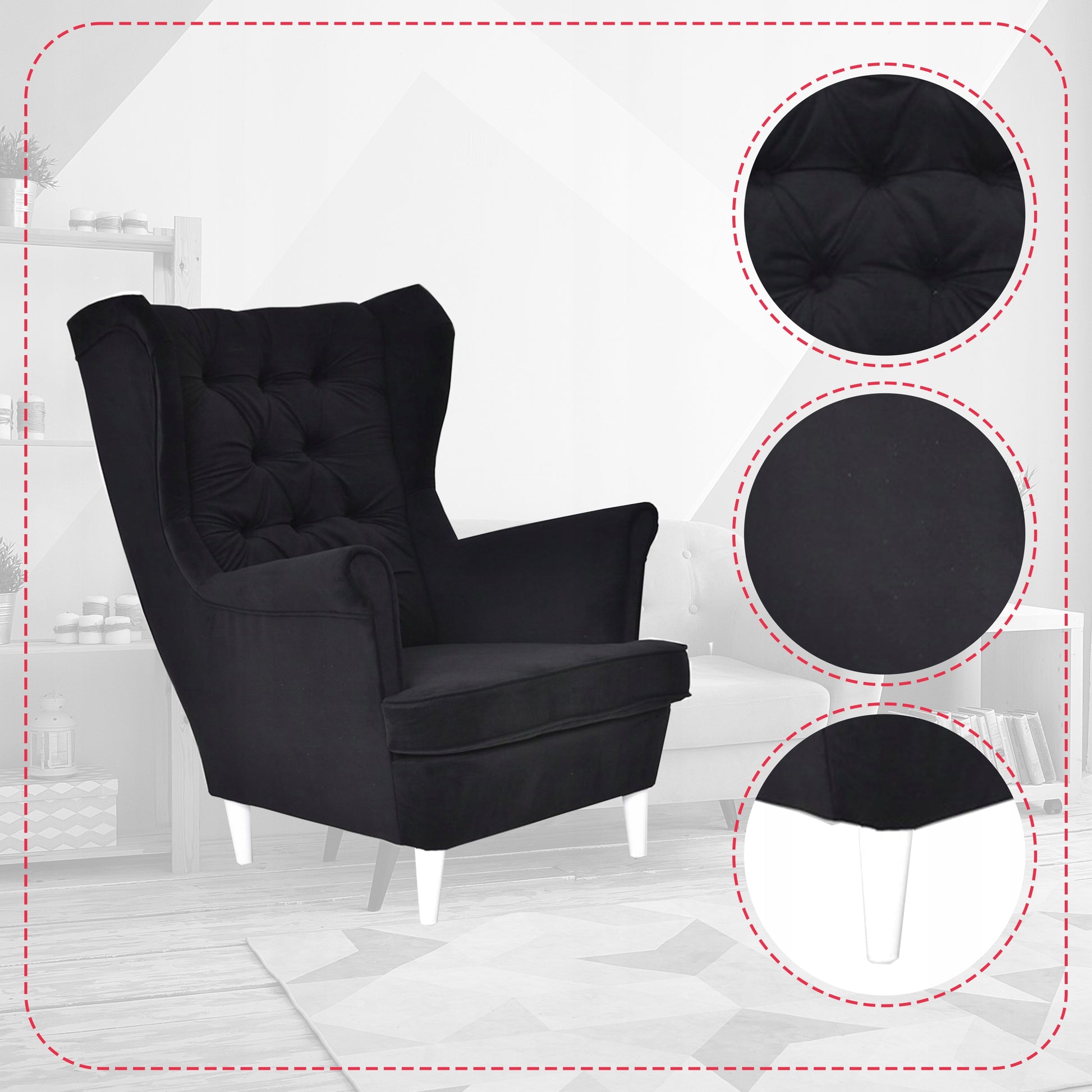 Fotel uszak Gaja skandynawski Family Meble czarny welur hydrofobowy