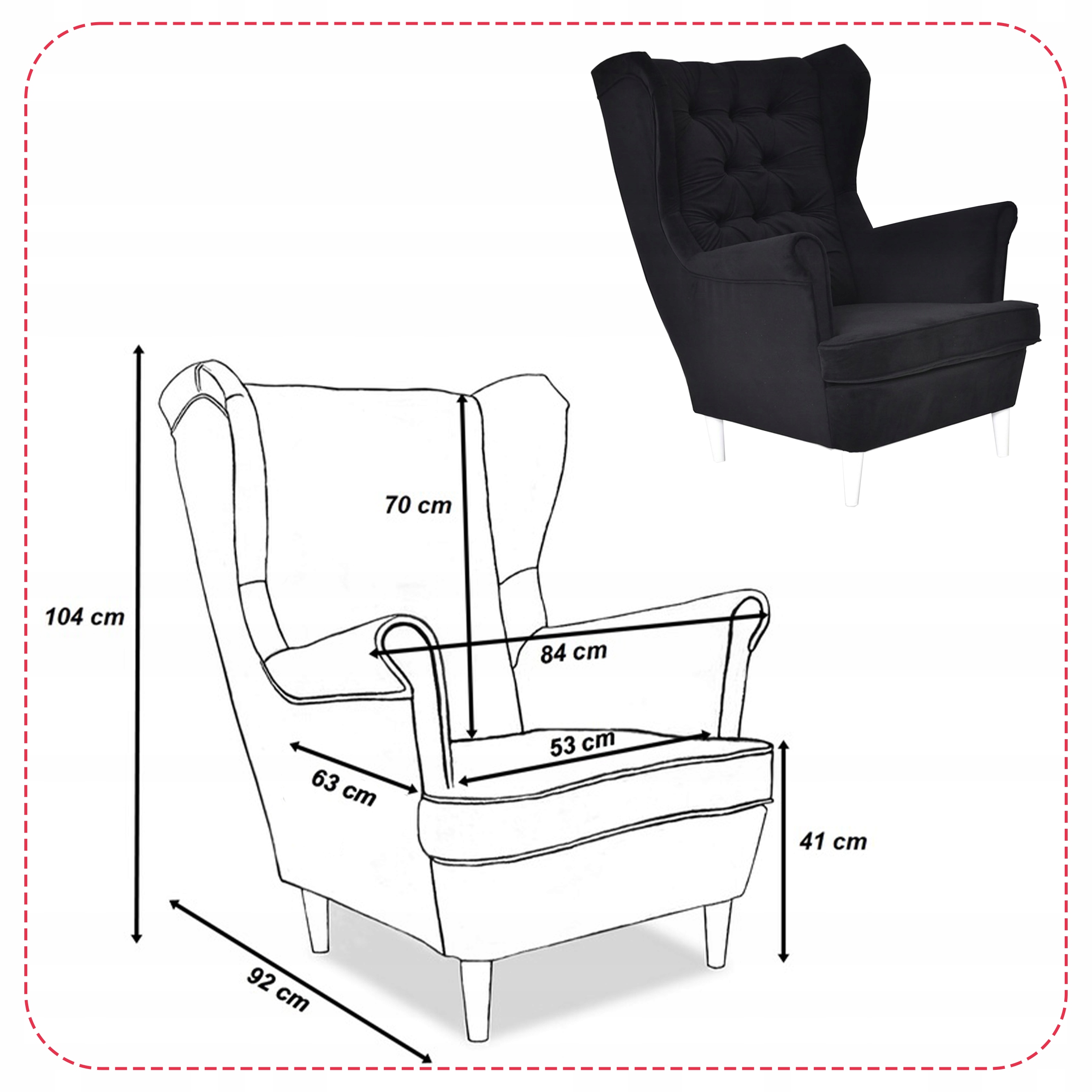 - długość podłokietnika: 50 cm