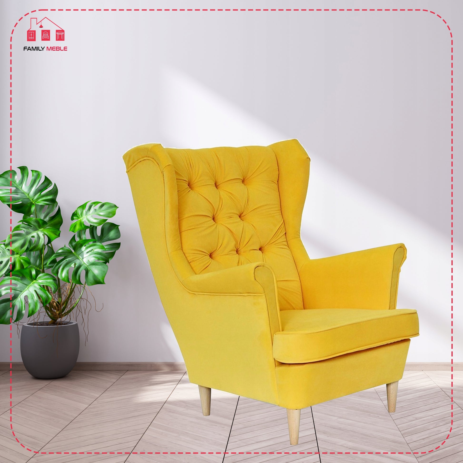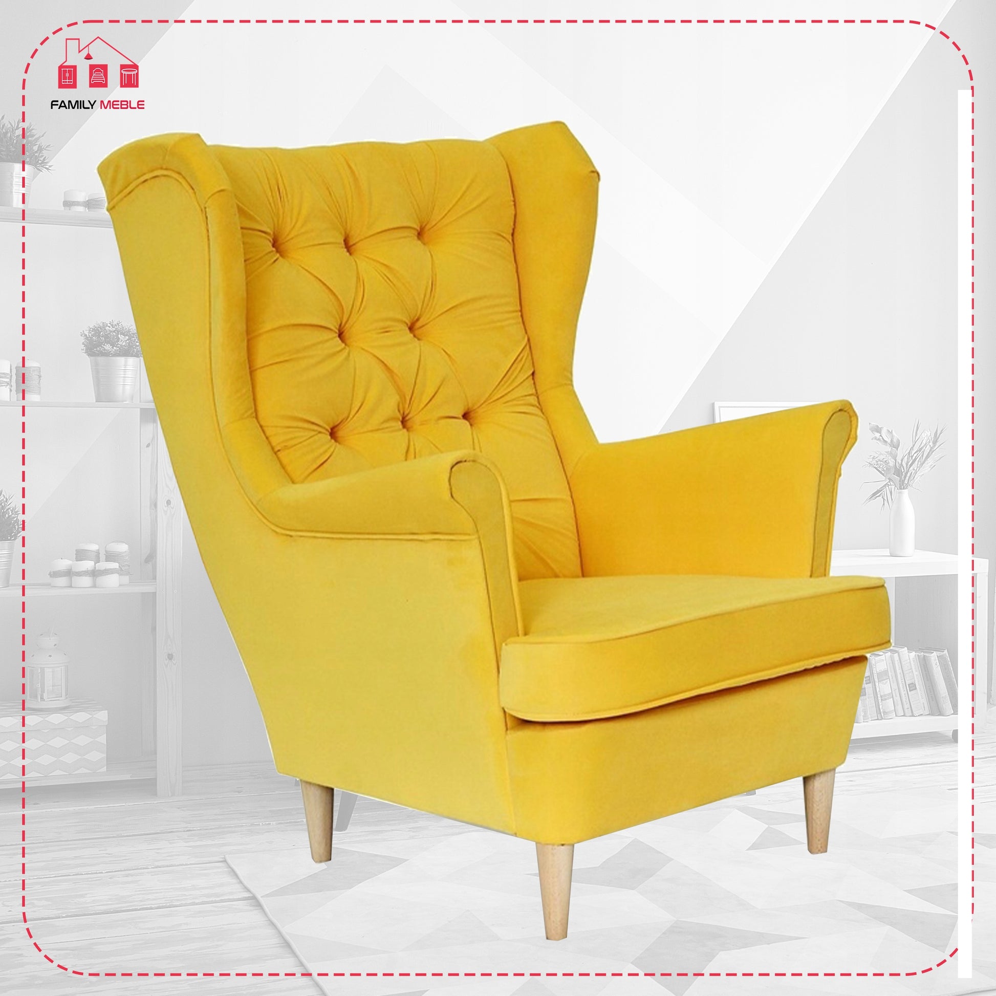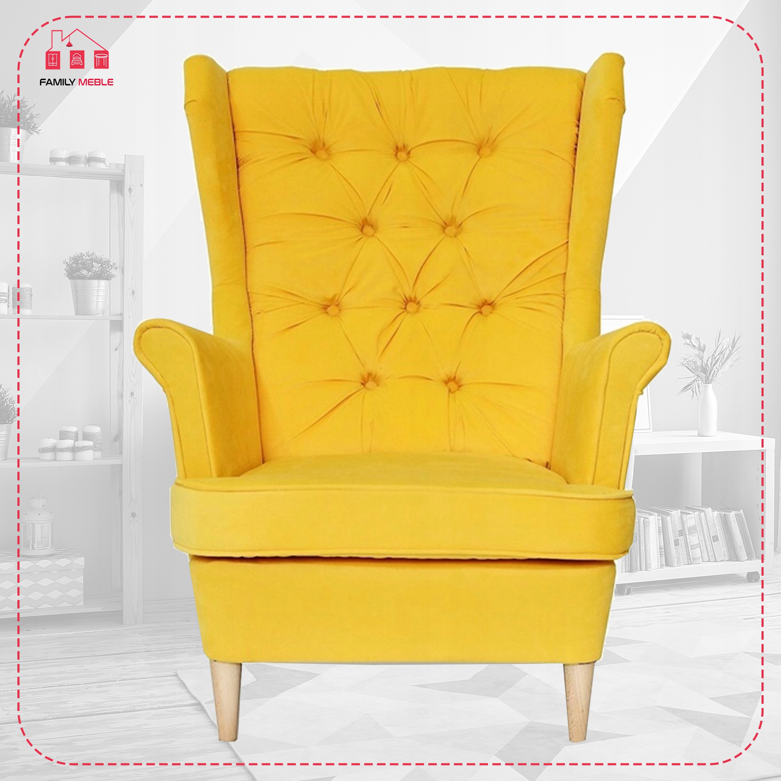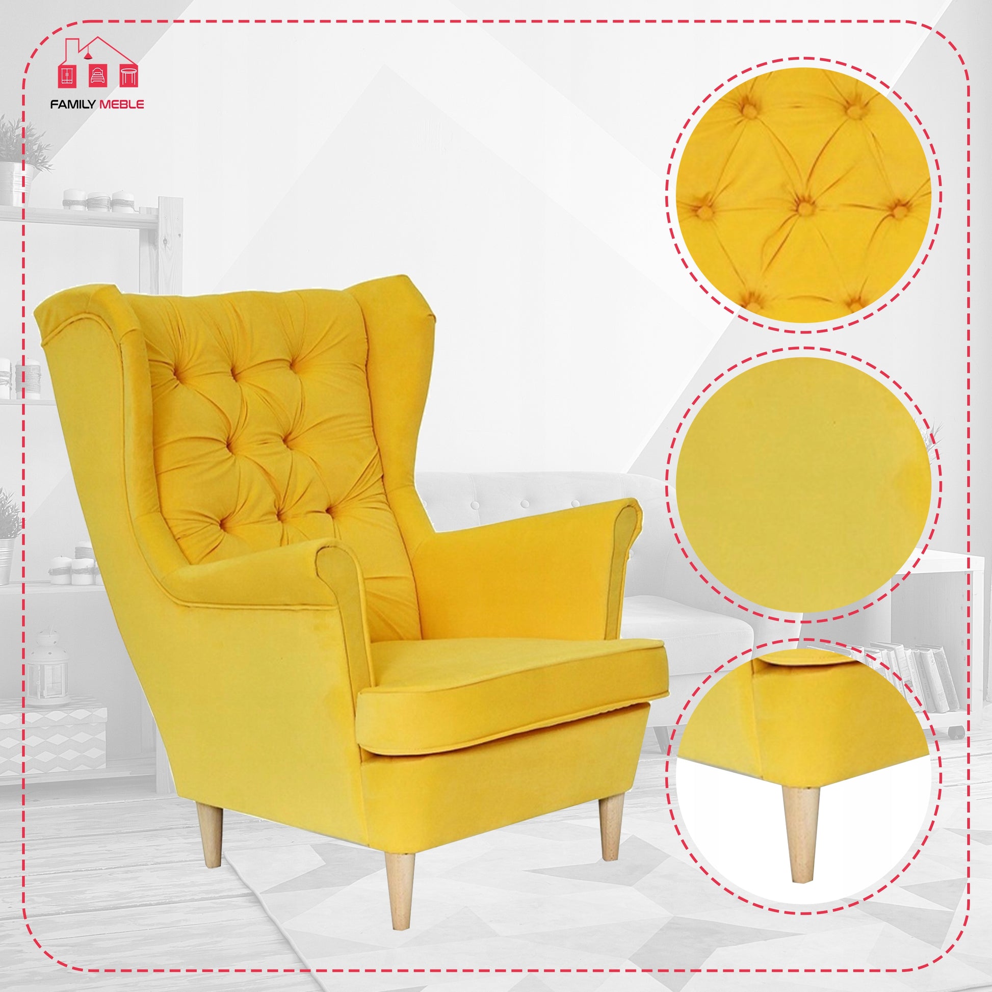 Fotel uszak Gaja skandynawski Family Meble żółty cytrynowy melonowy