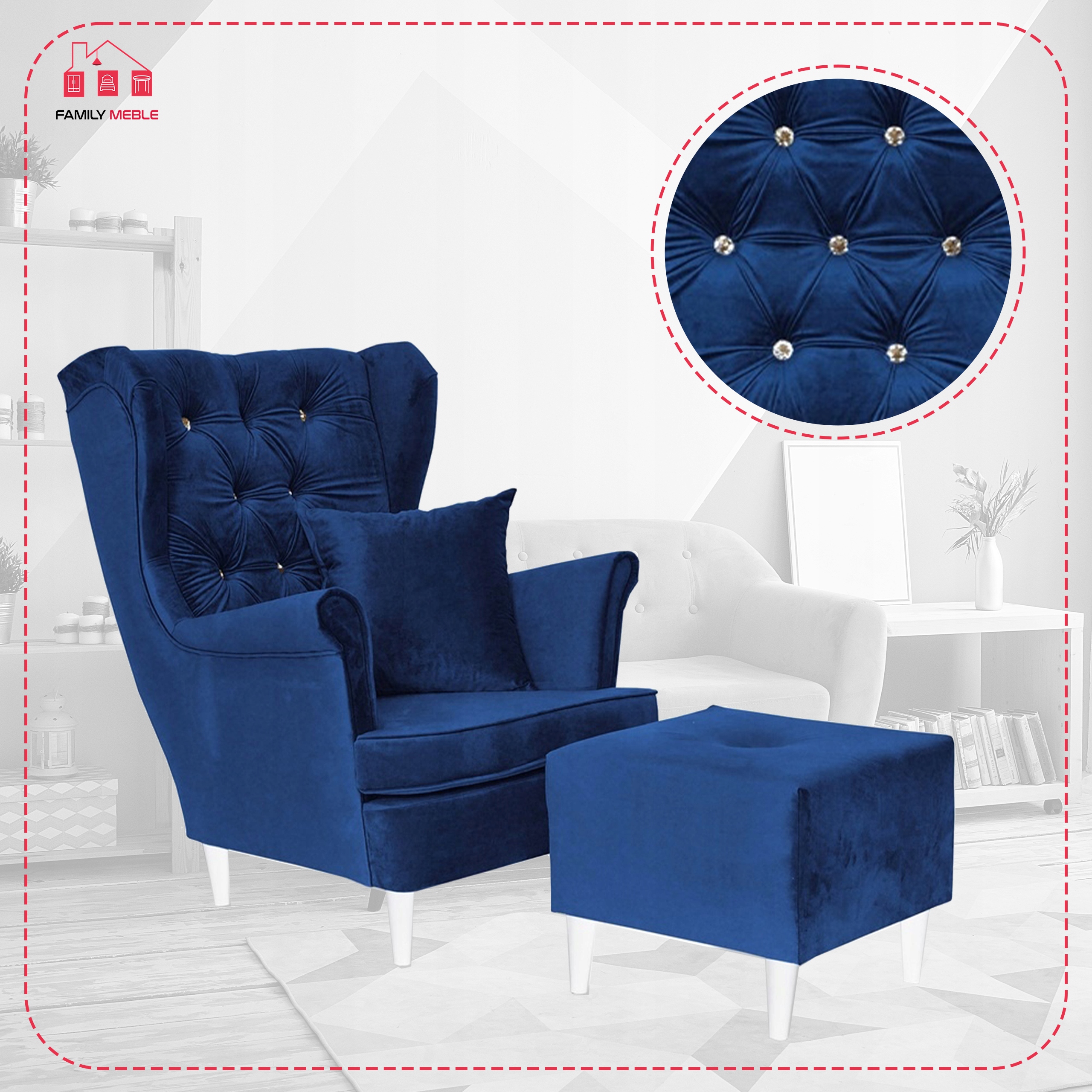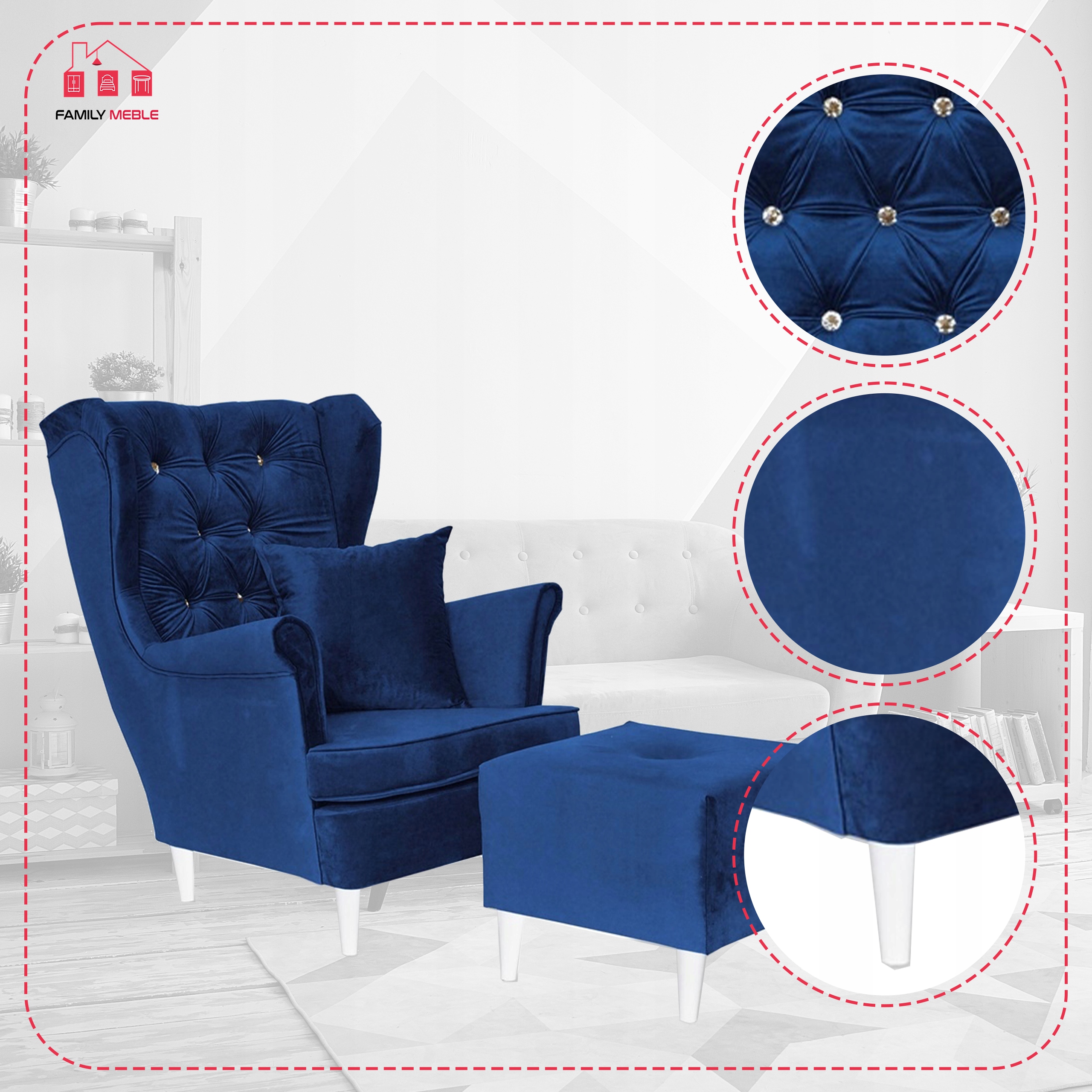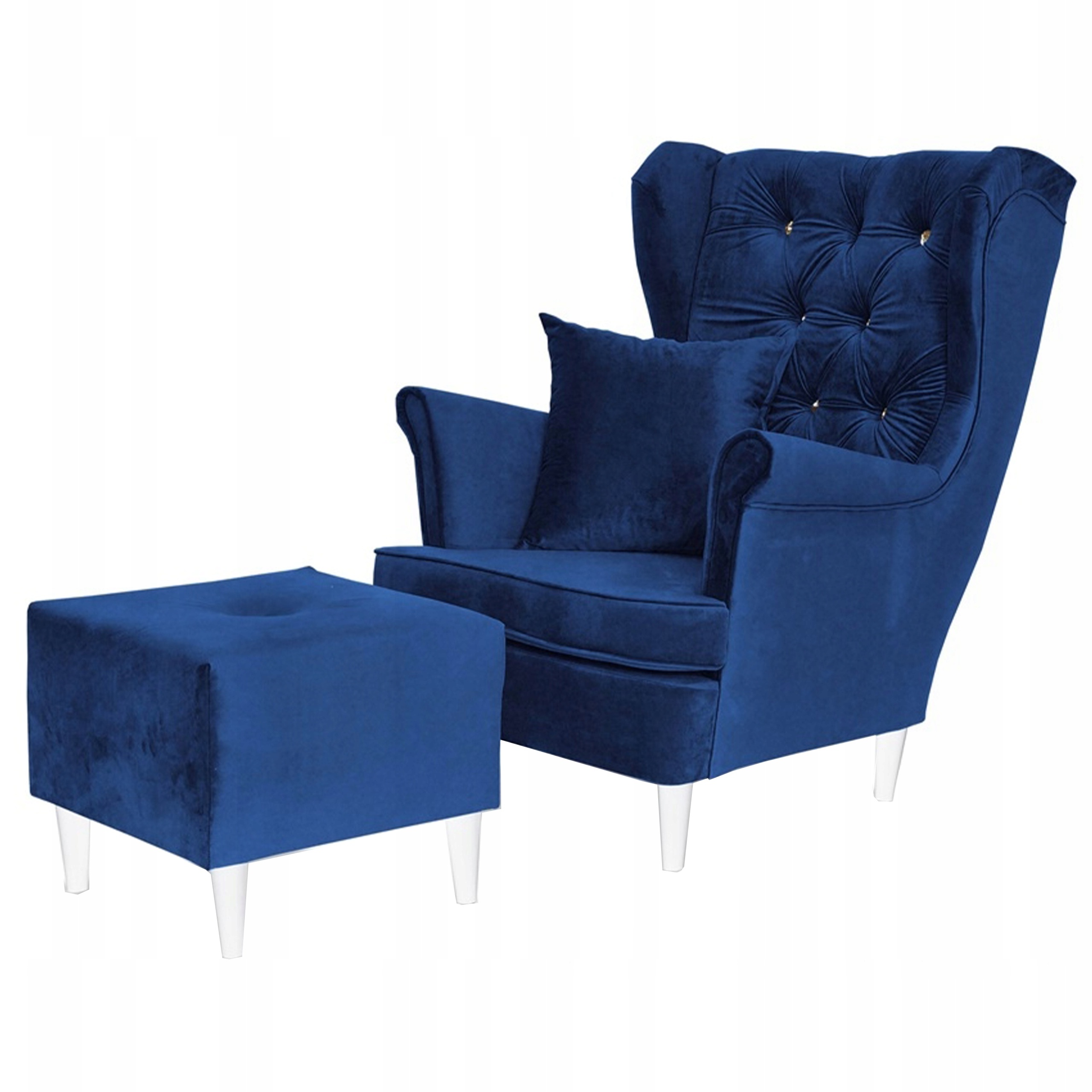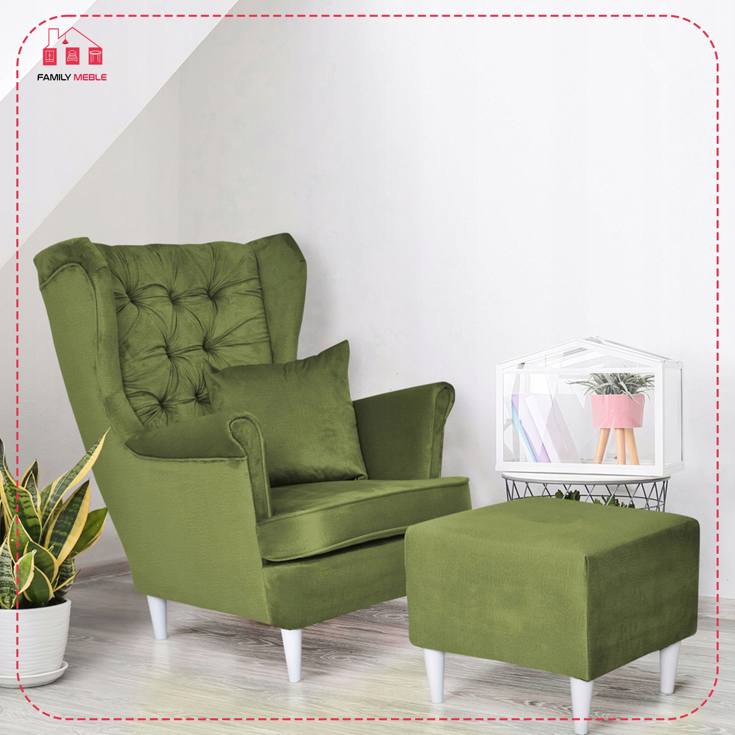 Fotel uszak Gaja z podnóżkiem skandynawski Family Meble aksamit welwet