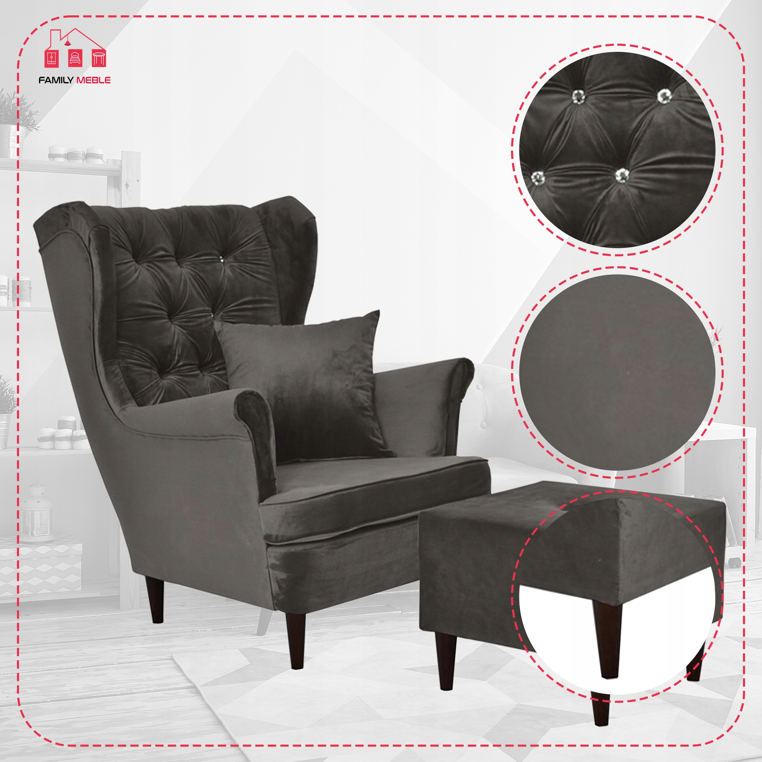 ✅ Możliwość personalizacji – zamawiając fotel bezpośrednio u producenta, możesz wybrać zarówno kolor jego nóżek, tkaninę obicia, jak i sposób zdobienia