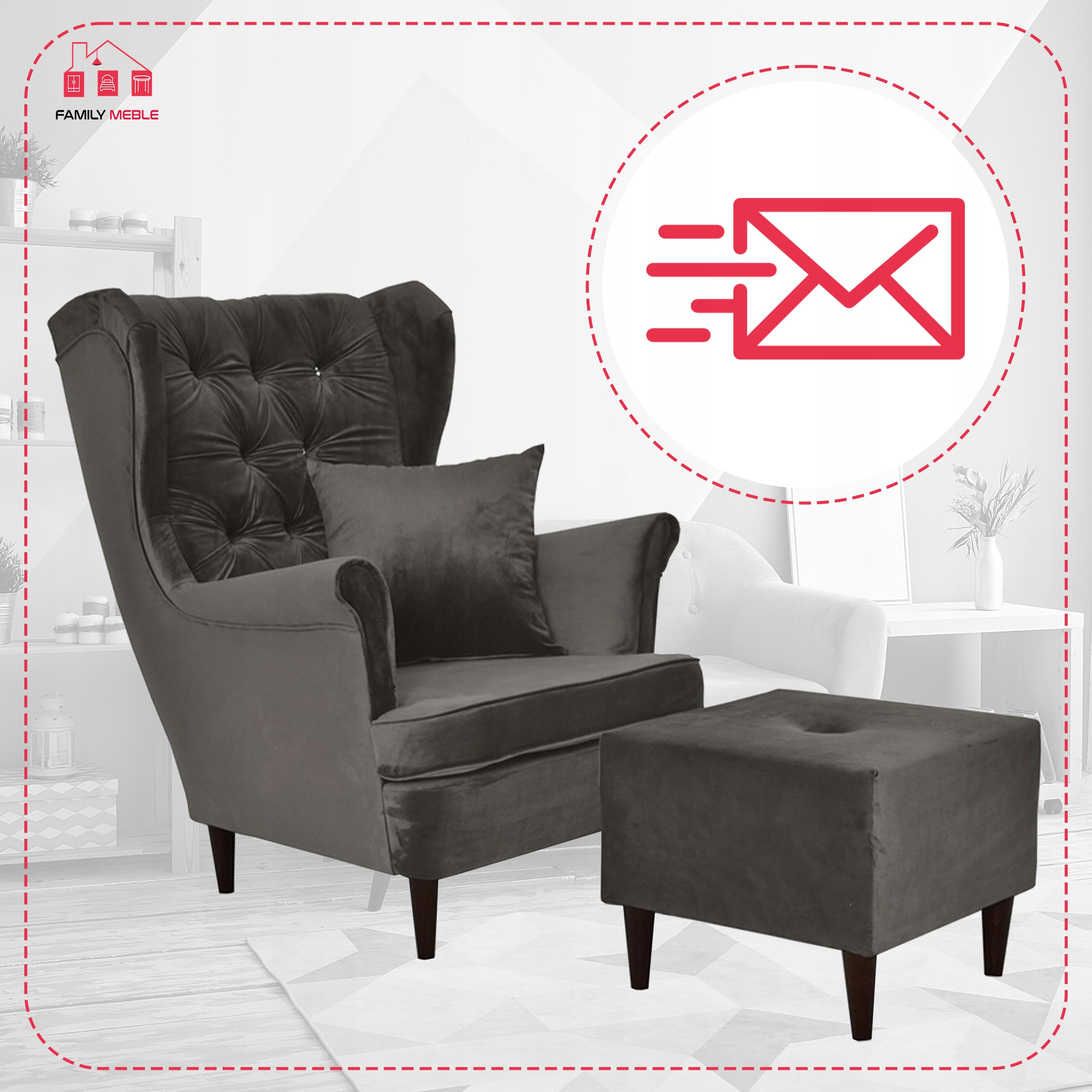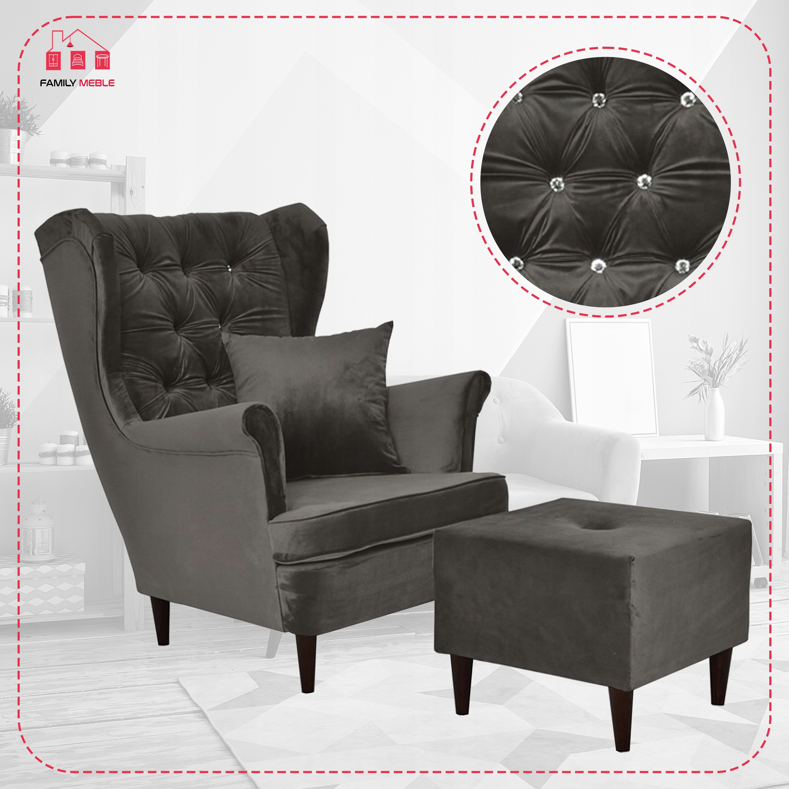 Fotel uszak z podnóżkiem skandynawski Gaja Family Meble