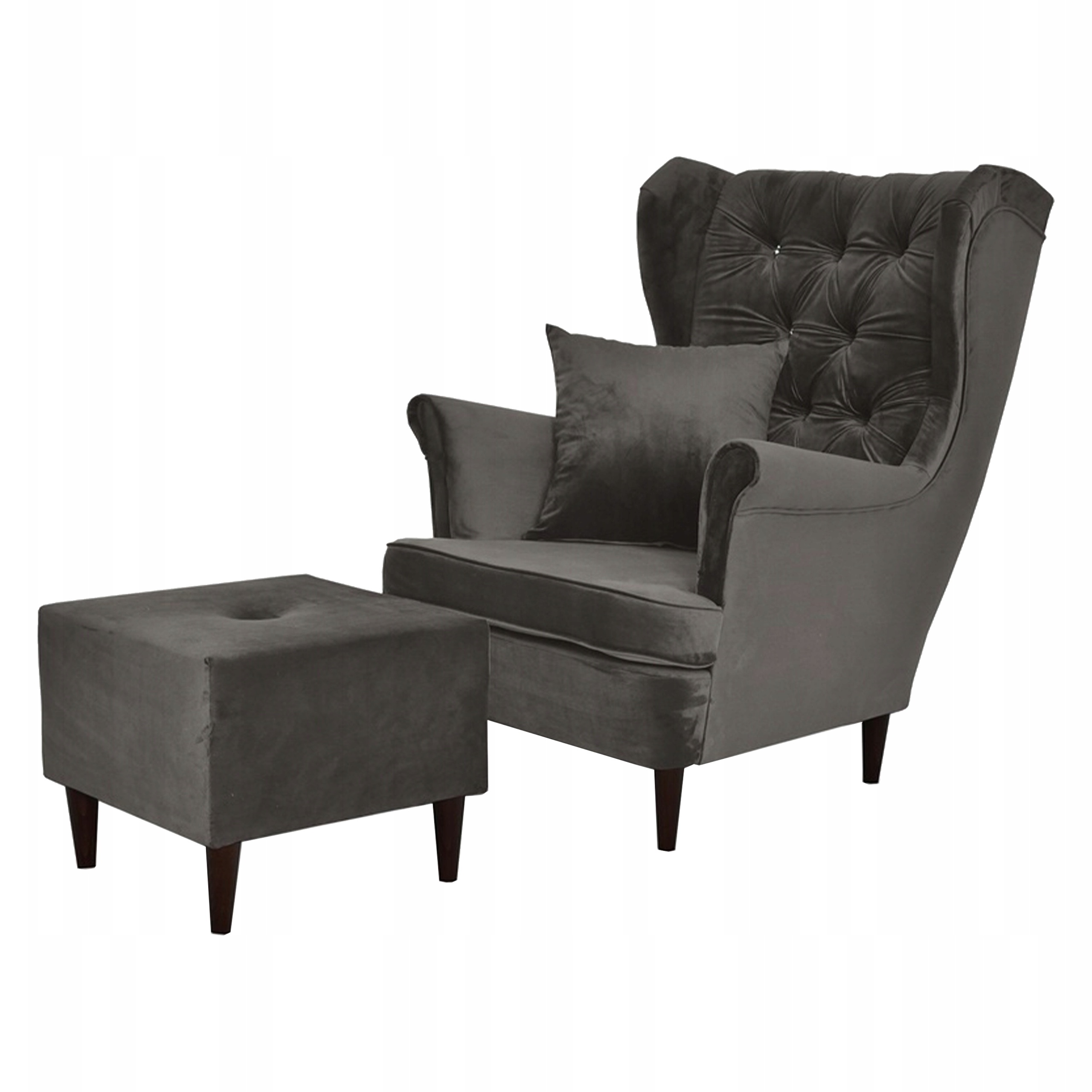 Swoją niezwykłą nazwę fotel Uszak zawdzięcza charakterystycznym „uszom”, czyli połączonym z podłokietnikami bokom oparcia. Choć powstał setki lat temu (prawdopodobnie na dworze Ludwika XIV), wciąż jest popularny. Dzięki łagodnym liniom i klasycznemu kształtowi prezentuje się bardzo elegancko. Grafitowe obicie (ROYAL 38) sprawia, że bez trudu ożywi każde wnętrza. Do tego jest wyjątkowo wygodny. Zapadnij się w jego siedzisko, połóż nogi na pufie znajdującej się w zestawie i po prostu rozkoszuj się chwilą!