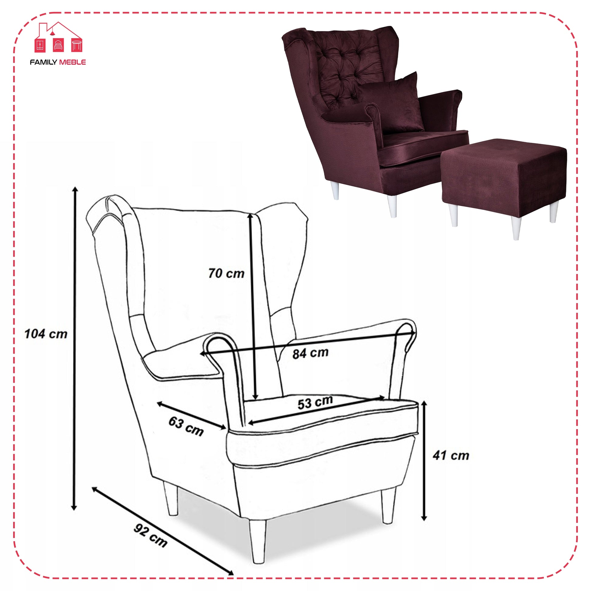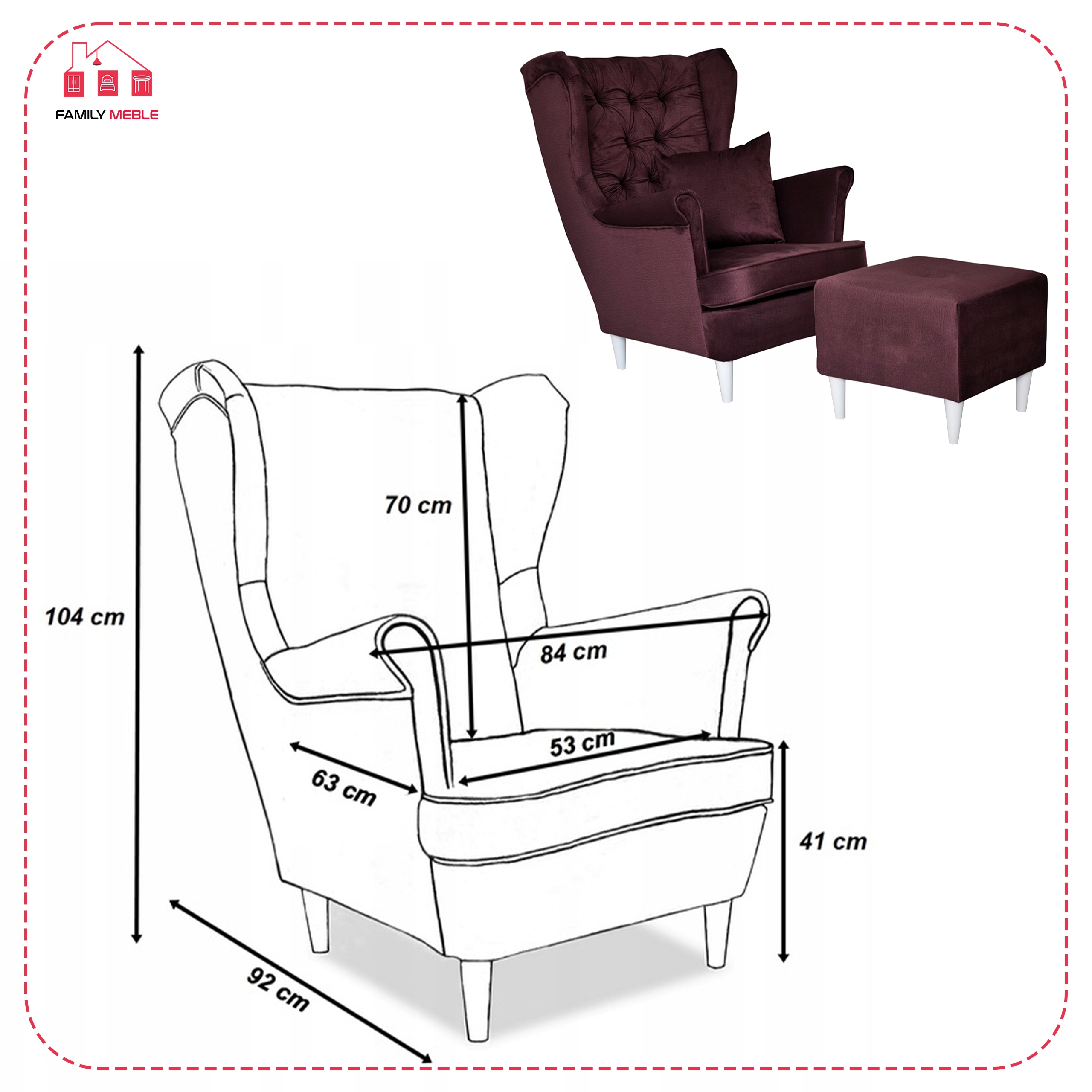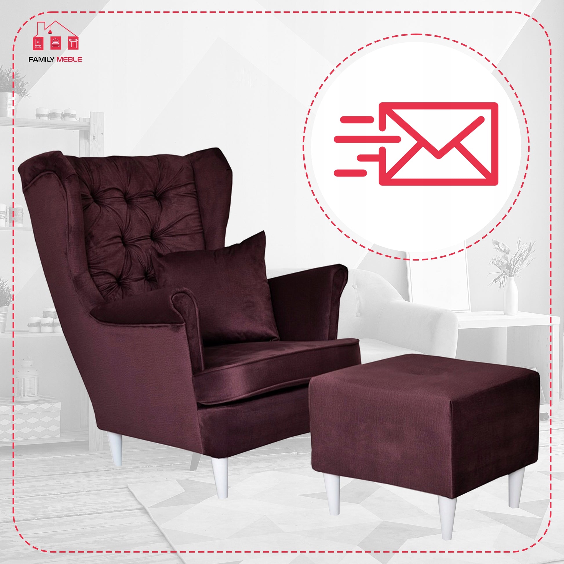 Fotel uszak Gaja z podnóżkiem skandynawski Family Meble burgund welur