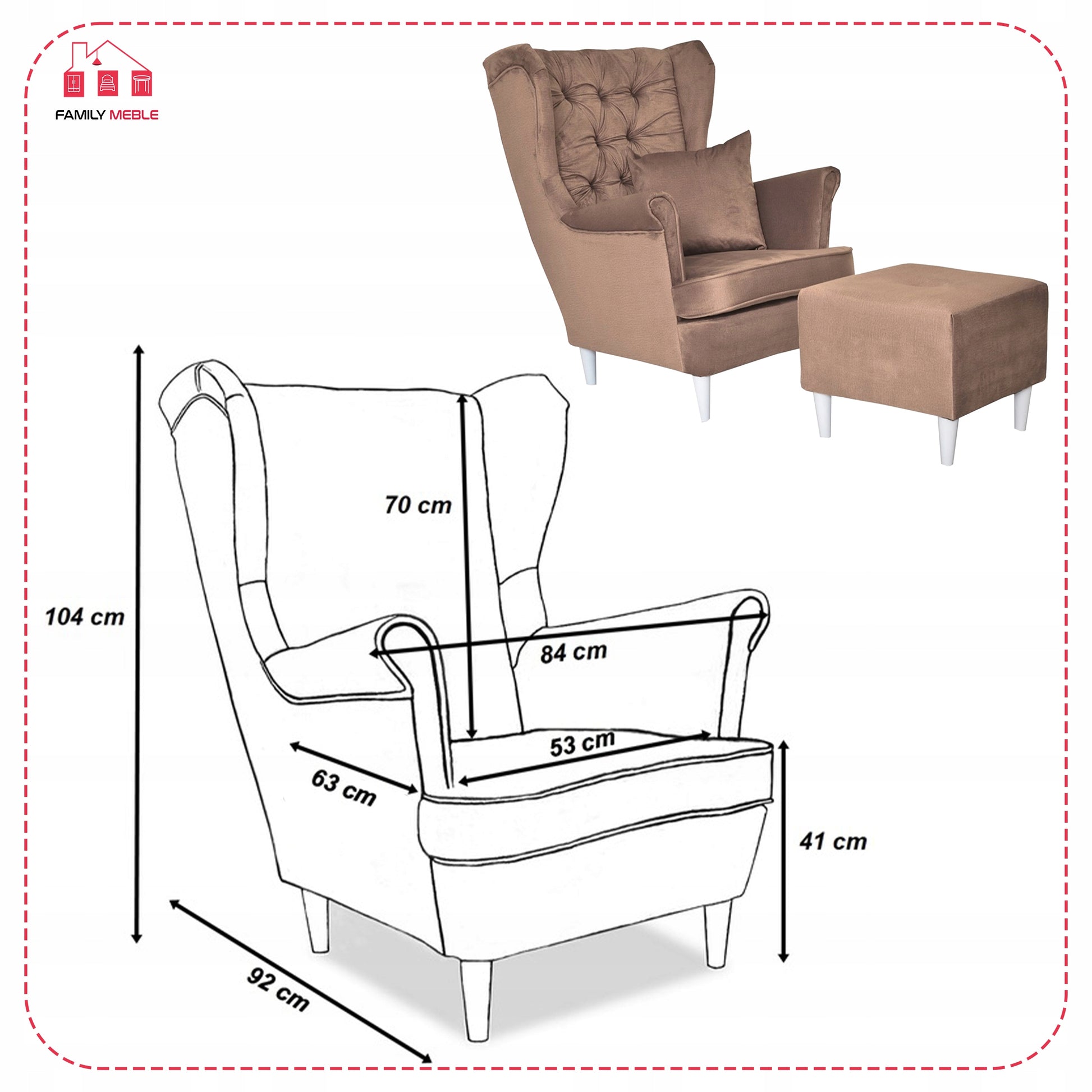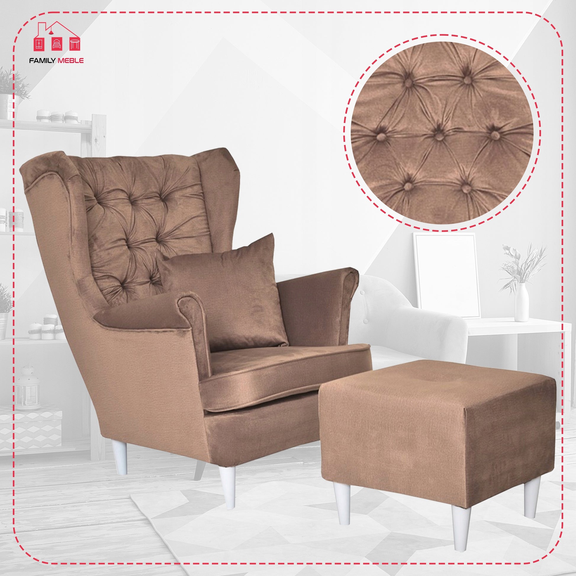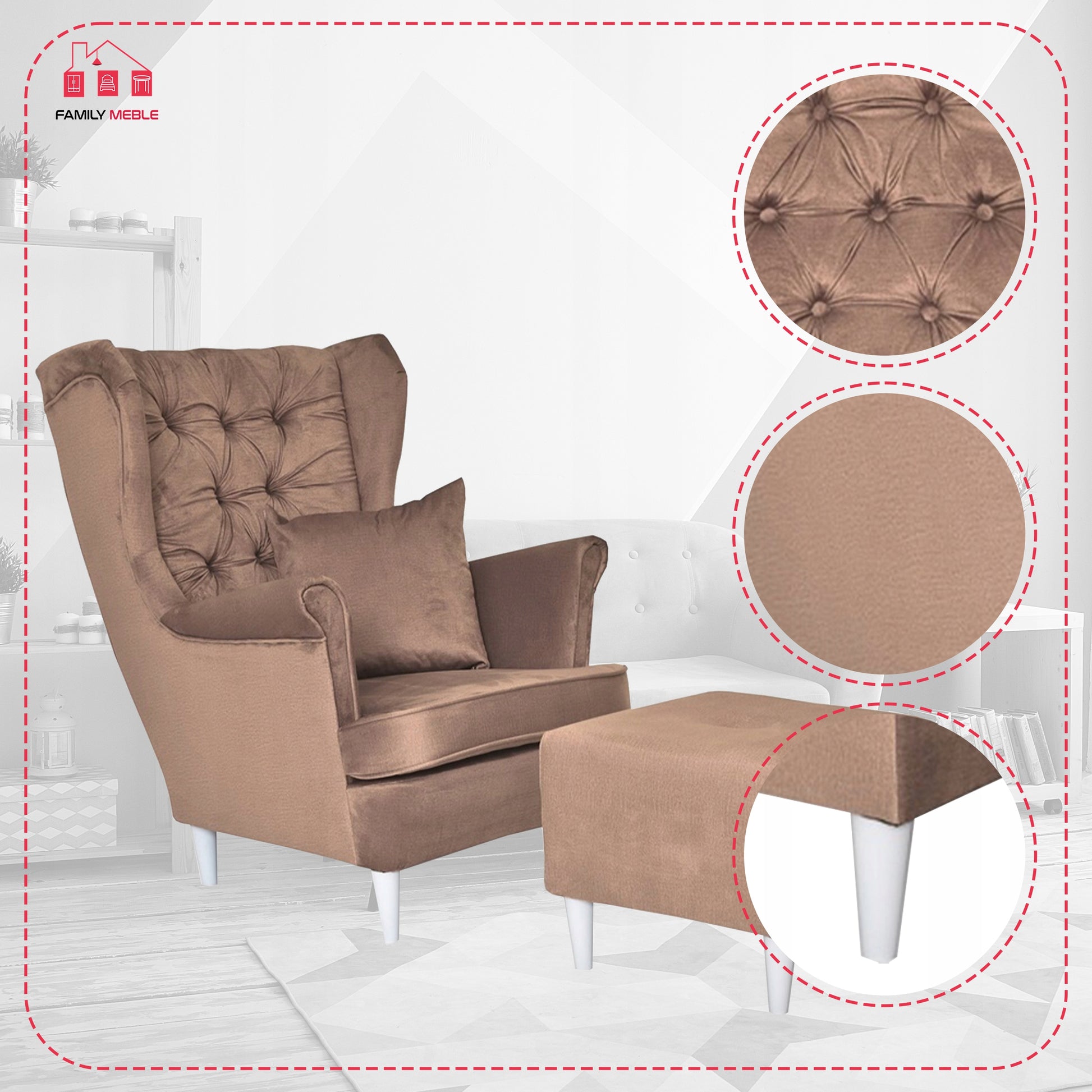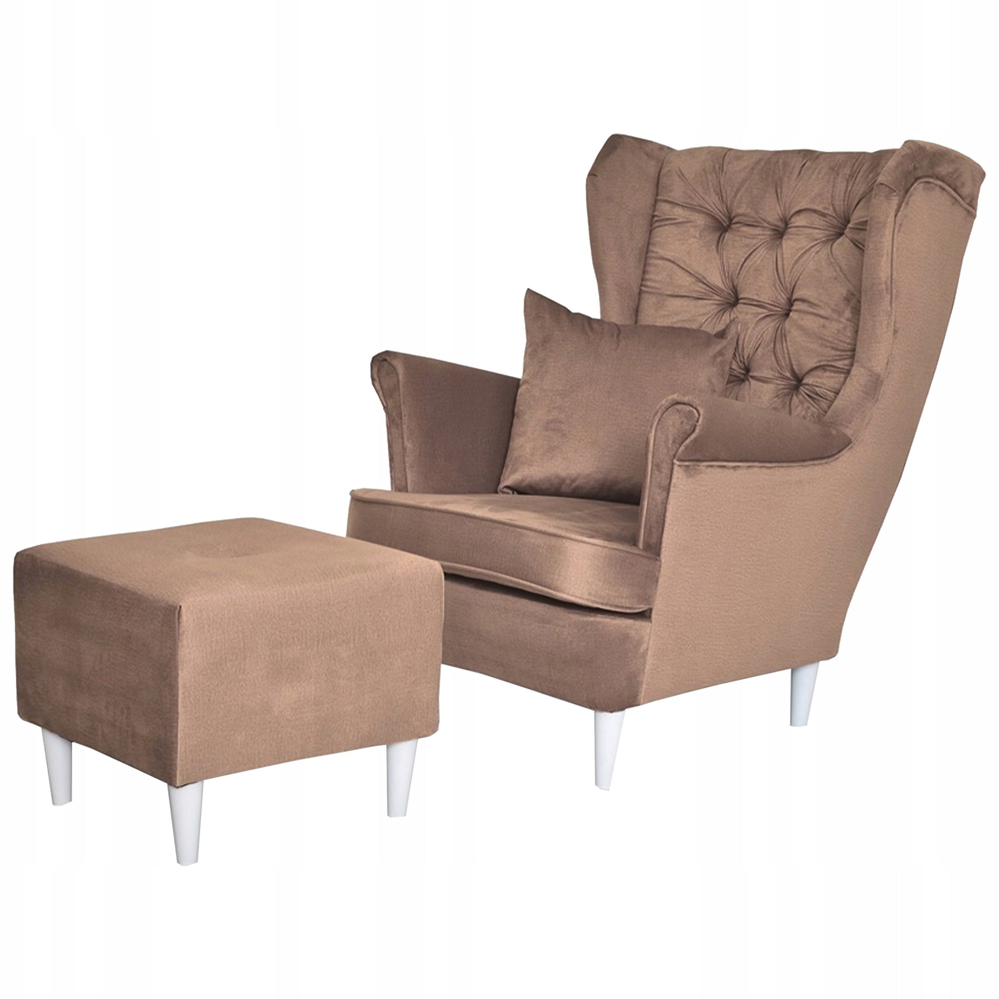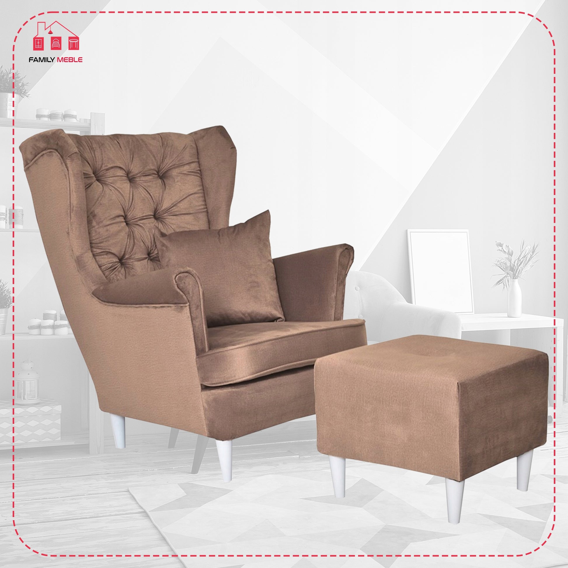 Fotel uszak Gaja z podnóżkiem skandynawski Family Meble nudziak pufa