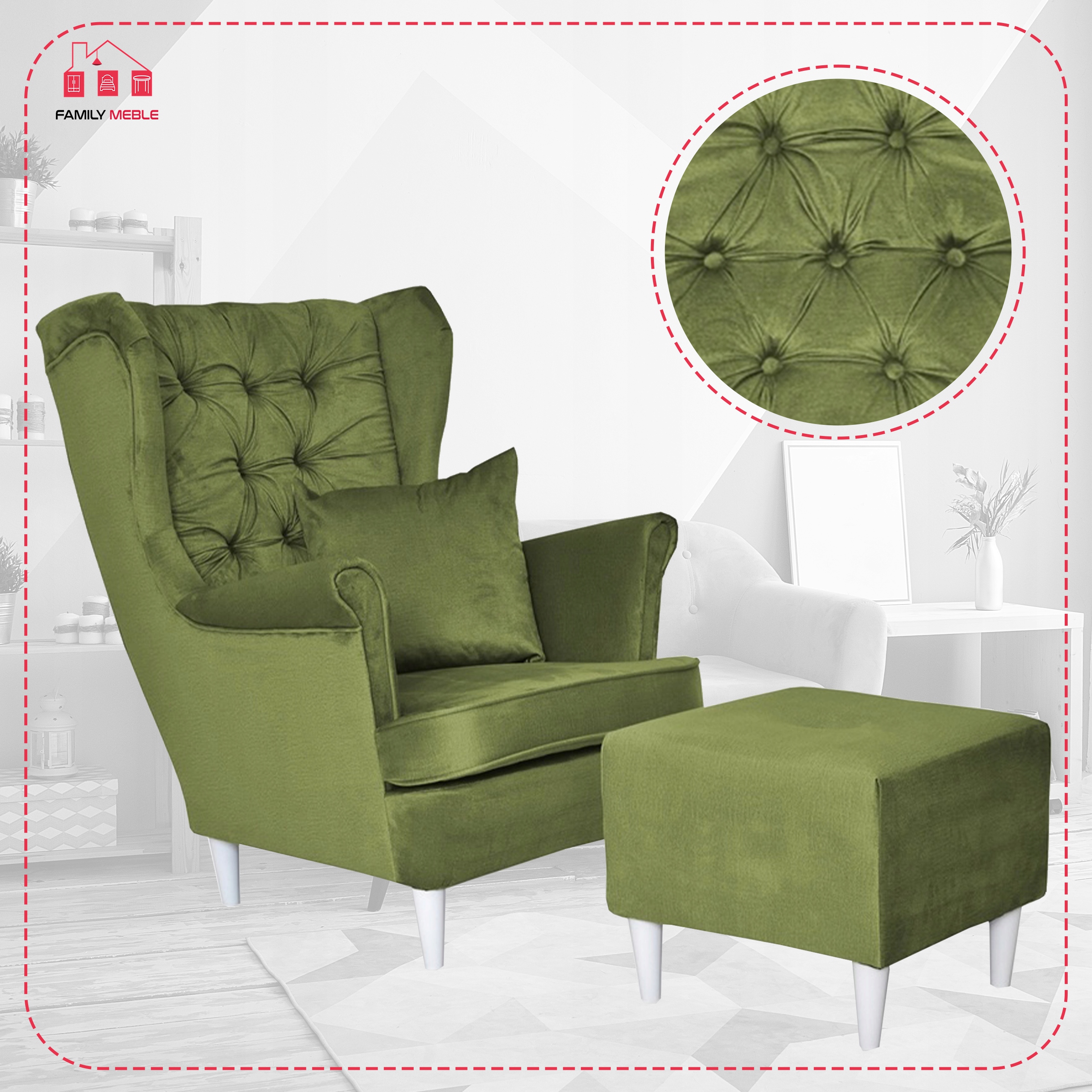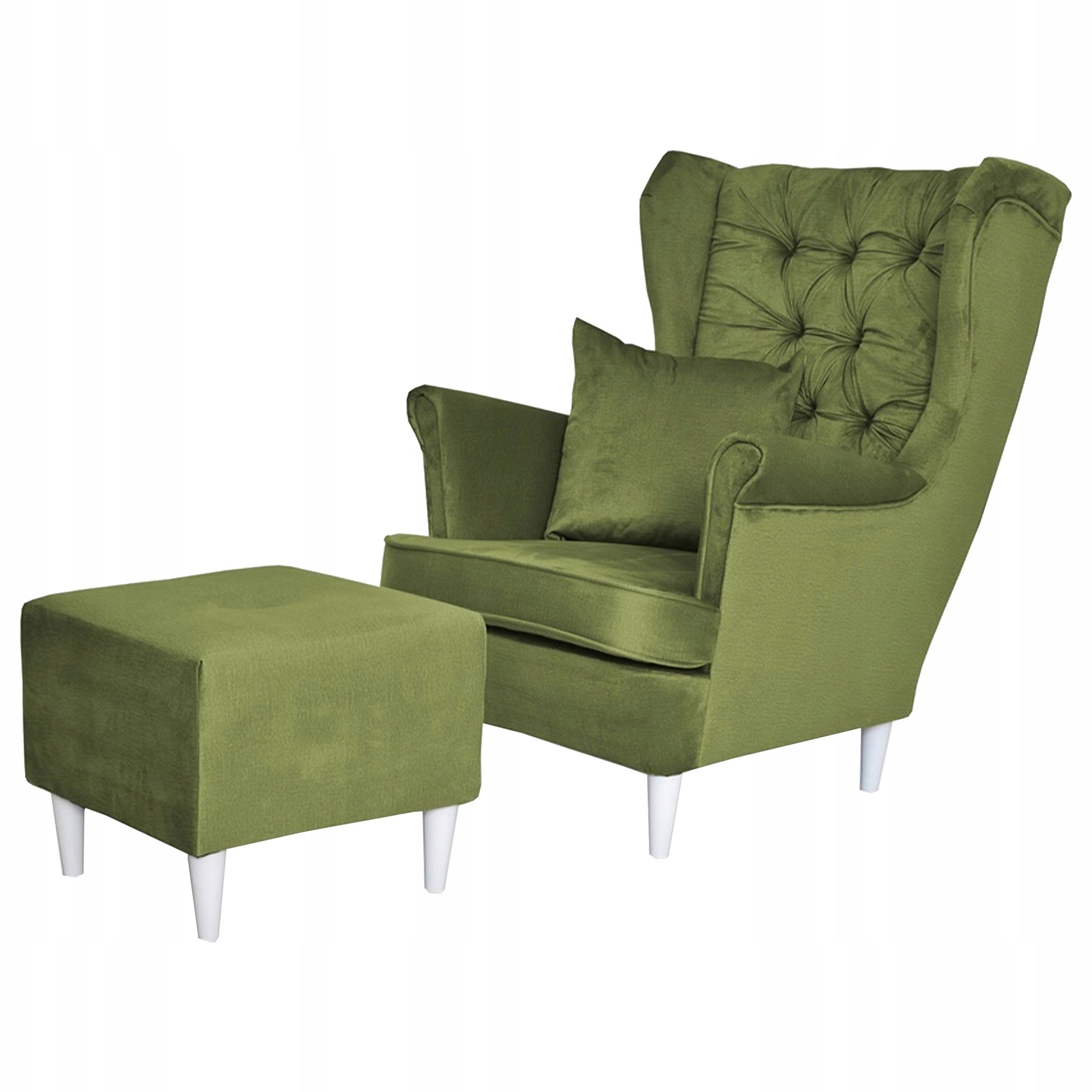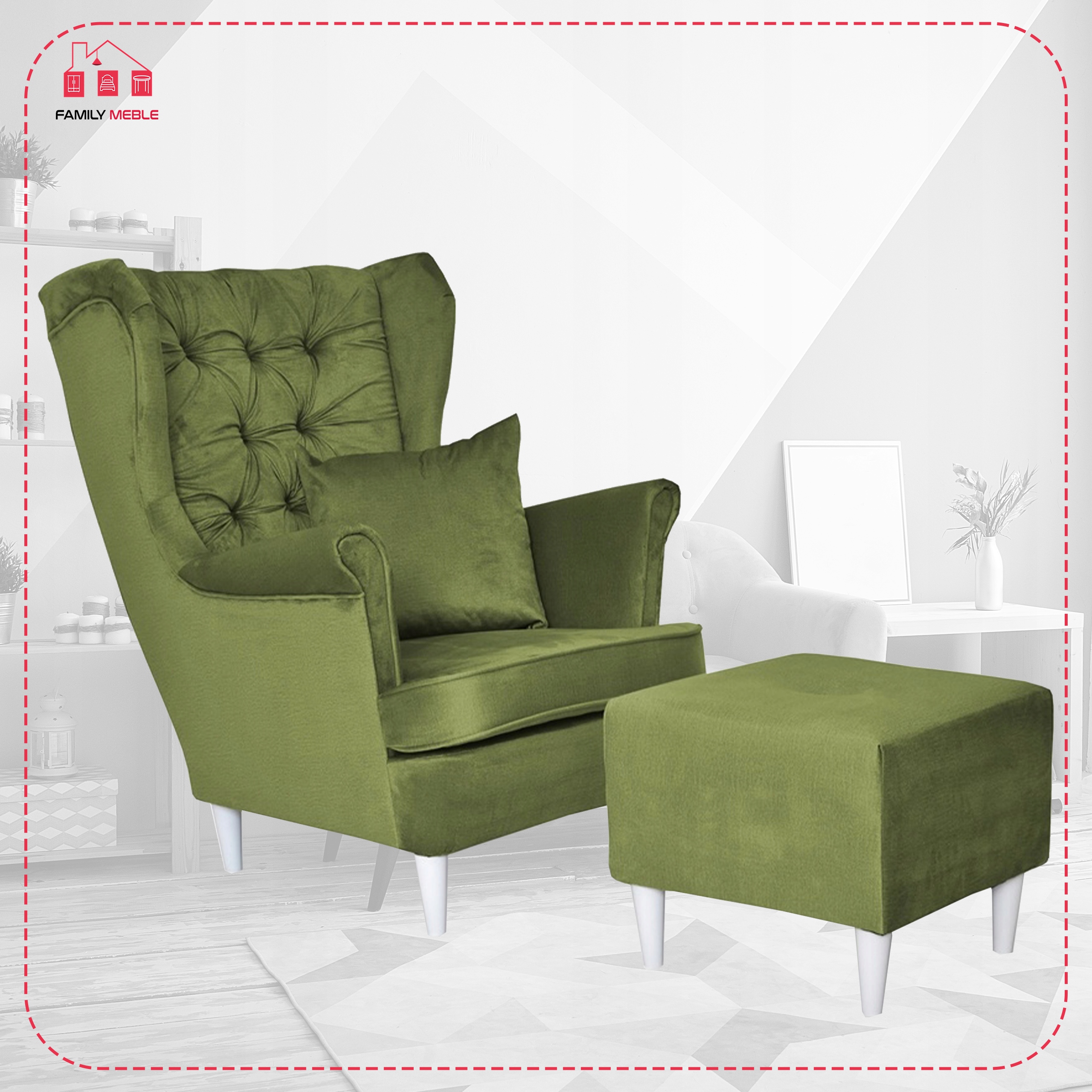 Fotel uszak Gaja z podnóżkiem skandynawski Family Meble oliwka jasna