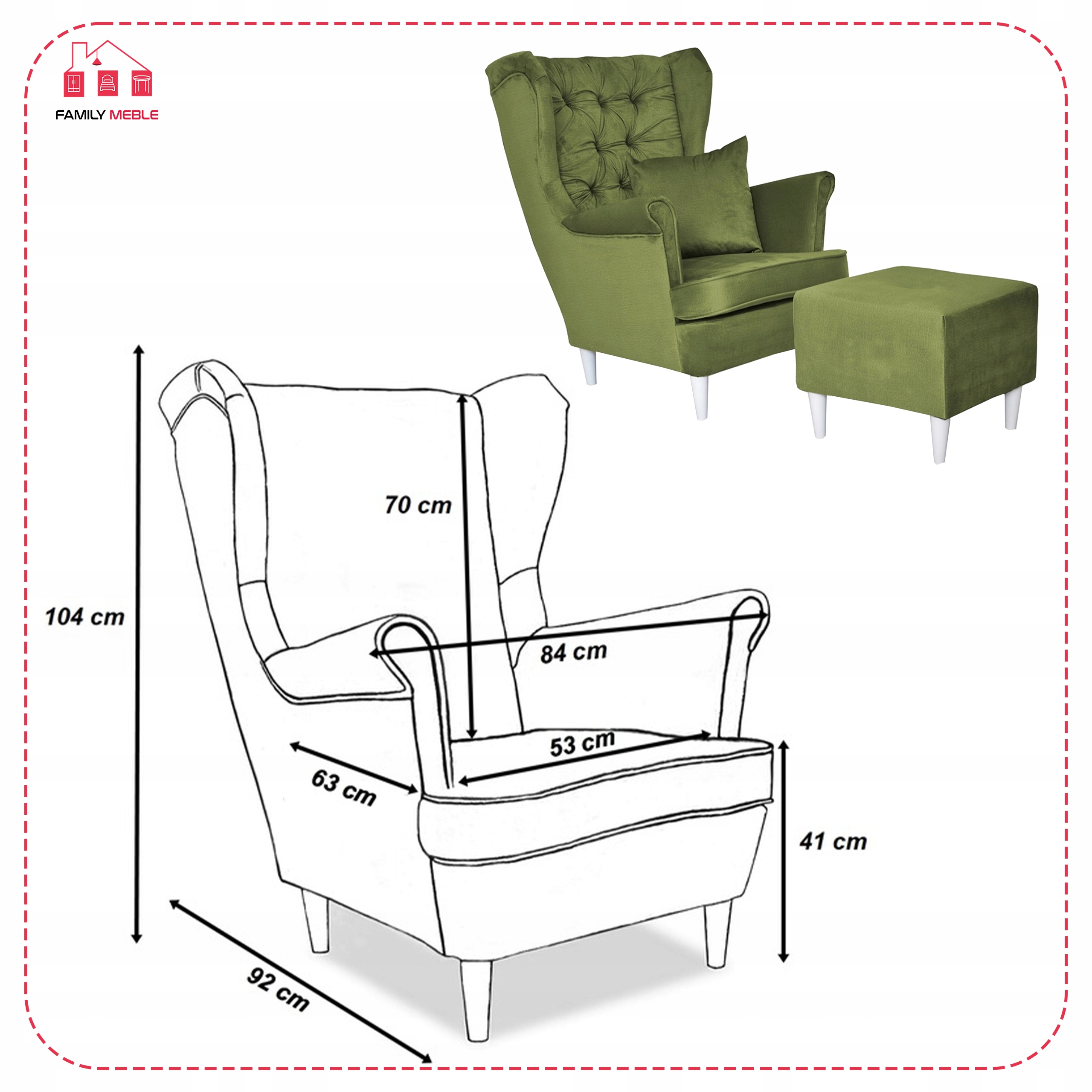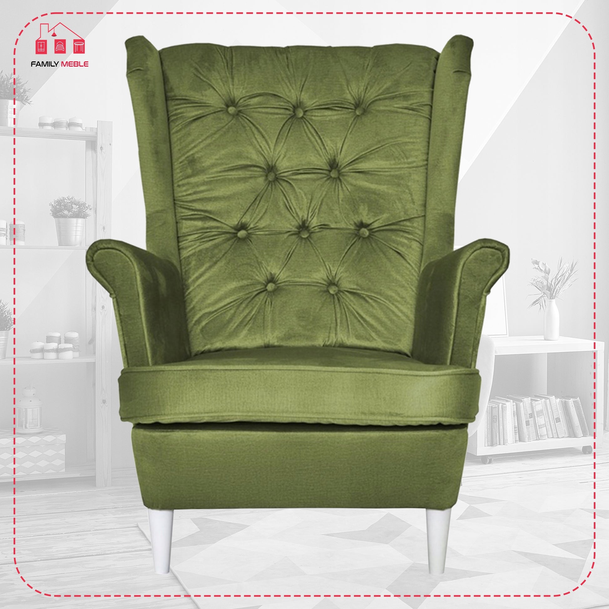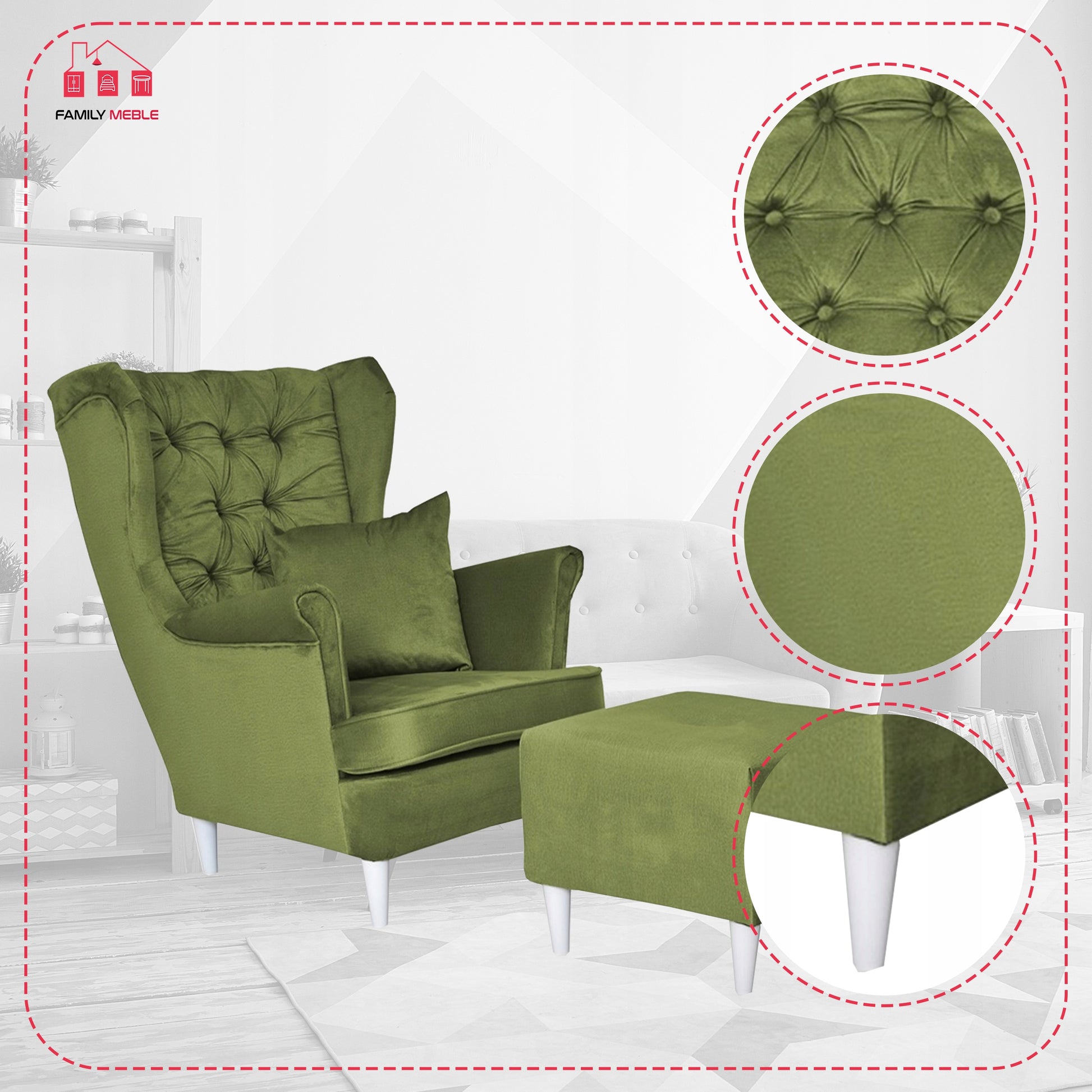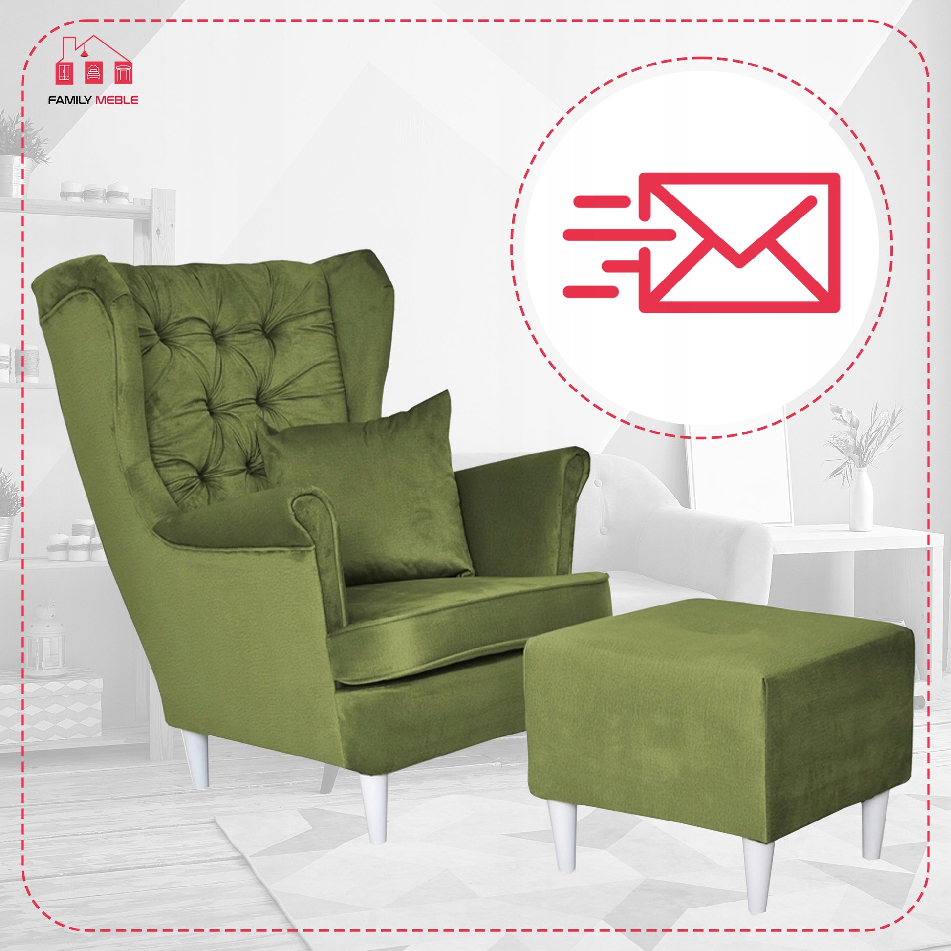 Fotel uszak Gaja z podnóżkiem skandynawski Family Meble oliwka jasna