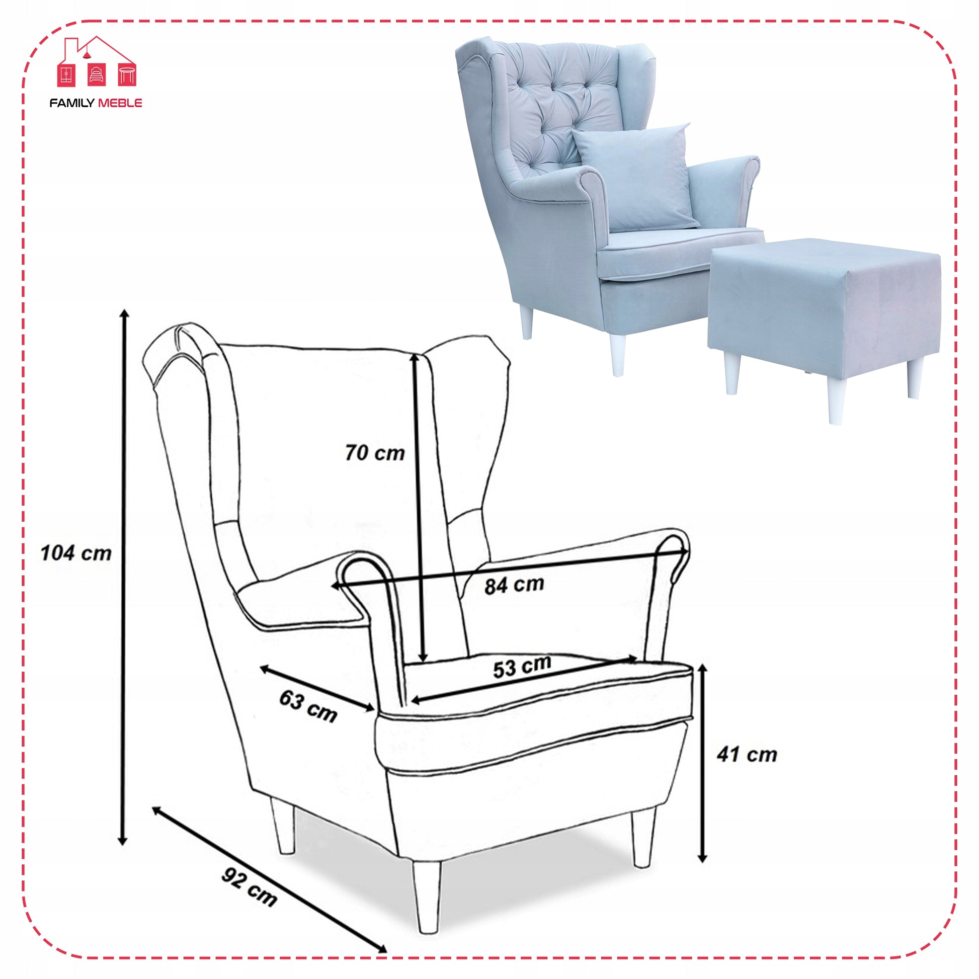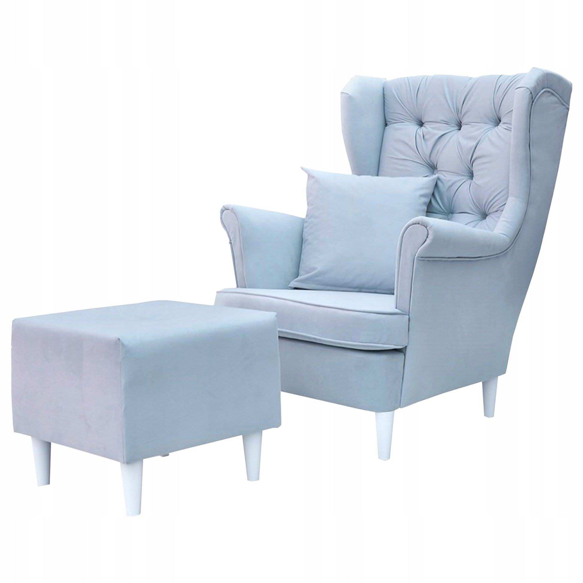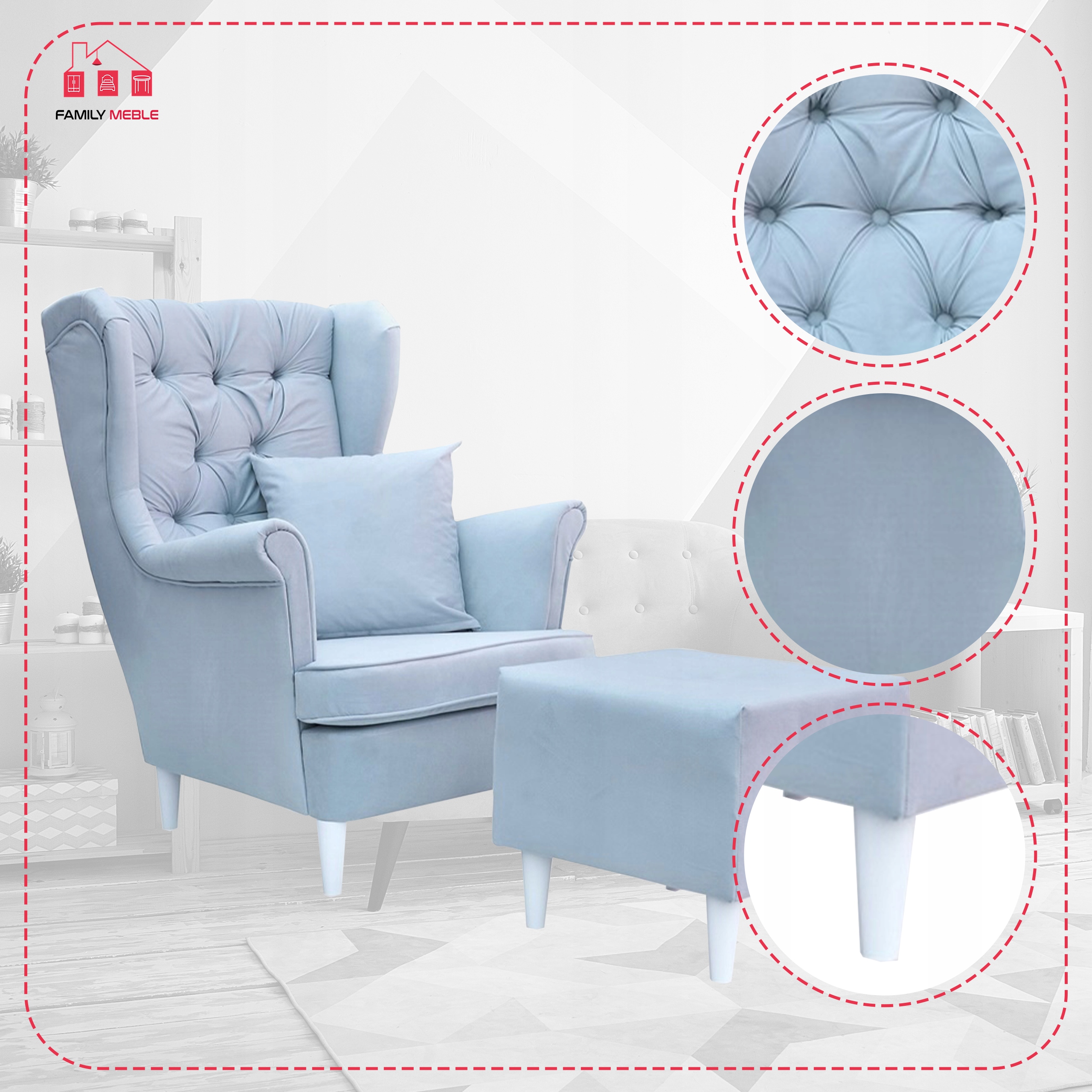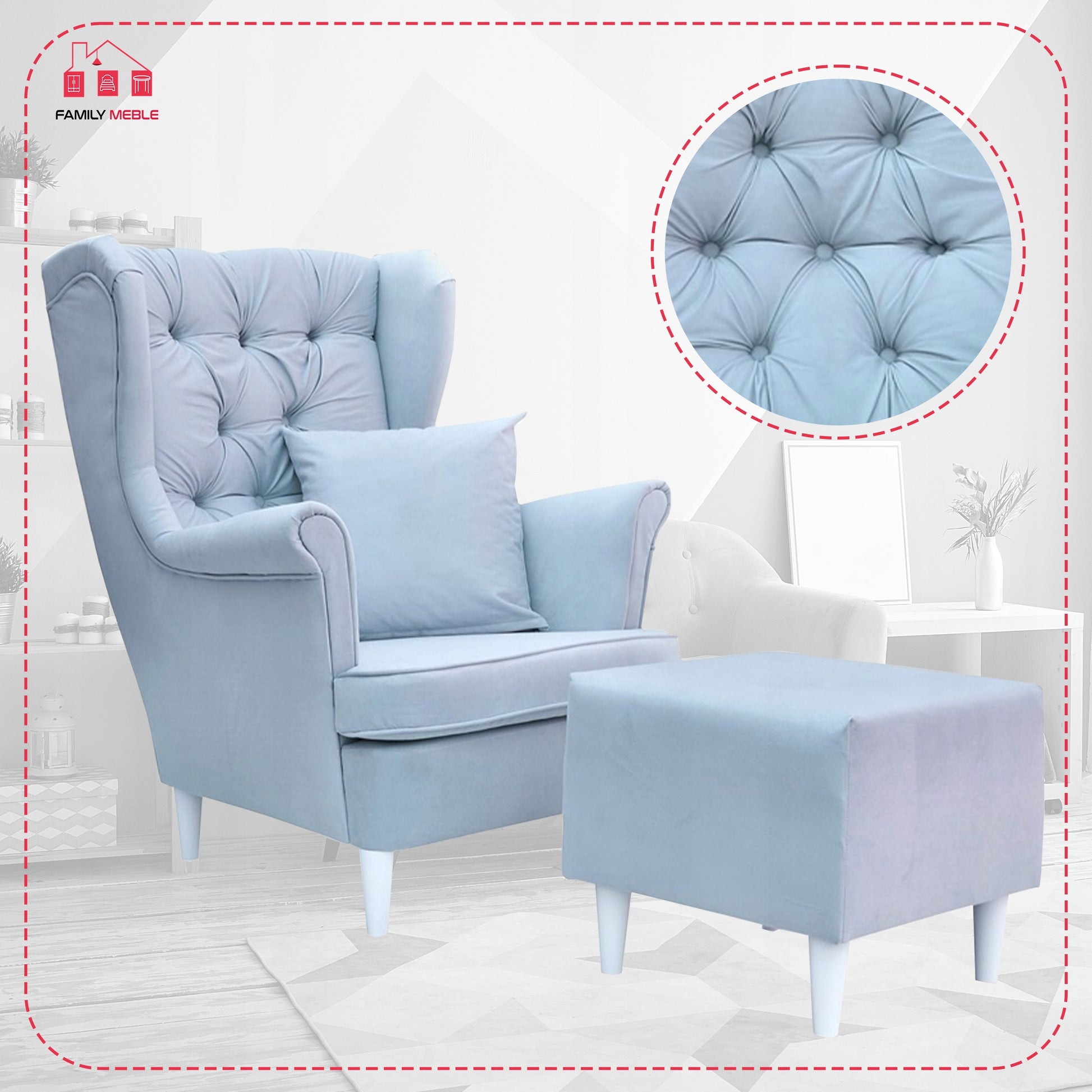 Fotel uszak Gaja z podnóżkiem skandynawski Family Meble pikowany guzik