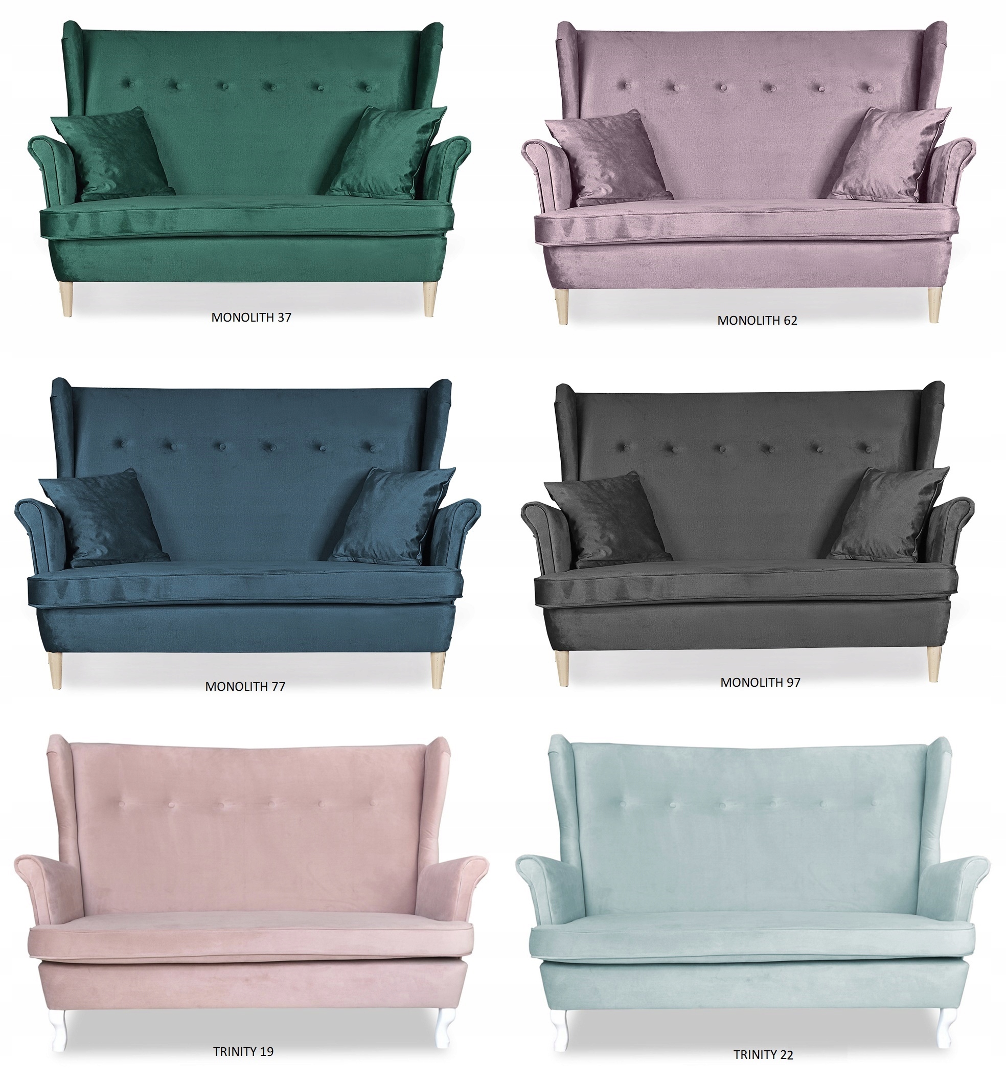 Oparcie tego modelu standardowo zdobione jest guzikami MATERIAŁOWYMI. Na życzenie klienta możemy zamienić je na kryształki Swarovskiego, informację o zmianie należy podać w wiadomości dla sprzedającego podczas składania zamówienia. :)