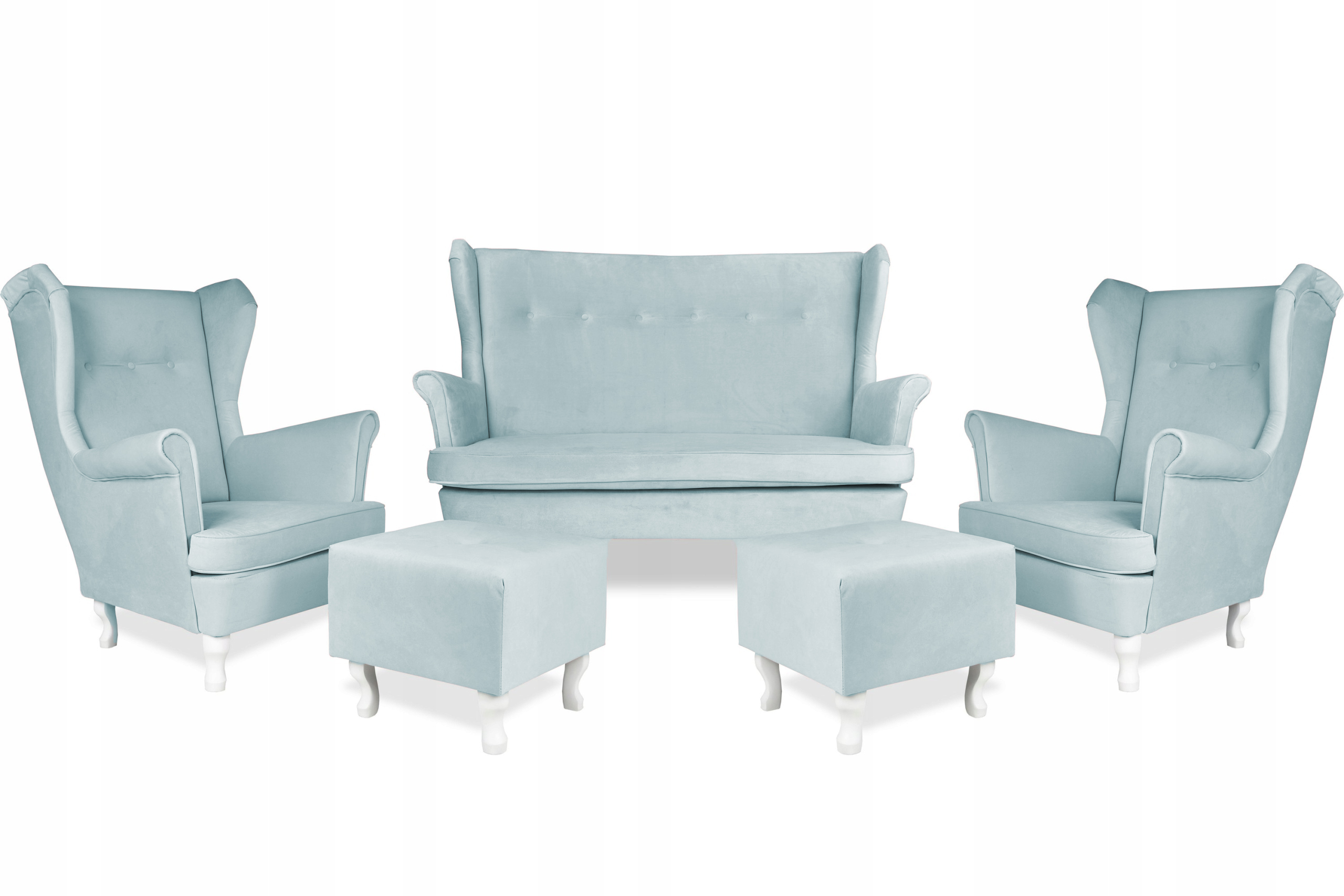 Zestaw wypoczynkowy mebli uszak Ari sofa fotele pufy Family Meble komplet