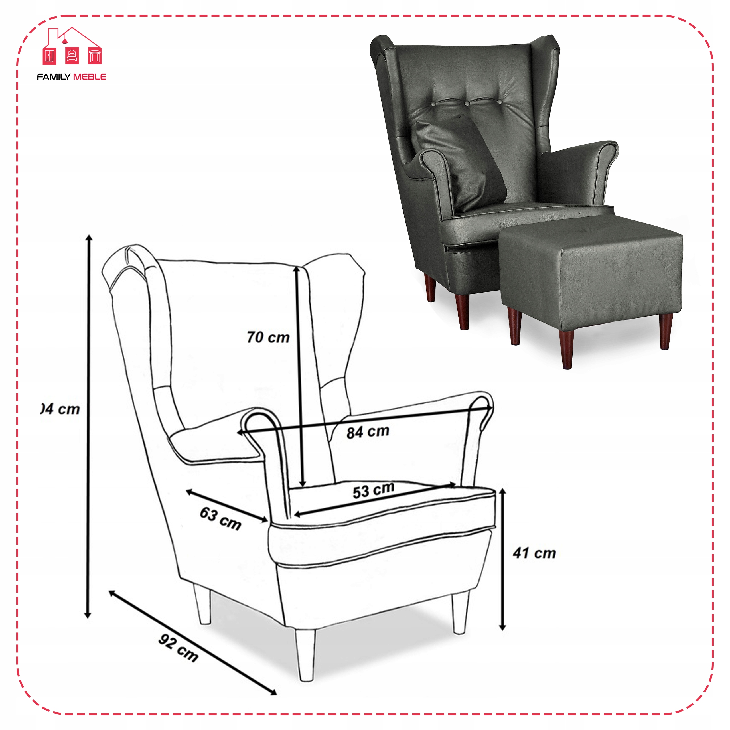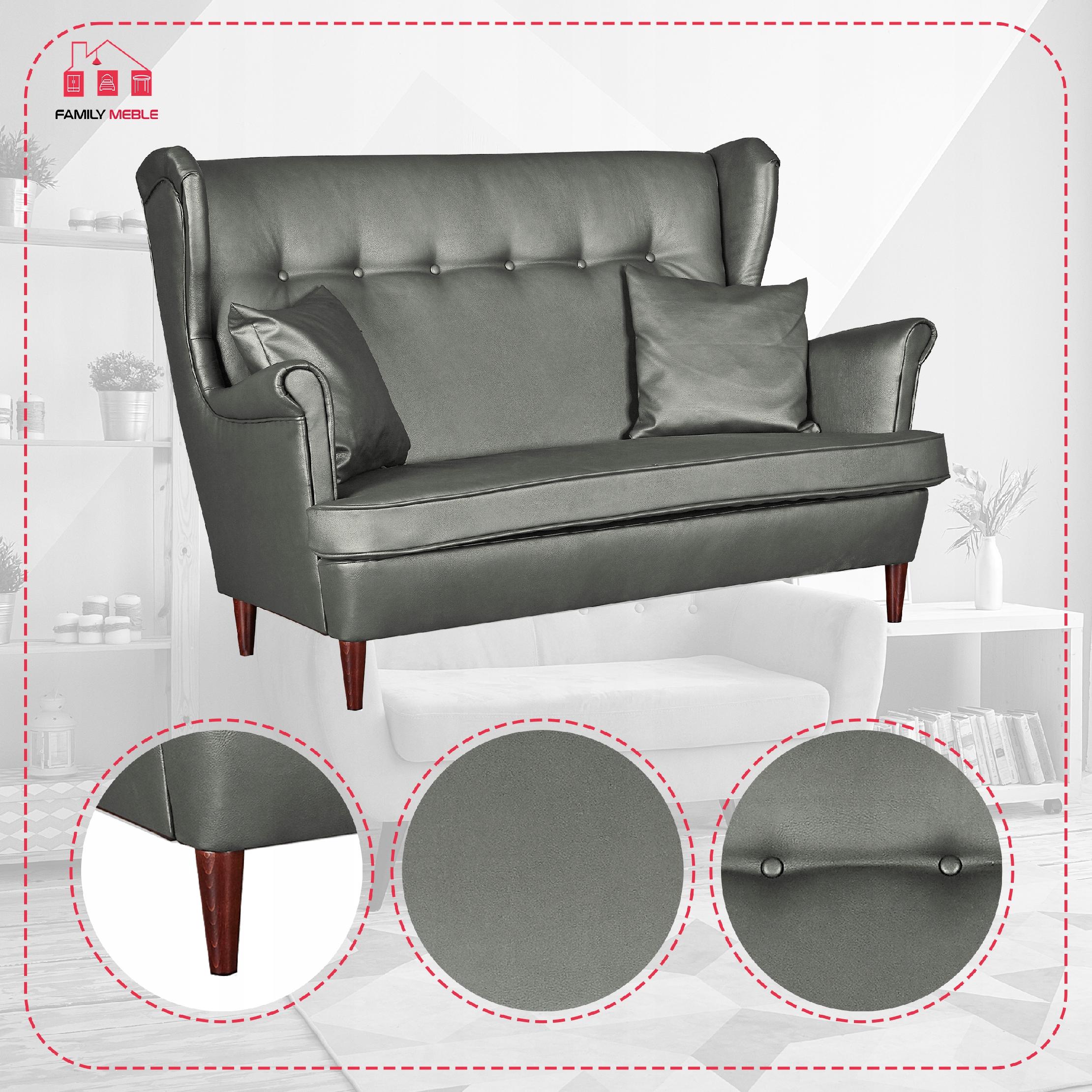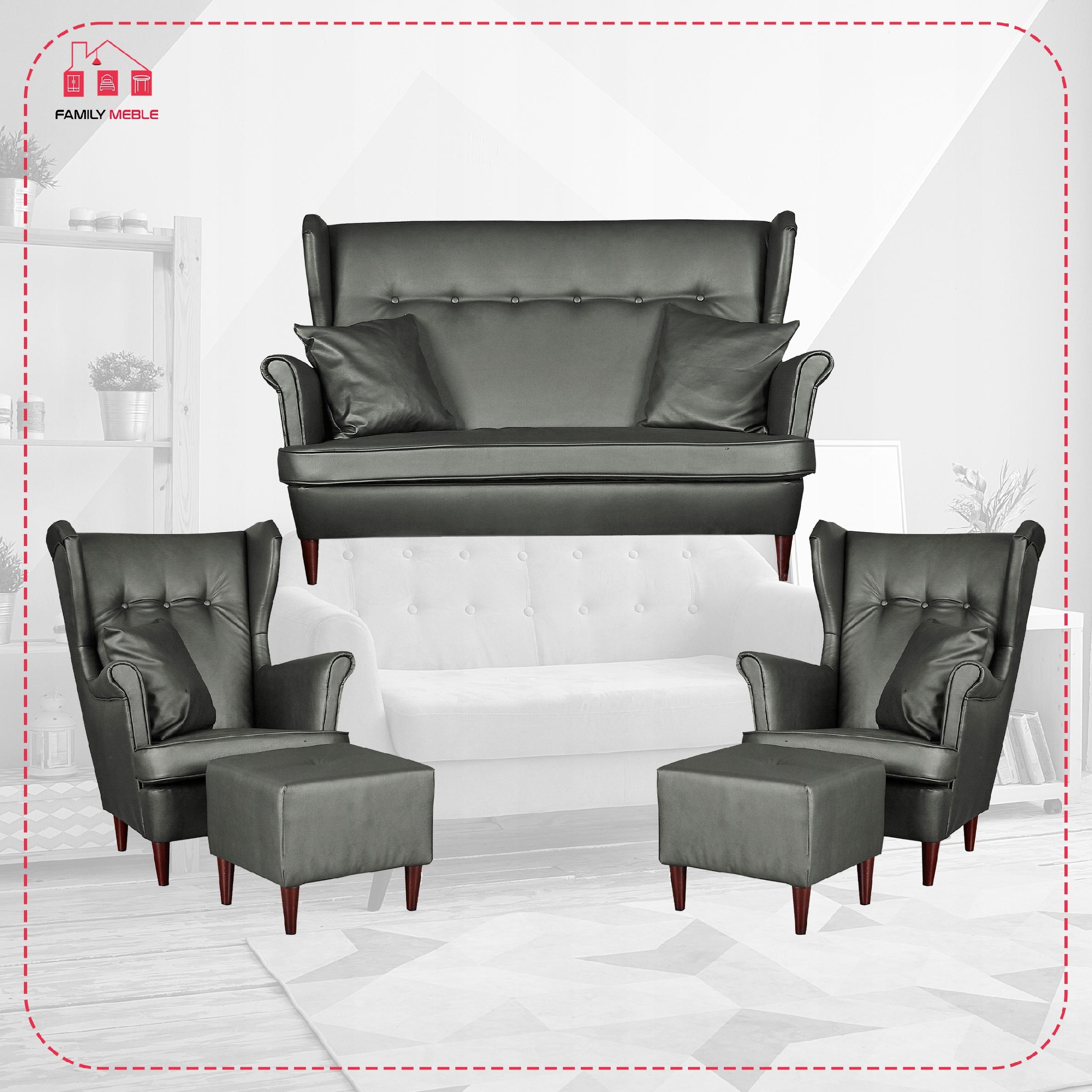 Zestaw wypoczynkowy mebli uszak Eko skóra sofa fotele pufy Family Meble komplet