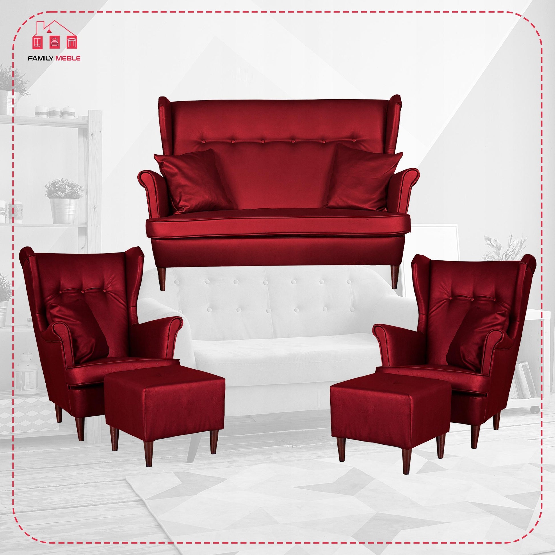 Zestaw wypoczynkowy mebli uszak Eko skóra sofa fotele pufy Family Meble komplet